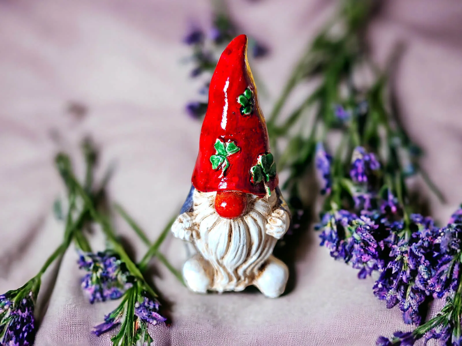 Jego czerwona czapka, z długim daszkiem, pełni nie tylko funkcję stylowego dodatku, ale także miejsca, do którego często przyklejają się koniczynki. Te pięciolistne koniczynki to znak szczęścia, a przypisywane im magiczne właściwości sprawiają, że Skrzat Szczęściarz uważany jest za posłańca pomyślności.