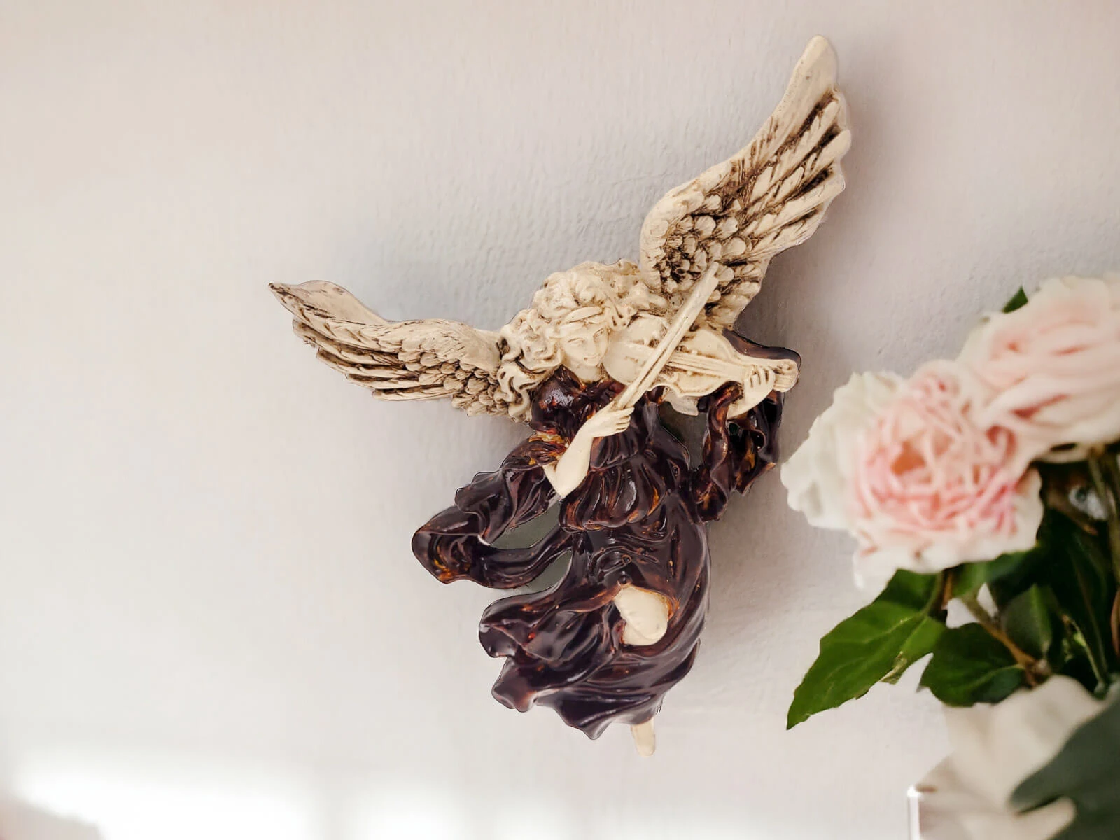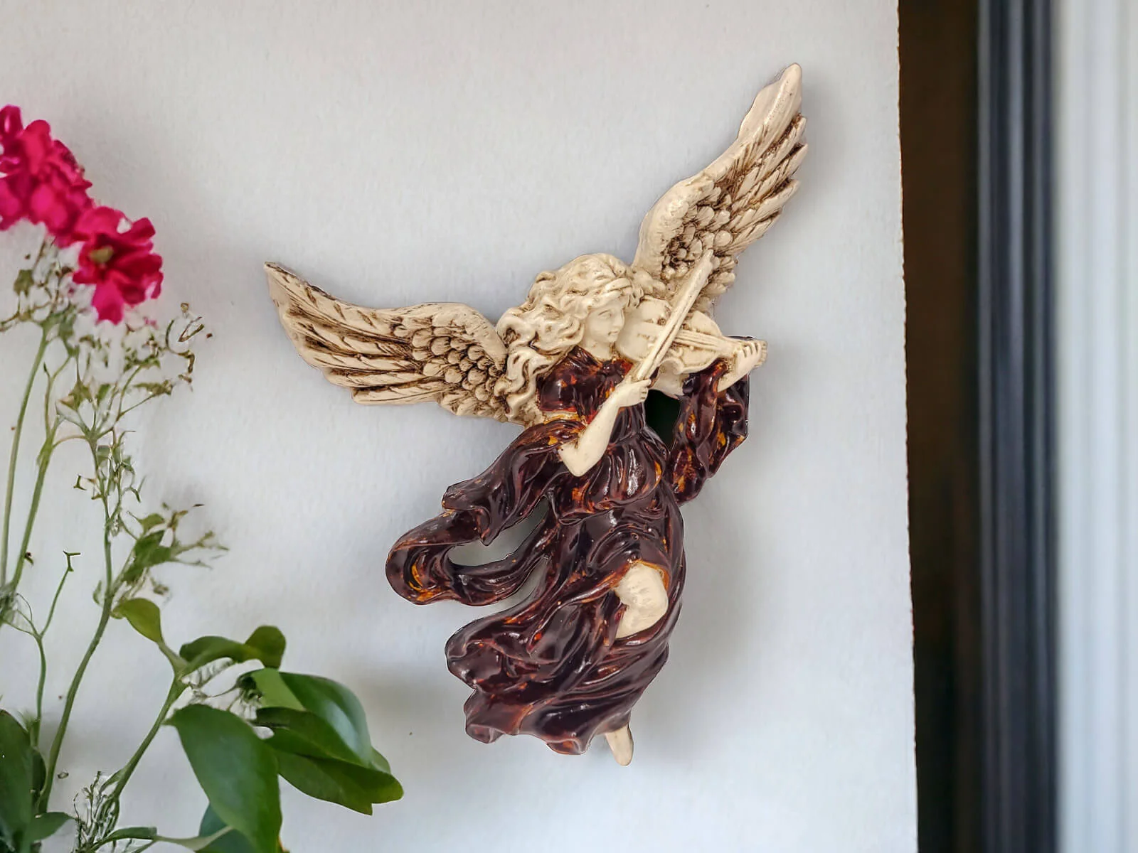 Anioł ze Skrzypcami w kolorze ciemny brąz to unikatowa, ręcznie robiona figurka do powieszenia na ścianie dzięki której wnętrze Twojego domu nabierze niepowtarzalnego uroku. Każdy element figurki emanuje starannością, tradycją i artystycznym kunsztem.