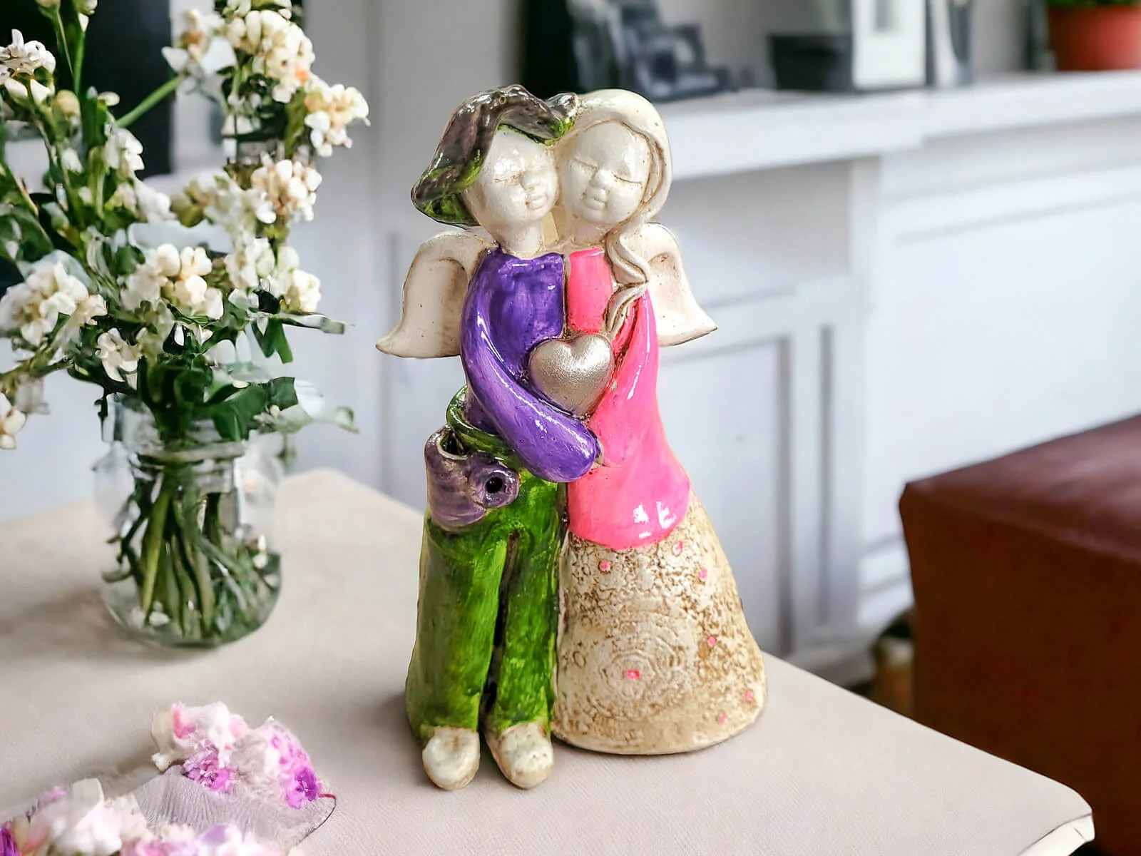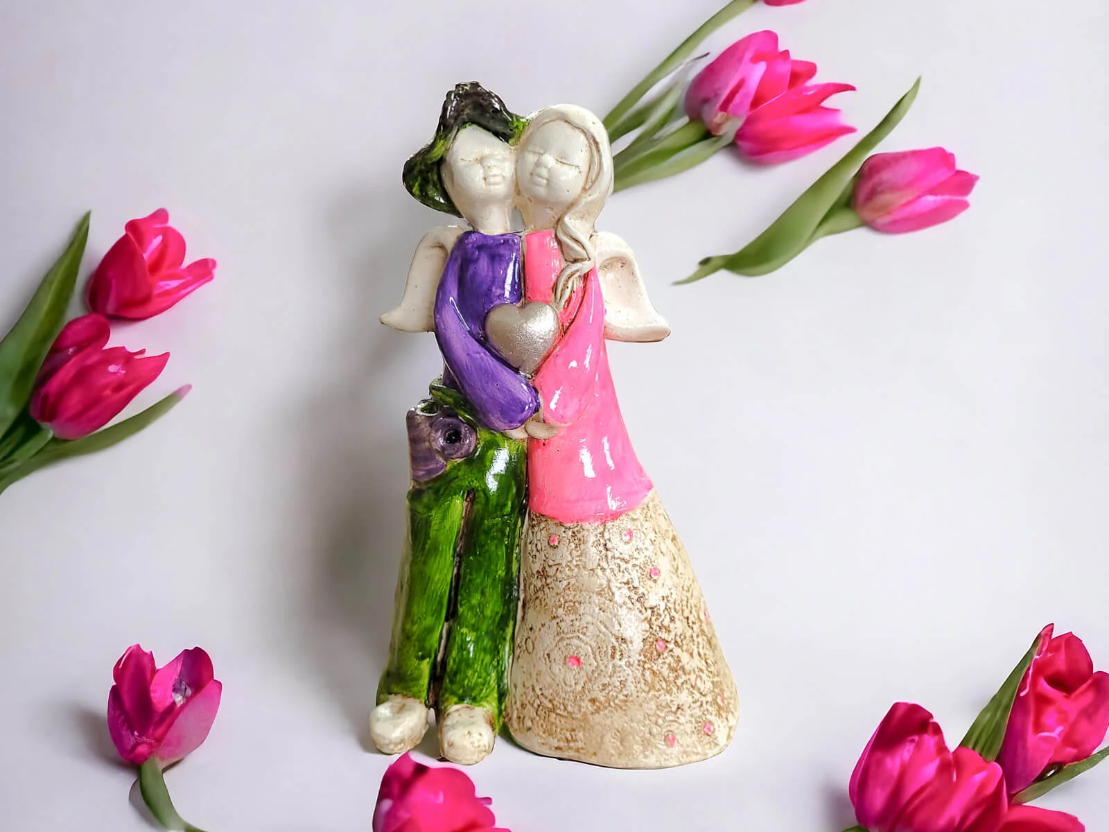 Figurka ta nie tylko emanuje delikatnością i harmonią, ale także oferuje możliwość personalizacji. Dodaj do niej tabliczkę z grawerem i własnymi życzeniami, aby uczynić ją jeszcze bardziej wyjątkową. To idealny prezent na różne okazje, takie jak ślub, rocznica czy walentynki. Figurka do postawienia, ma 21 cm wysokości.