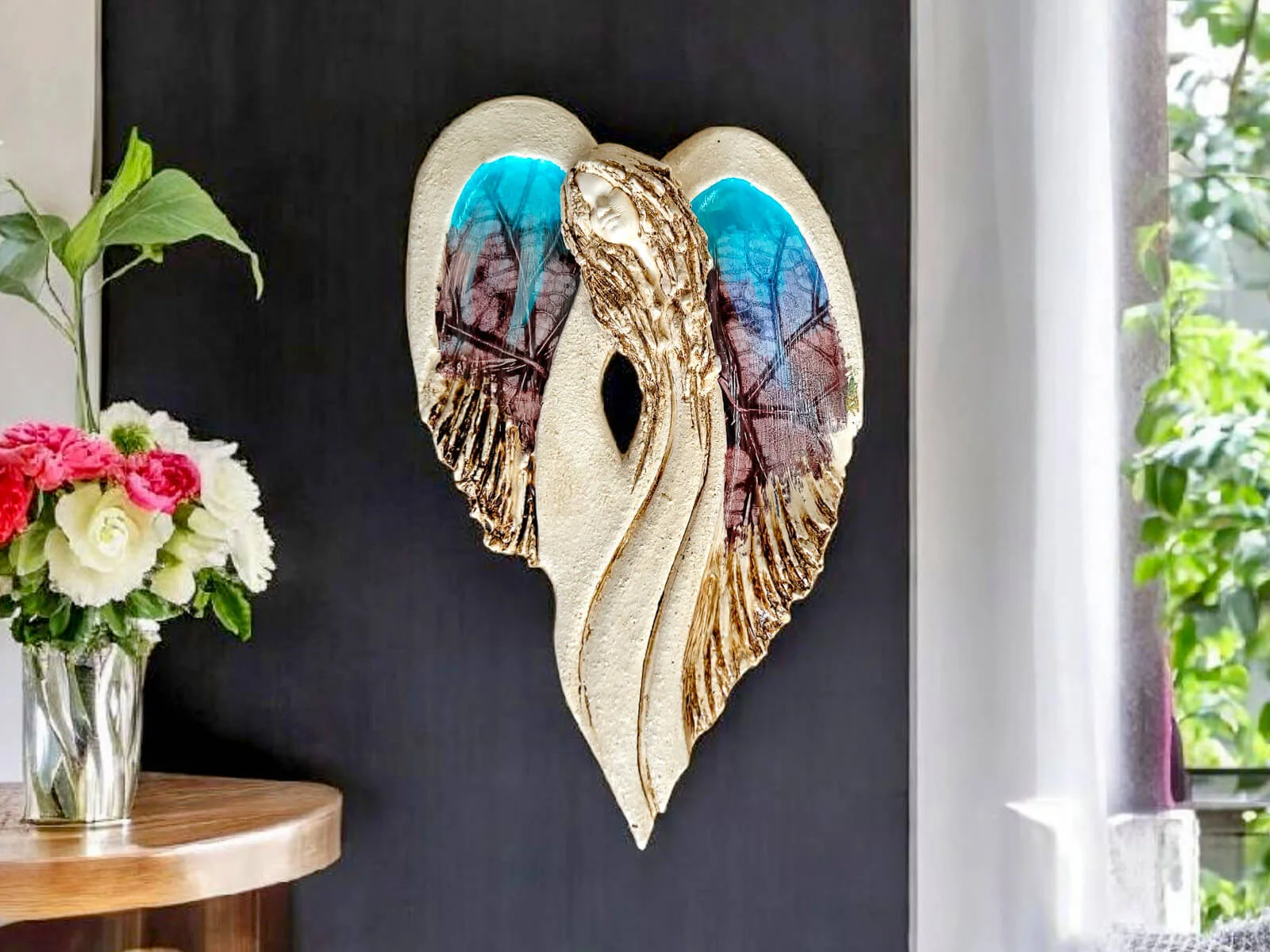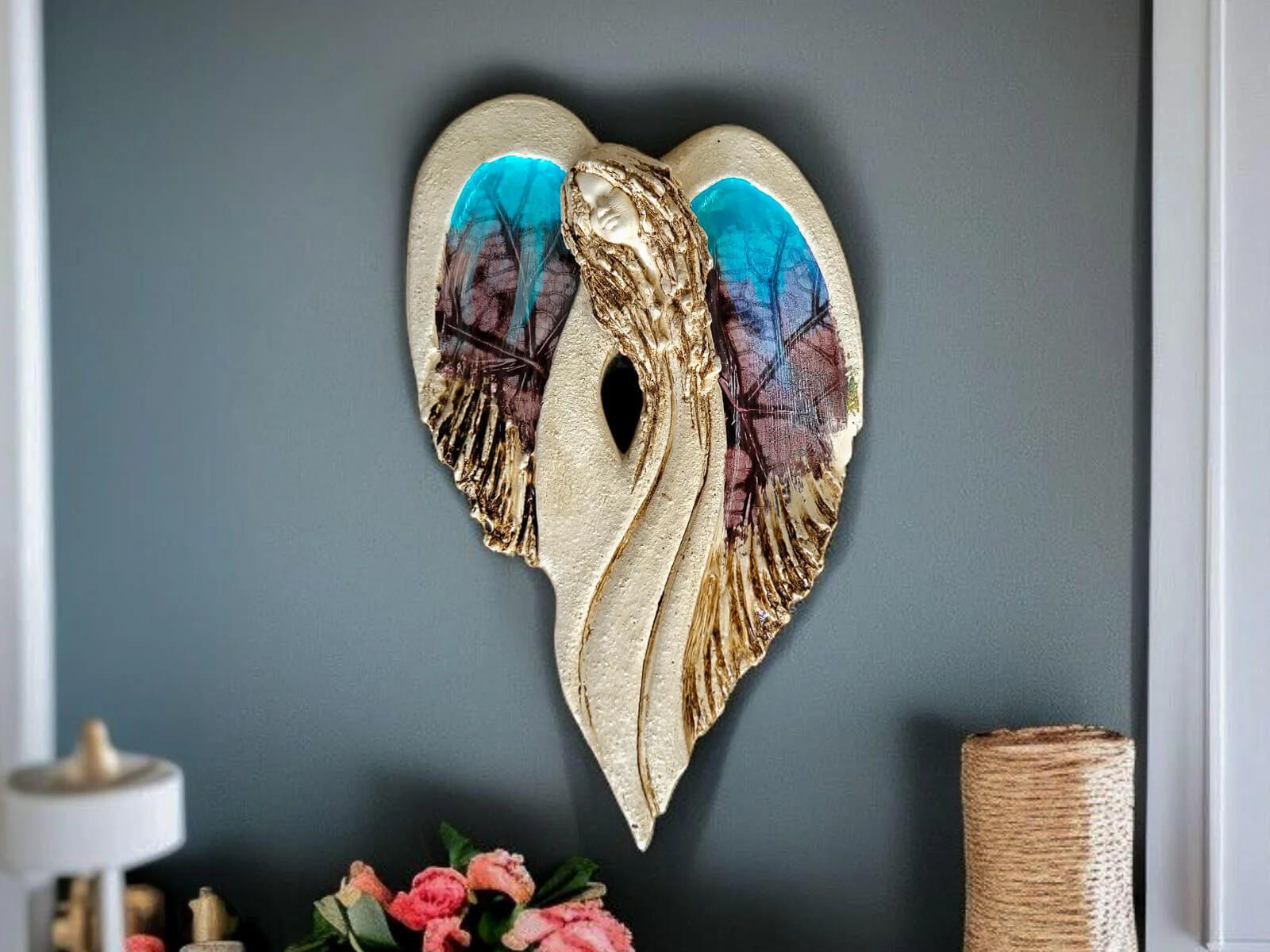 Unikalny anioł Cynthia z kolekcji Art Leaf z wzorami prawdziwych liści. Jedyna sztuka z tym wzorem. Wyjątkowa uroda, ujmująca delikatność, wielka wrażliwość, kwintesencja kobiecości, pełna miłości, porywająca, a jednocześnie zapewniająca spokój. Zobacz jak pięknie chroni miłość, jak dba i troszczy się o Ciebie i Twoich bliskich, opiekuje, obdarza wiarą dającą siłę, rozlewa radość do każdego zakątka mieszkania, przepełnia je dobrocią, sercem pełnym nadziei, sprawia, że miłość dwojga ludzi jest spokojną przystanią.