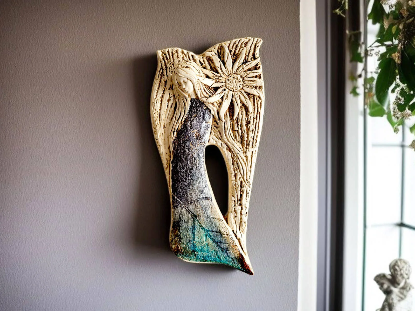 Anioł Xenylla w wersji Art z liśćmi, w fioletowej sukni do powieszenia. Wyjątkowa uroda, ujmująca delikatność, wielka wrażliwość, kwintesencja kobiecości, pełna miłości, porywająca, a jednocześnie zapewniająca spokój. Zobacz jak pięknie chroni miłość, jak dba i troszczy się o Ciebie i Twoich bliskich, opiekuje, obdarza wiarą dającą siłę, rozlewa radość do każdego zakątka mieszkania, przepełnia je dobrocią, sercem pełnym nadziei, sprawia, że miłość dwojga ludzi jest spokojną przystanią.