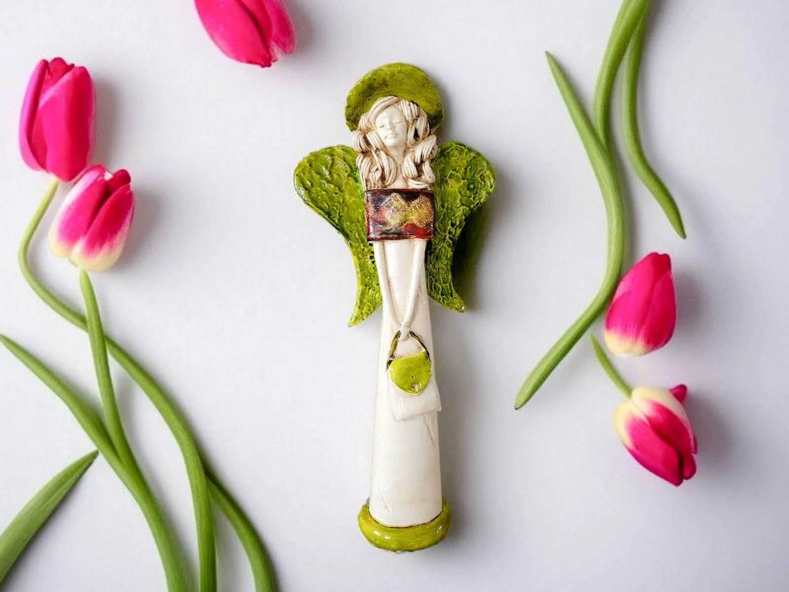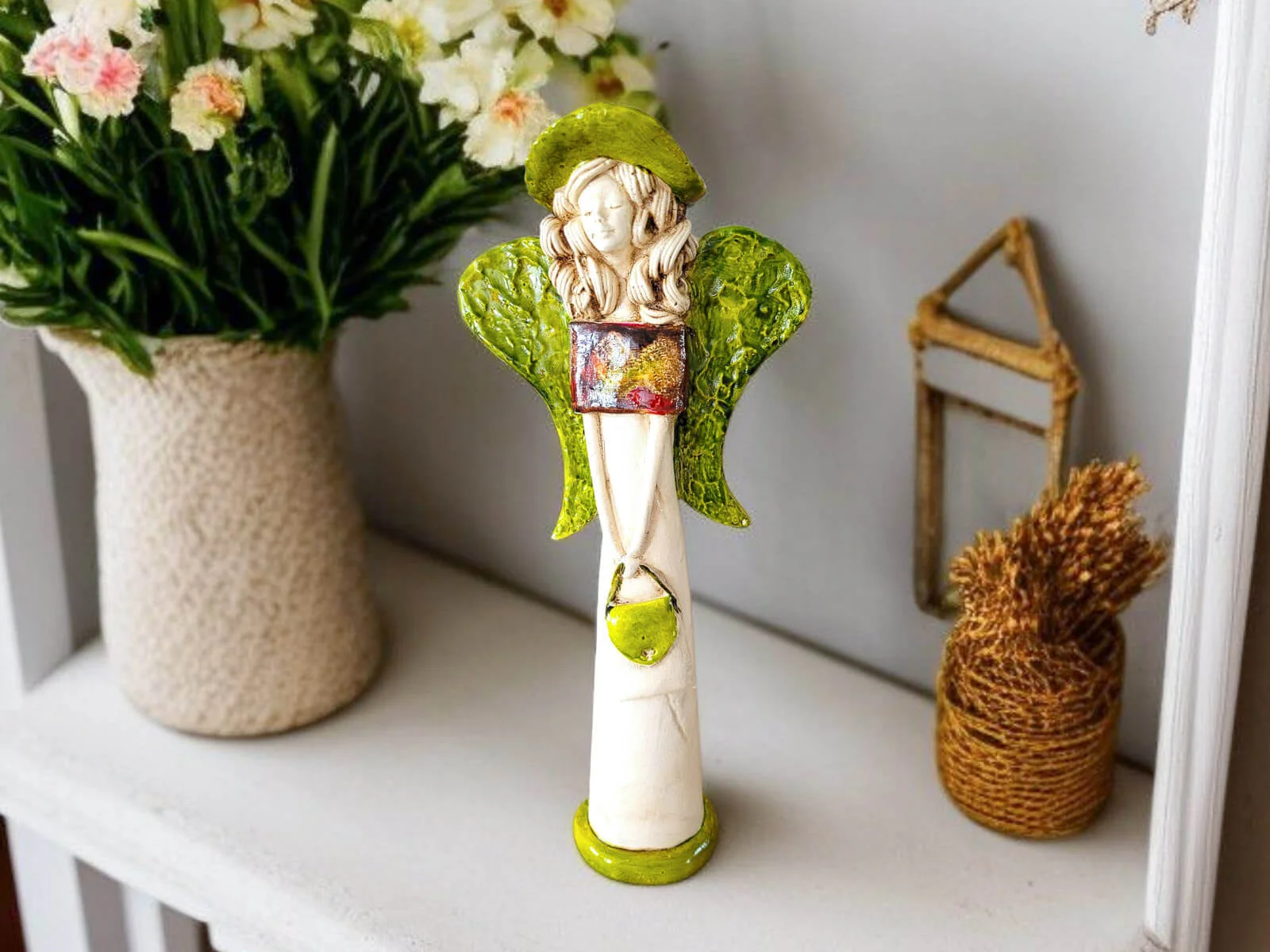 Anioł Coco w unikalnej kolekcji Art Leaf. Coco to ręcznie wykonana figurka gipsowa w kształcie filigranowej dziewczynki. Ma cudowne rozłożyste skrzydła. Jej beżowy ubiór podkreślają kolorowe akcenty z wzorami liści. Figurka Coco idealnie nadaje się na prezent na dziewczynki lub kobiety jak piękna ozdoba wnosząca do wnętrza dużo pozytywnej energii.