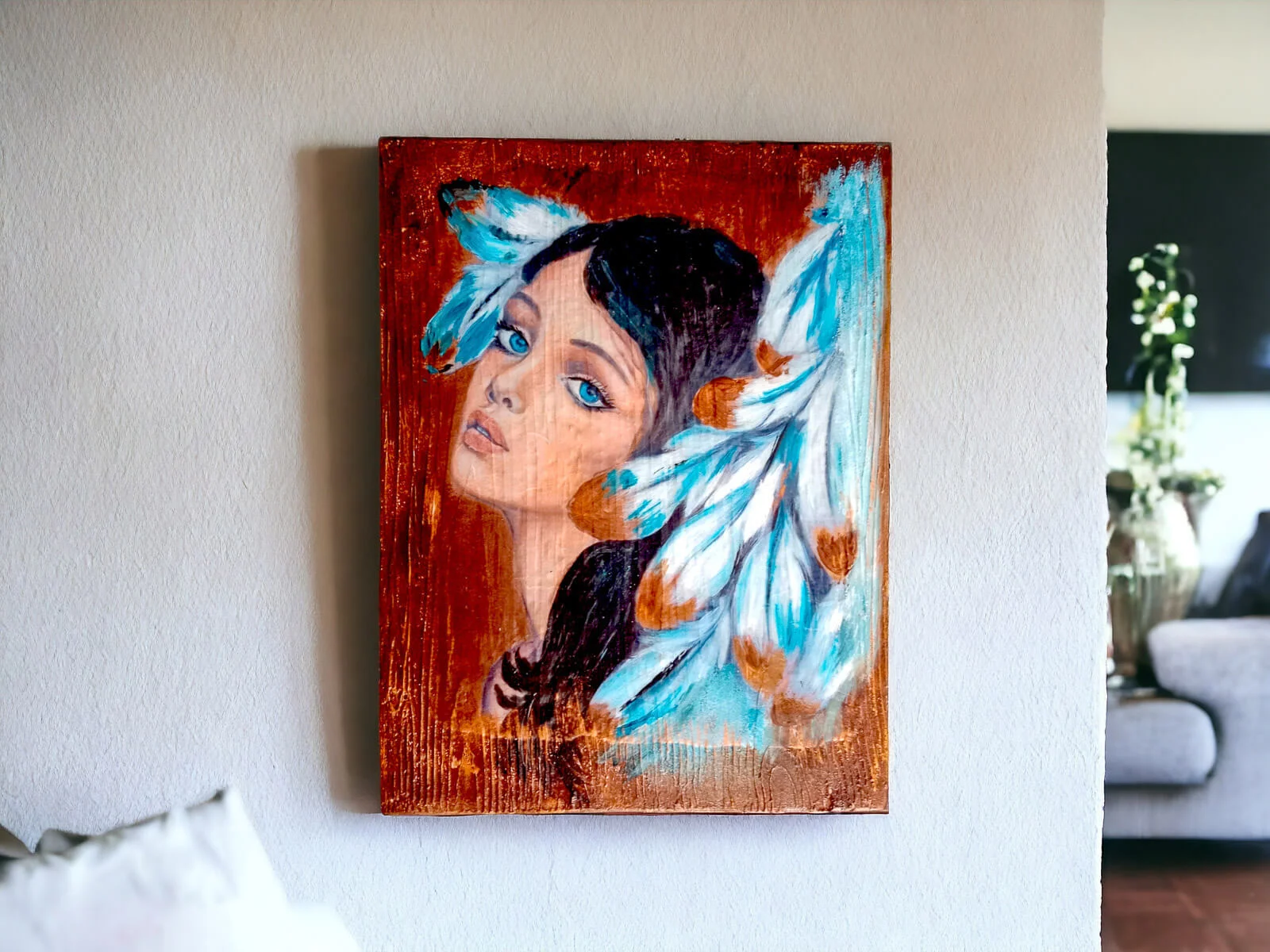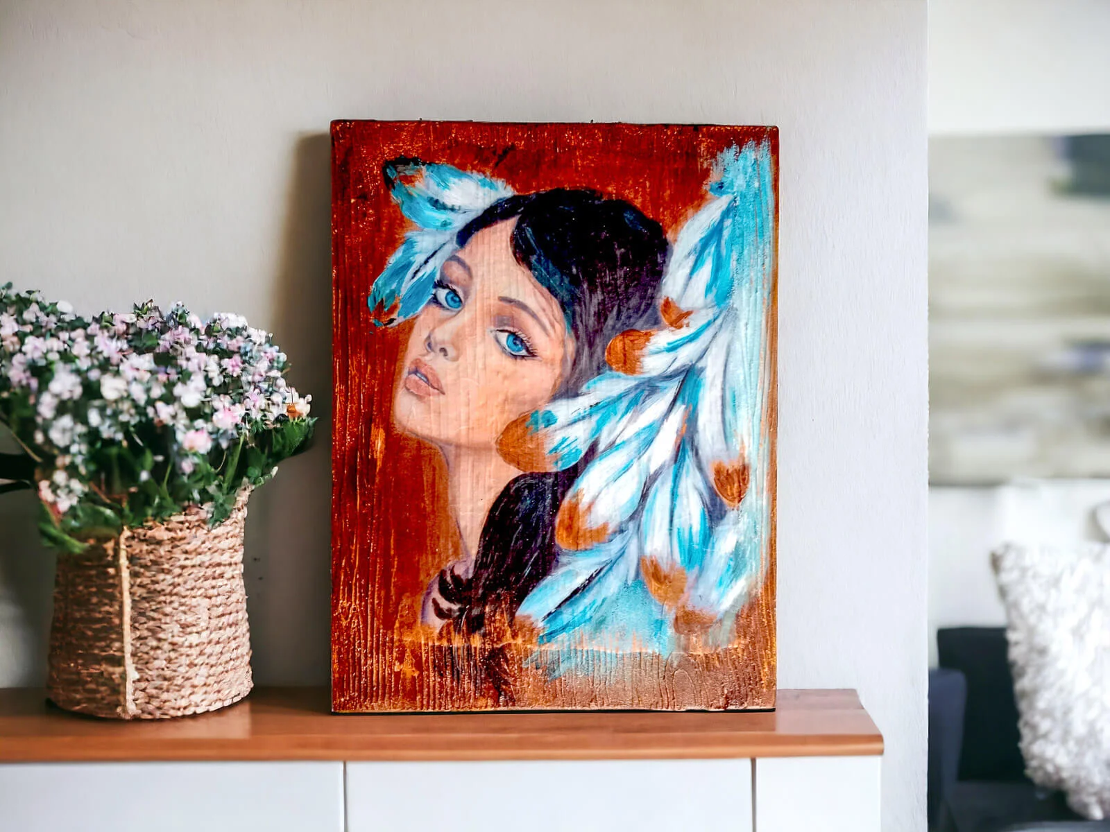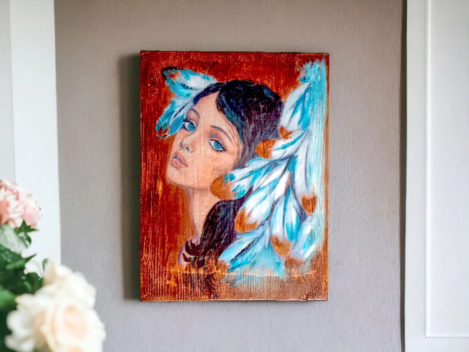 Obraz Anioł z Piórkami. Obraz wykonany na desce. Idealny na prezent.