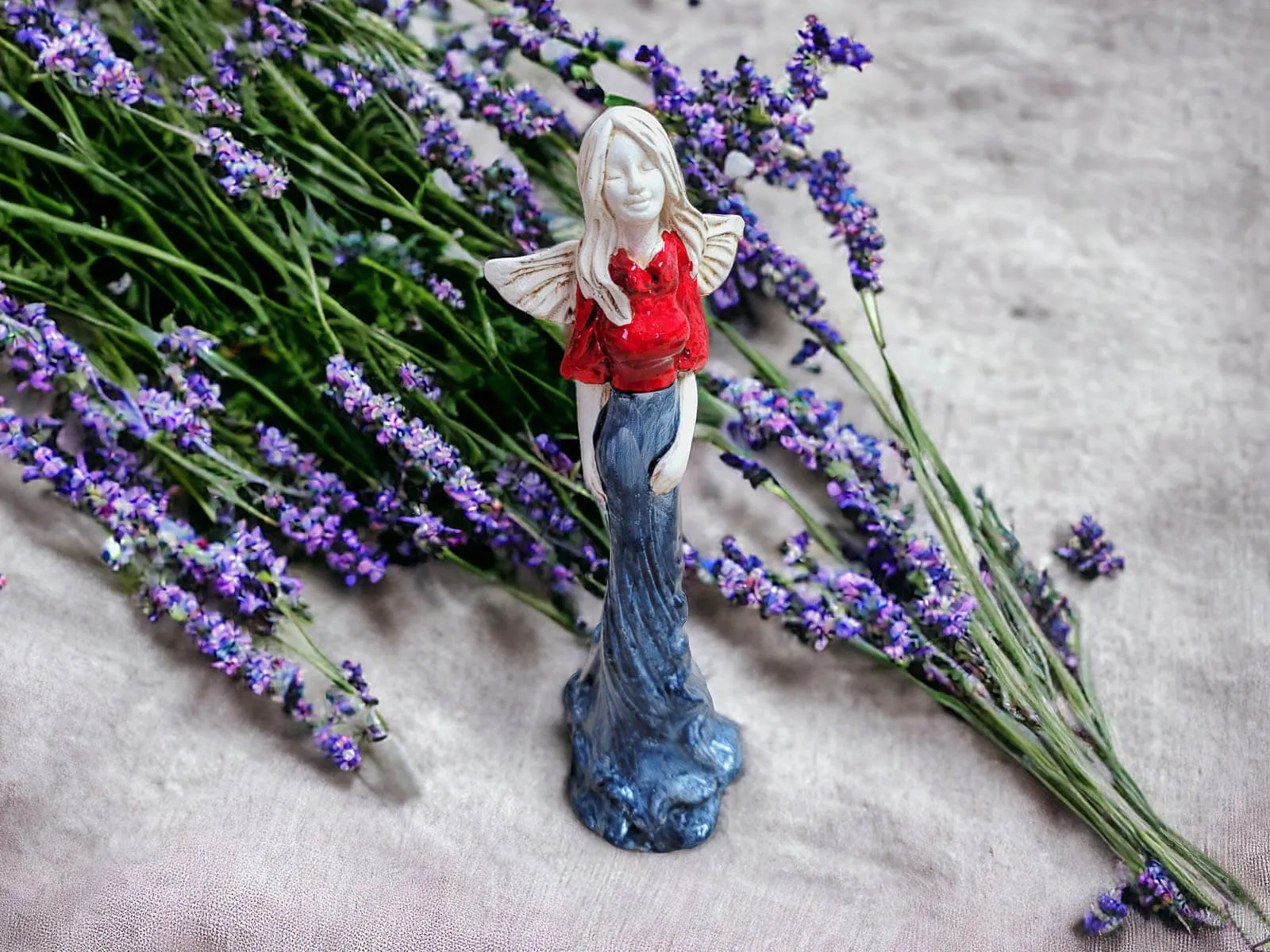 Anioł Margaret w szarej sukni z czerwonym topem to ręcznie wykonana figurka. Jej imię wywodzi się od greckiego słowa ,,margerites” co oznacza ,,perła”. Gosia to skromna dziewczyna pełna wdzięku i uroku osobistego. Jest zawsze uśmiechnięta i optymistycznie nastawiona do życia. Urokiem i subtelnością przyciąga do siebie dużo adoratorów. Małgorzata pięknie prezentuje długą, szarą suknię. Ma delikatne skrzydełka. Idealnie nadaje się na prezent dla kobiet. Świetnie sprawdzi się jako ozdoba w każdym wnętrzu.