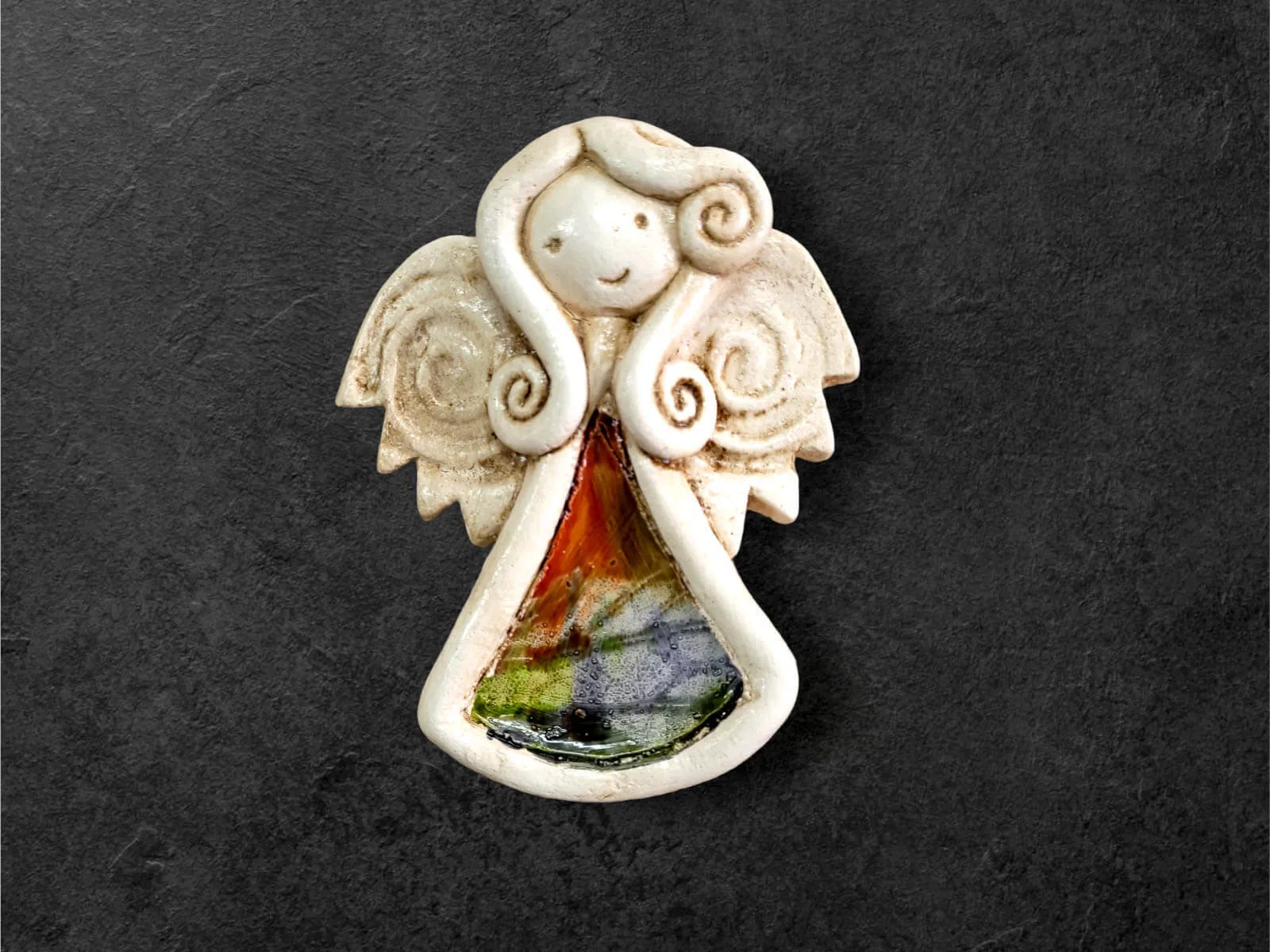 Ręcznie robiony aniołek Niunia w unikatowej wersji Art Leaf z liściem. Niunia jest śliczną dziewczynką, która całym sercem kocha swoją rodzinę. Jest troskliwa, martwi się o innych. Jest ubrana w kolorową sukienkę z wzorem liścia. Ma delikatne skrzydełka. Kolor czerwony jest symbolem miłości i namiętności. Figurka idealnie nadaje się na prezent dla ukochanej osoby z okazji walentynek.