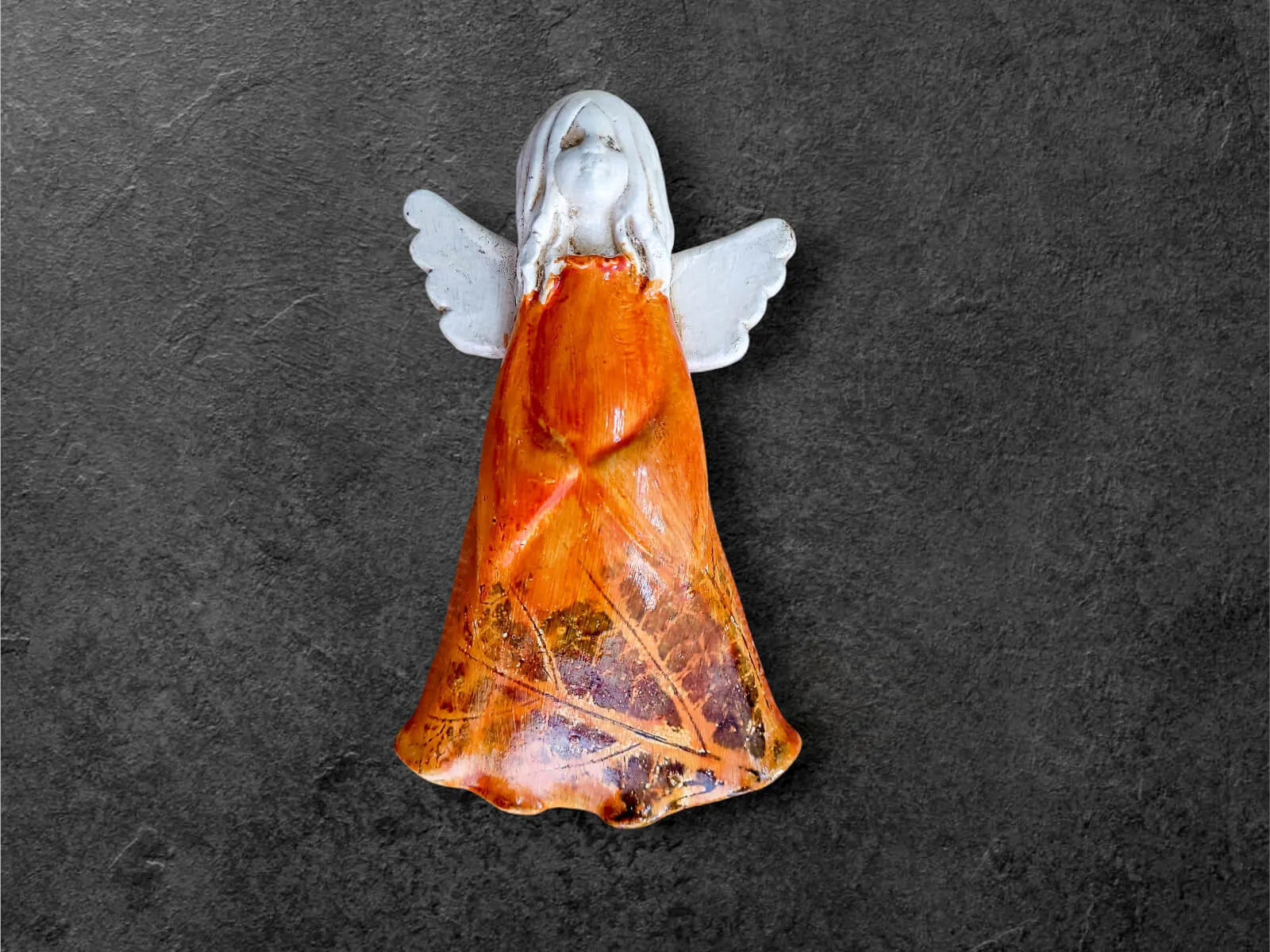 Anioł Monica z kolekcji Art to ręcznie wykonana figurka do zawieszenia na ścianę. Monica to śliczna i młoda dziewczynka pełna ciepła i czułości. Aniołek ubrany jest w zwiewną,  sukienkę z wzorami. Figurka idealnie sprawdzi się jako prezent dla dziewczynki. Świetnie wkomponuje się w klasyczne jaki i nowoczesne wnętrze.