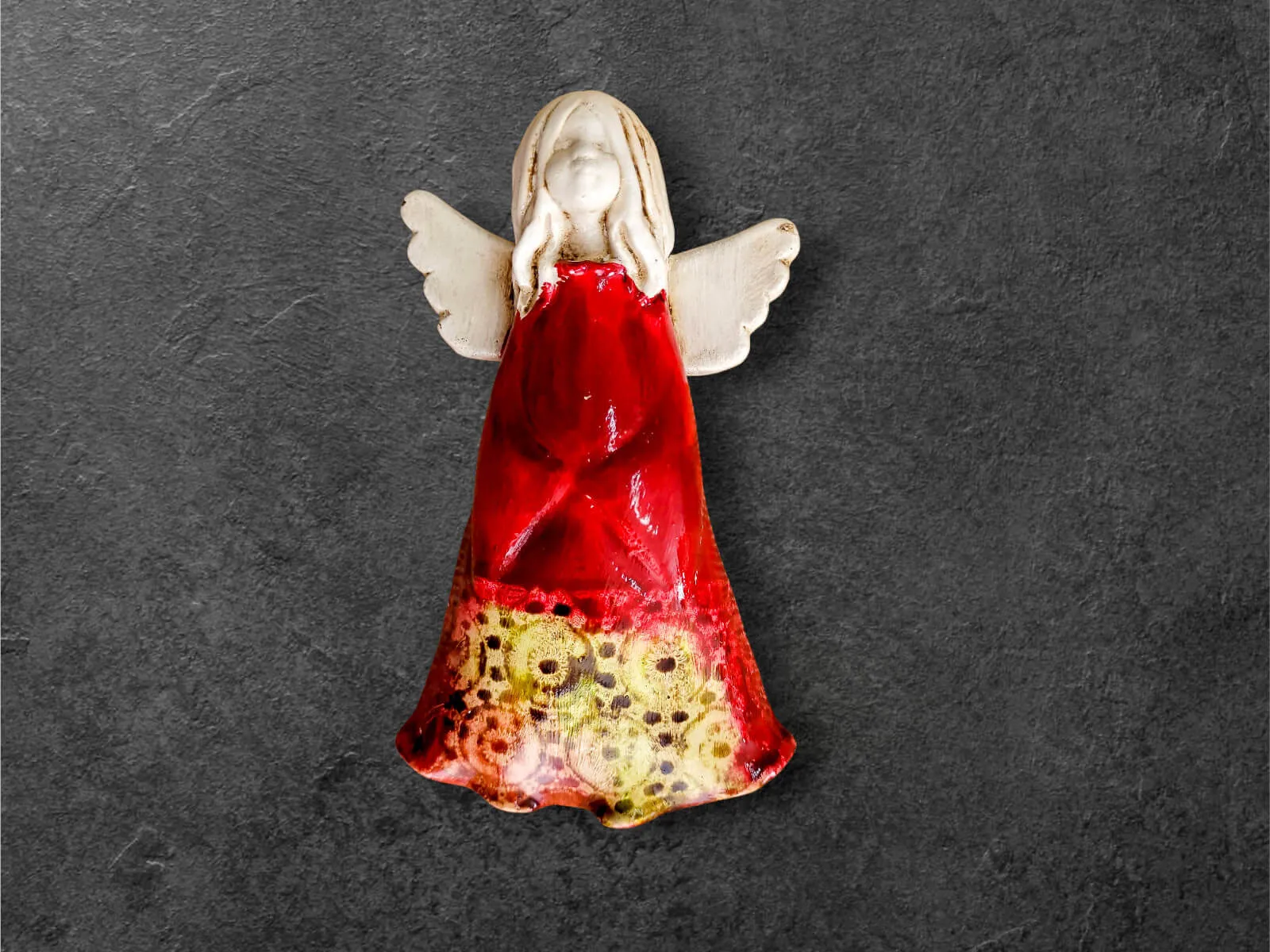 Anioł Monica z kolekcji Art to ręcznie wykonana figurka do zawieszenia na ścianę. Monica to śliczna i młoda dziewczynka pełna ciepła i czułości. Aniołek ubrany jest w zwiewną, sukienkę z wzorami. Figurka idealnie sprawdzi się jako prezent dla dziewczynki. Świetnie wkomponuje się w klasyczne jaki i nowoczesne wnętrze.