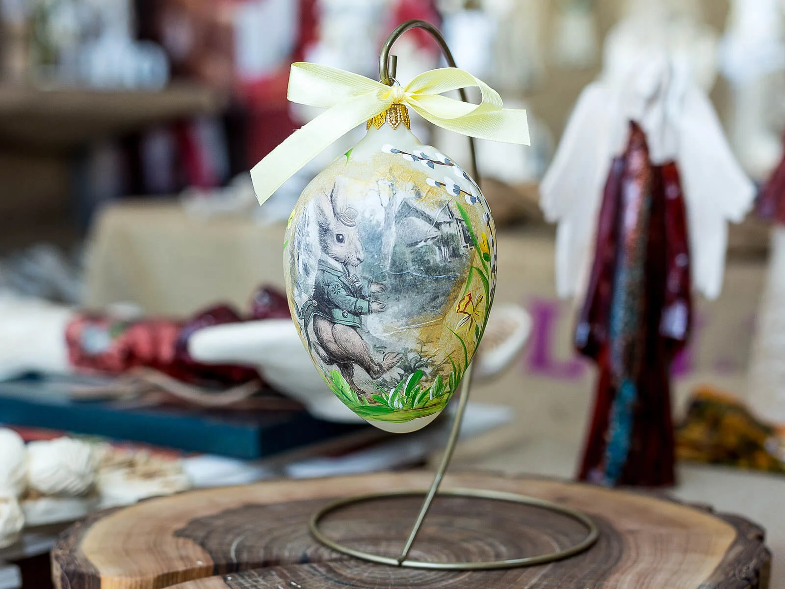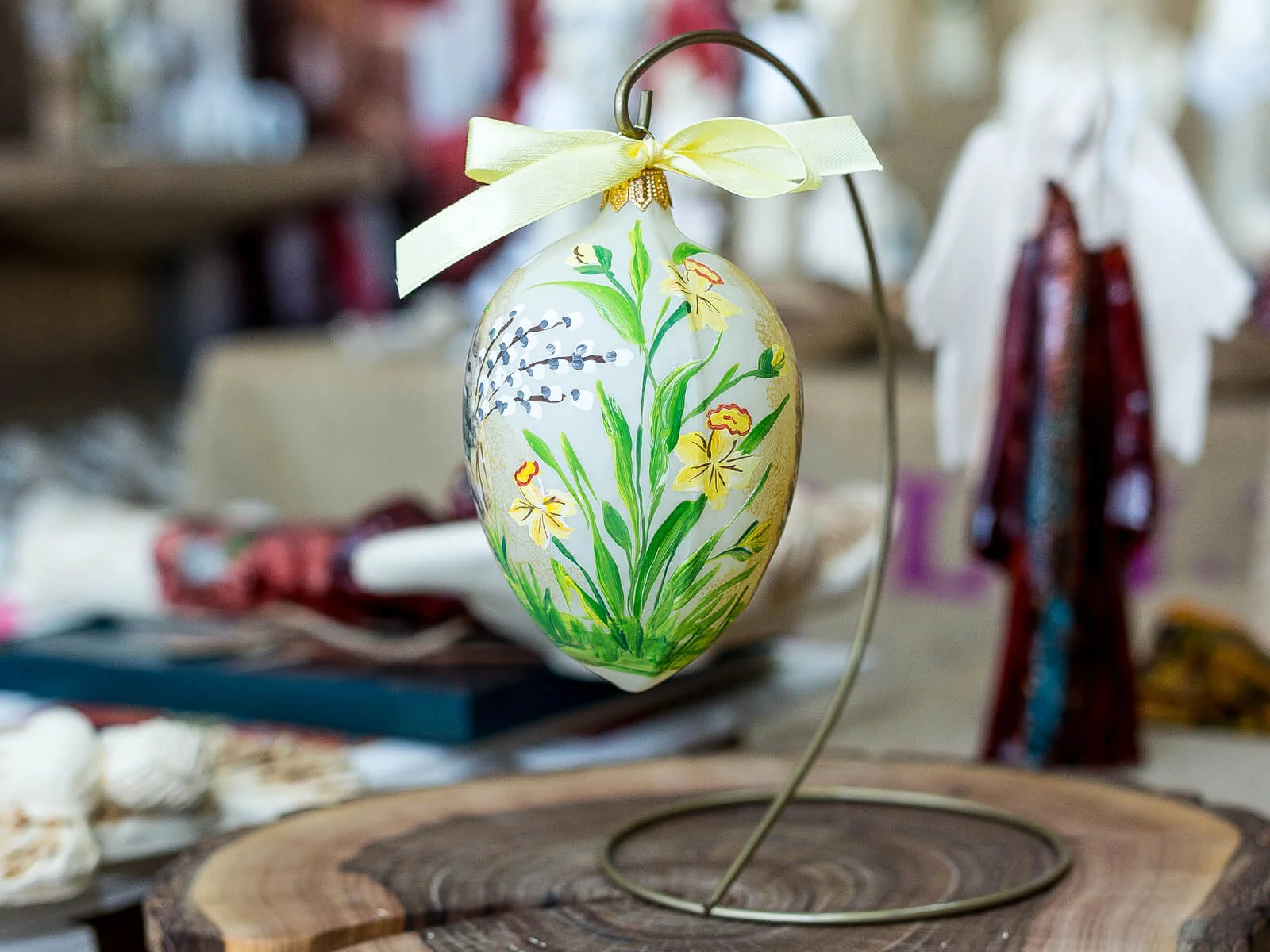 Jajko wielkanocne faberge - szklana, ręcznie robiona dekoracja na Wielkanocny stół.