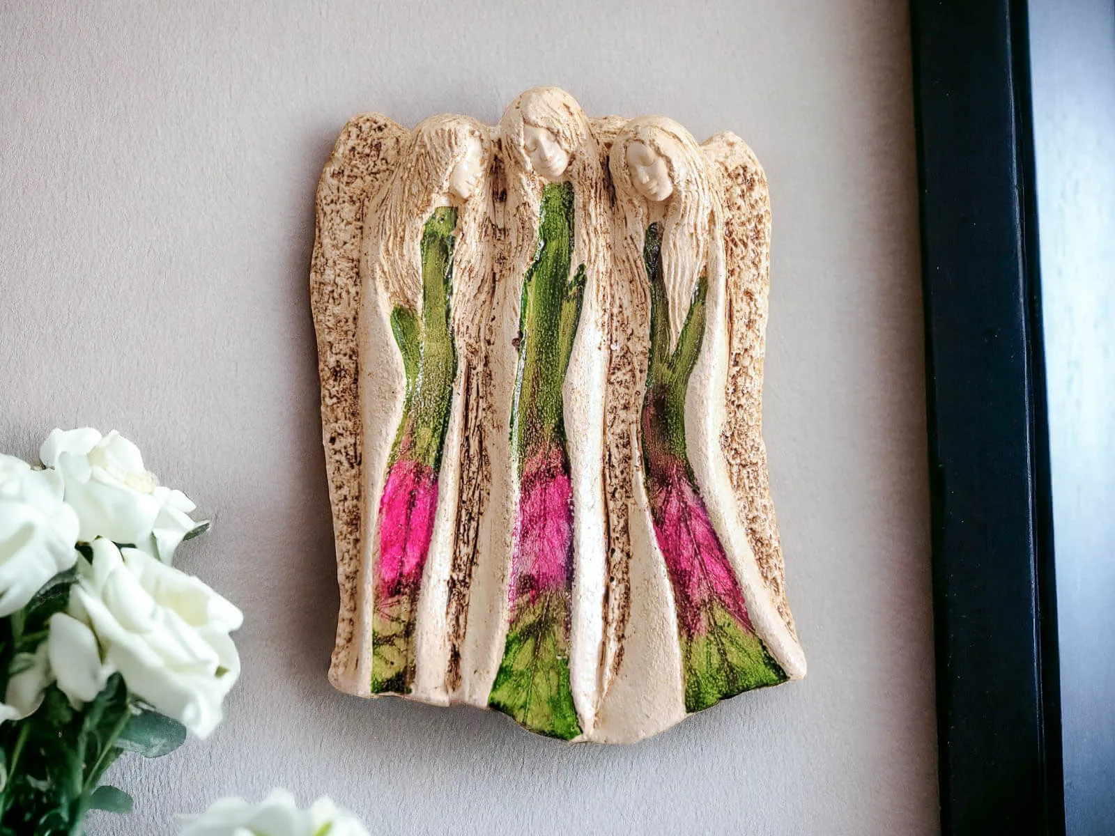 Figurka Anioły Wiara, Nadzieja, Miłość z kolekcji Art Leaf to wyjątkowa dekoracja, która emanuje głębokim pięknem i symboliką. Ręcznie wykonana z najwyższej jakości gipsu, każda figurka przedstawiająca trzy anioły jest jedyna w swoim rodzaju, co czyni ją niezwykle cenną ozdobą i niepowtarzalnym elementem kolekcji. Anioły te symbolizują trzy kluczowe wartości – wiarę, nadzieję i miłość – które przypominają o najważniejszych aspektach życia, wnosząc do wnętrza aurę spokoju, ciepła i inspiracji. Figurki z tej kolekcji są ręcznie malowane, dzięki czemu każda z nich posiada unikalny charakter oraz subtelne niuanse kolorystyczne, nadające jej niepowtarzalnego wdzięku i elegancji.