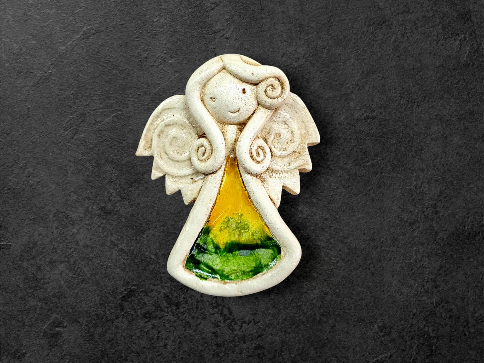 Ręcznie robiony aniołek Niunia w unikatowej wersji Art Leaf z liściem. Niunia jest śliczną dziewczynką, która całym sercem kocha swoją rodzinę. Jest troskliwa, martwi się o innych. Jest ubrana w kolorową sukienkę z wzorem liścia. Ma delikatne skrzydełka. Kolor czerwony jest symbolem miłości i namiętności. Figurka idealnie nadaje się na prezent dla ukochanej osoby z okazji walentynek.