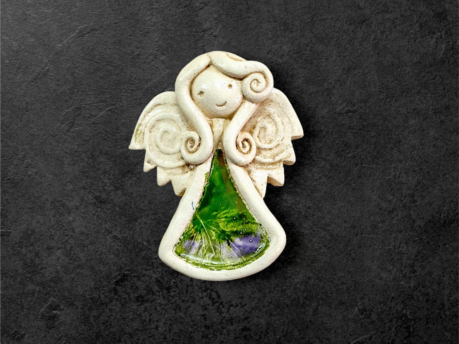 Ręcznie robiony aniołek Niunia w unikatowej wersji Art Leaf z liściem. Niunia jest śliczną dziewczynką, która całym sercem kocha swoją rodzinę. Jest troskliwa, martwi się o innych. Jest ubrana w kolorową sukienkę z wzorem liścia. Ma delikatne skrzydełka. Kolor czerwony jest symbolem miłości i namiętności. Figurka idealnie nadaje się na prezent dla ukochanej osoby z okazji walentynek.