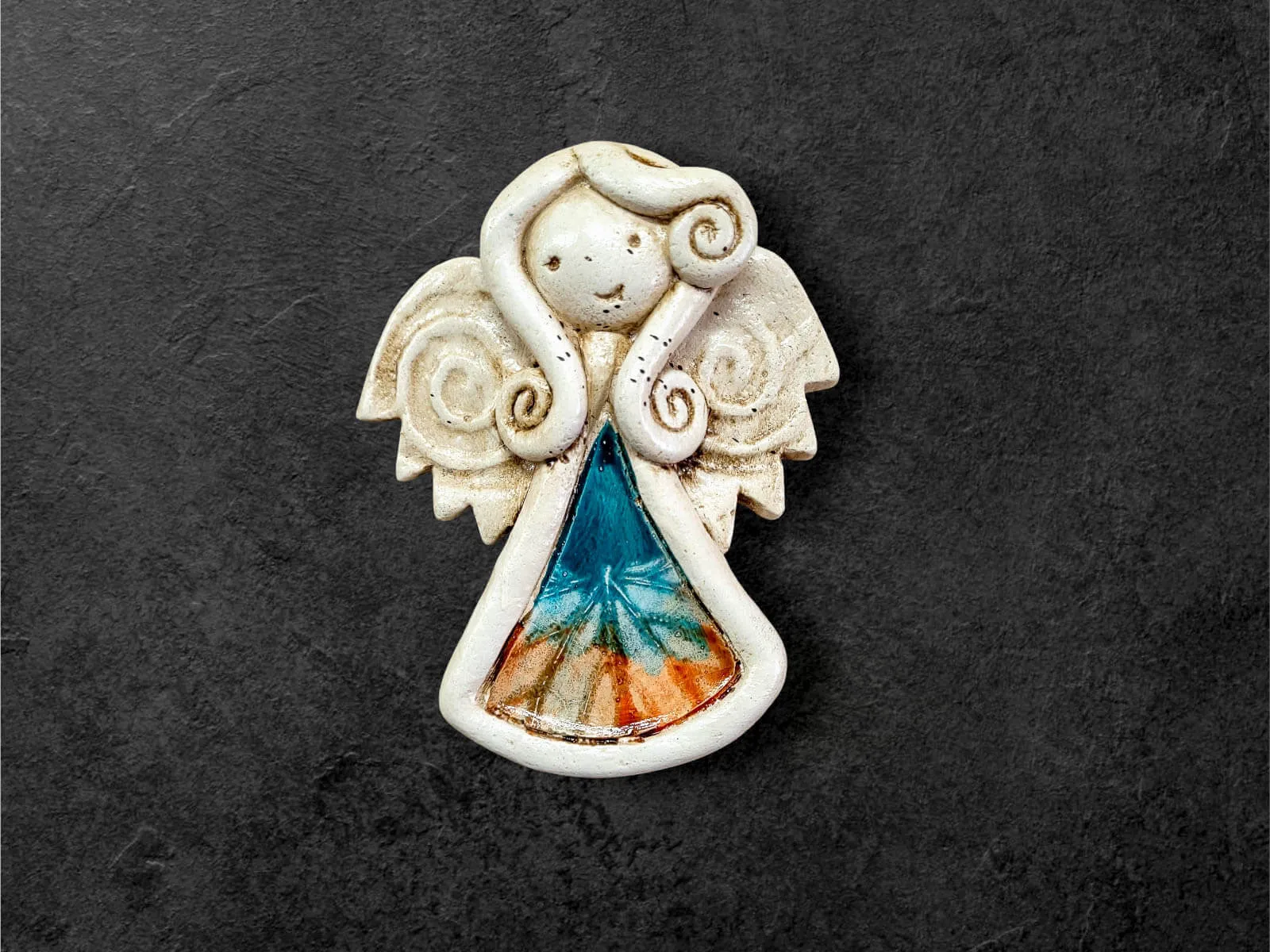 Ręcznie robiony aniołek Niunia w unikatowej wersji Art Leaf z liściem. Niunia jest śliczną dziewczynką, która całym sercem kocha swoją rodzinę. Jest troskliwa, martwi się o innych. Jest ubrana w kolorową sukienkę z wzorem liścia. Ma delikatne skrzydełka. Kolor czerwony jest symbolem miłości i namiętności. Figurka idealnie nadaje się na prezent dla ukochanej osoby z okazji walentynek.