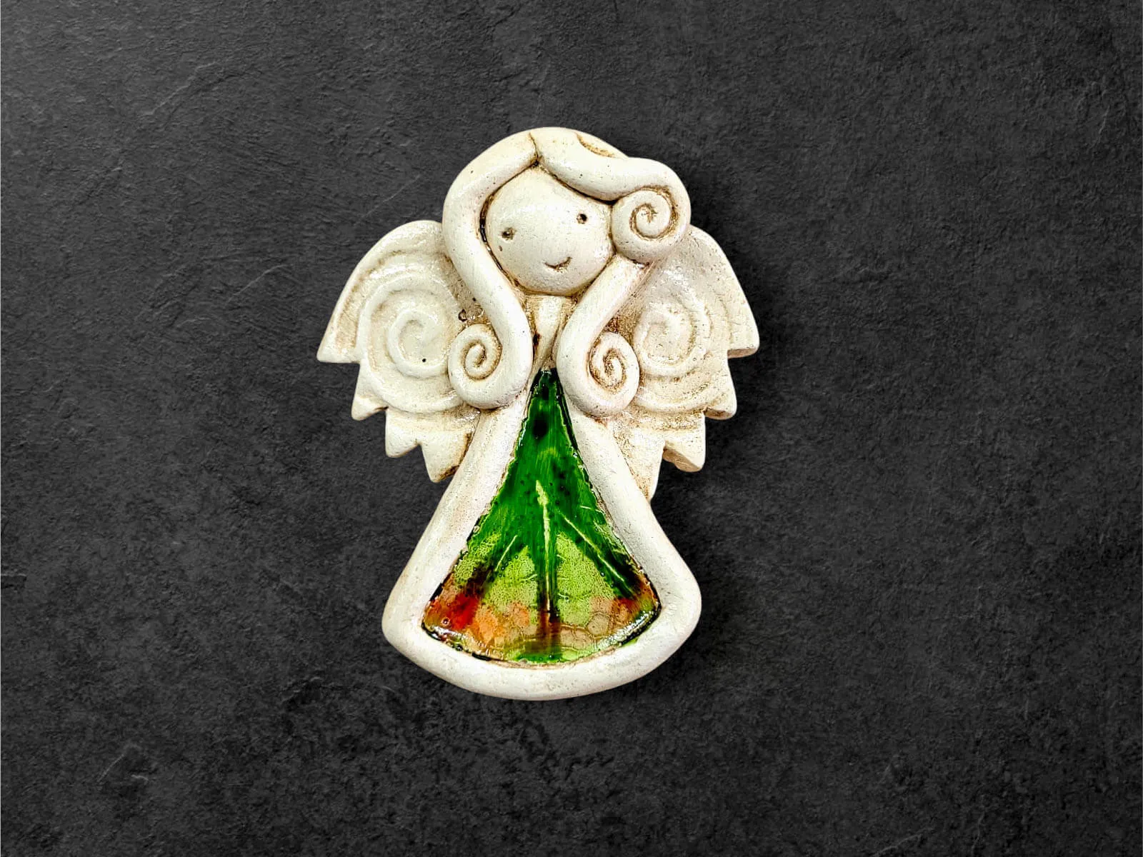 Ręcznie robiony aniołek Niunia w unikatowej wersji Art Leaf z liściem. Niunia jest śliczną dziewczynką, która całym sercem kocha swoją rodzinę. Jest troskliwa, martwi się o innych. Jest ubrana w kolorową sukienkę z wzorem liścia. Ma delikatne skrzydełka. Kolor czerwony jest symbolem miłości i namiętności. Figurka idealnie nadaje się na prezent dla ukochanej osoby z okazji walentynek.