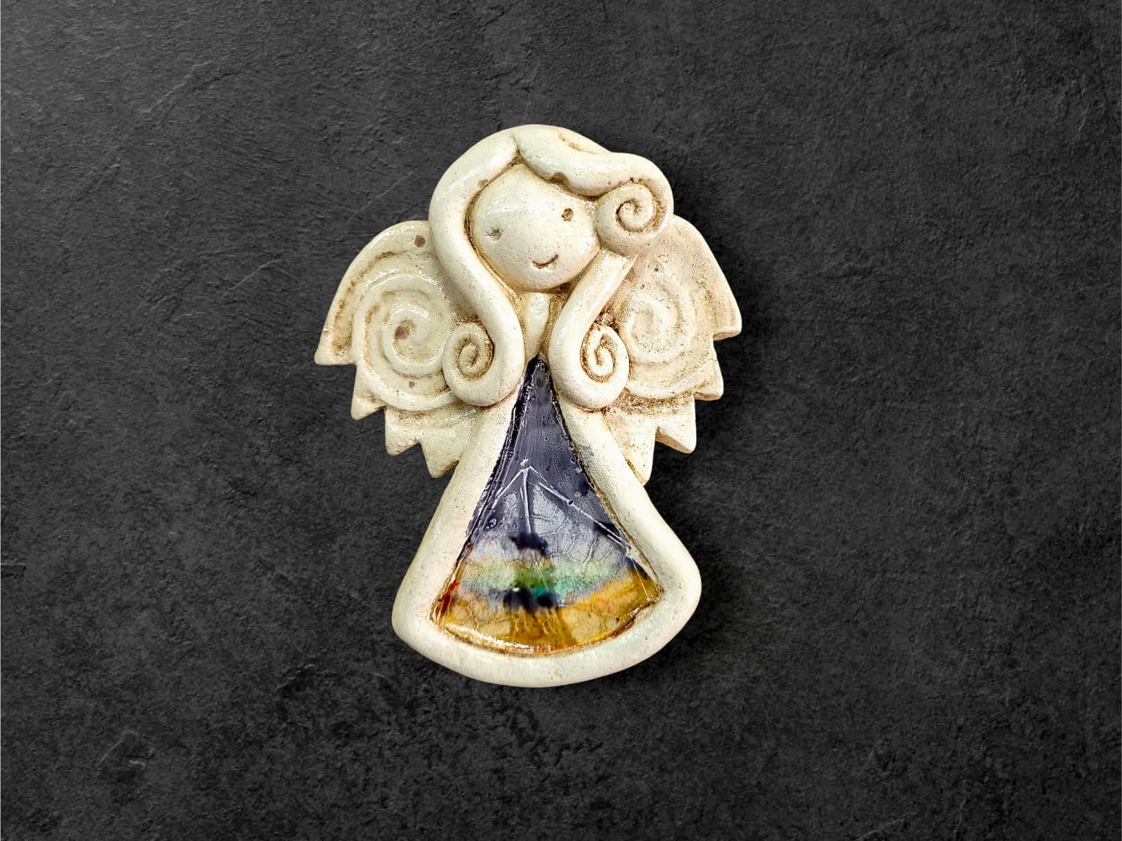 Ręcznie robiony aniołek Niunia w unikatowej wersji Art Leaf z liściem. Niunia jest śliczną dziewczynką, która całym sercem kocha swoją rodzinę. Jest troskliwa, martwi się o innych. Jest ubrana w kolorową sukienkę z wzorem liścia. Ma delikatne skrzydełka. Kolor czerwony jest symbolem miłości i namiętności. Figurka idealnie nadaje się na prezent dla ukochanej osoby z okazji walentynek.