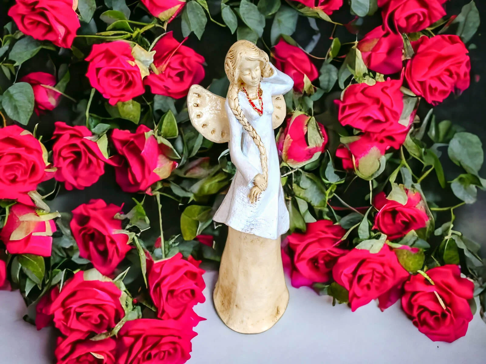 Anioł Ariannaw w białym kolorze to postać pięknej uskrzydlonej dziewczyny z warkoczem sięgającym bioder. Jej szyję zdobi naszyjnik w kolorze intensywnej czerwieni. Ma skromną suknię utrzymaną w odcieniach bieli i beżu, której dół zdobią malowane słowiańskie kwiaty. Może stanowić oryginalną dekorację salonu, która z pewnością wyróżni się na tle innych ozdób i przyciągnie wzrok gości, a podarowana bliskiej osobie na pewno sprawi dużo radości.