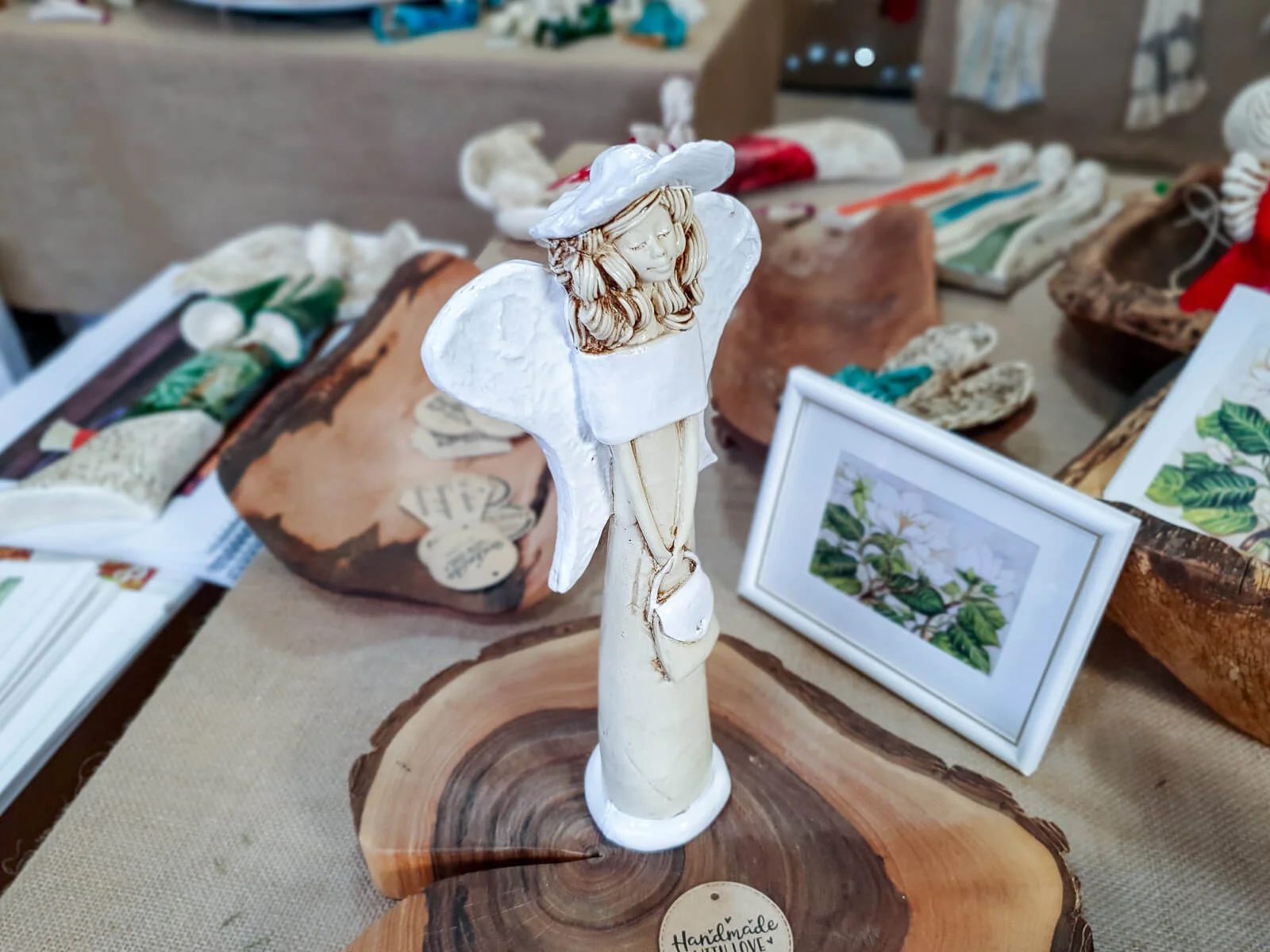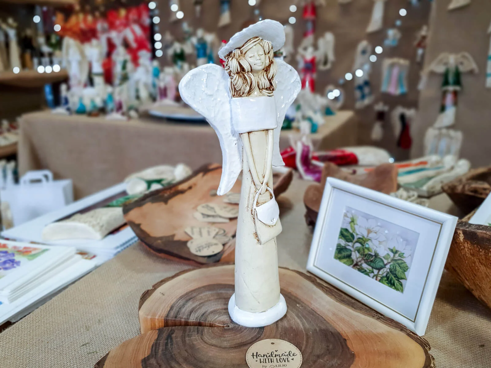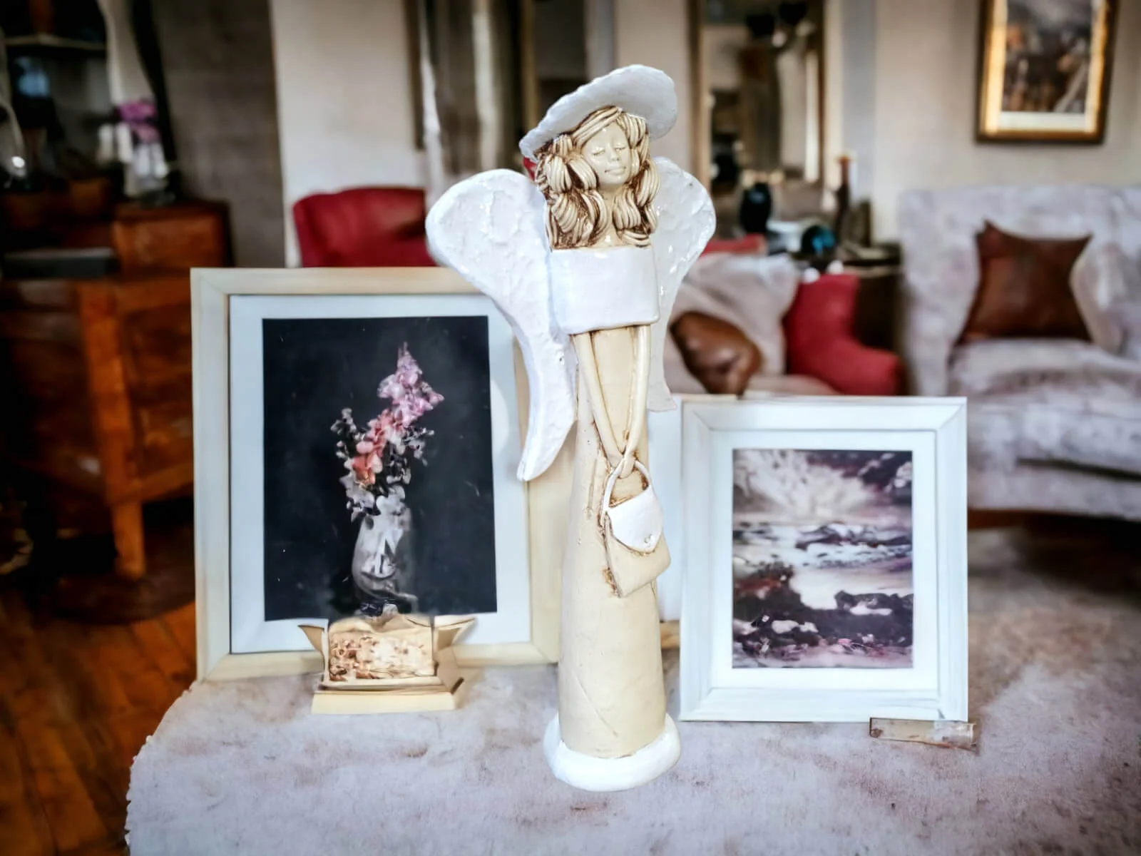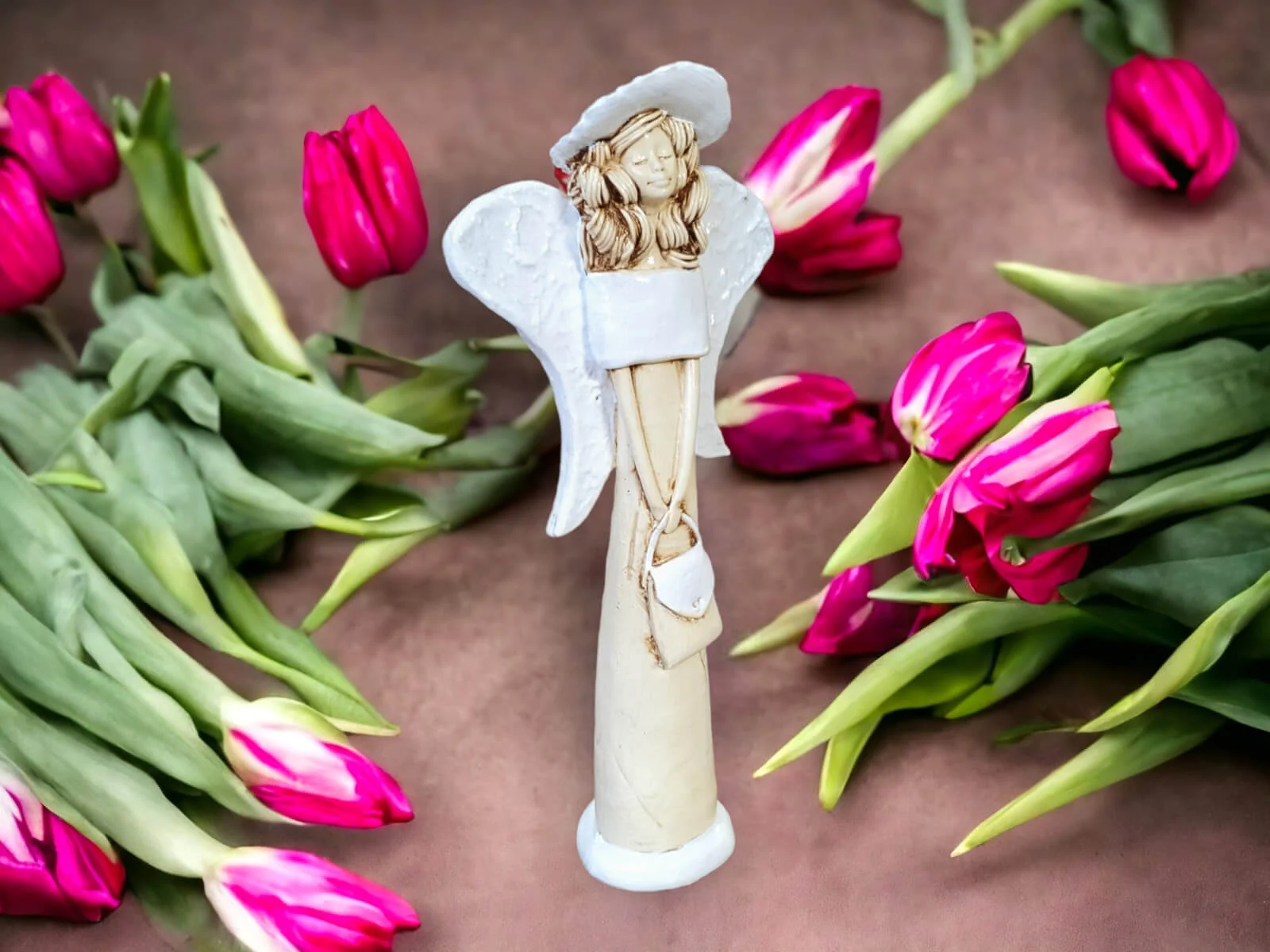 Anioł Coco to ręcznie wykonana figurka w kształcie filigranowej dziewczynki. Ma cudowne rozłożyste skrzydła.Jej beżowy ubiór podkreślają białe akcenty. Figurka Coco idealnie nadaje się na prezent dla dziewczynki jako pamiątka komunijna oraz chrzciny. Anioł może pięknie prezentować się jako ozdoba wnętrz jak i ogrodu.