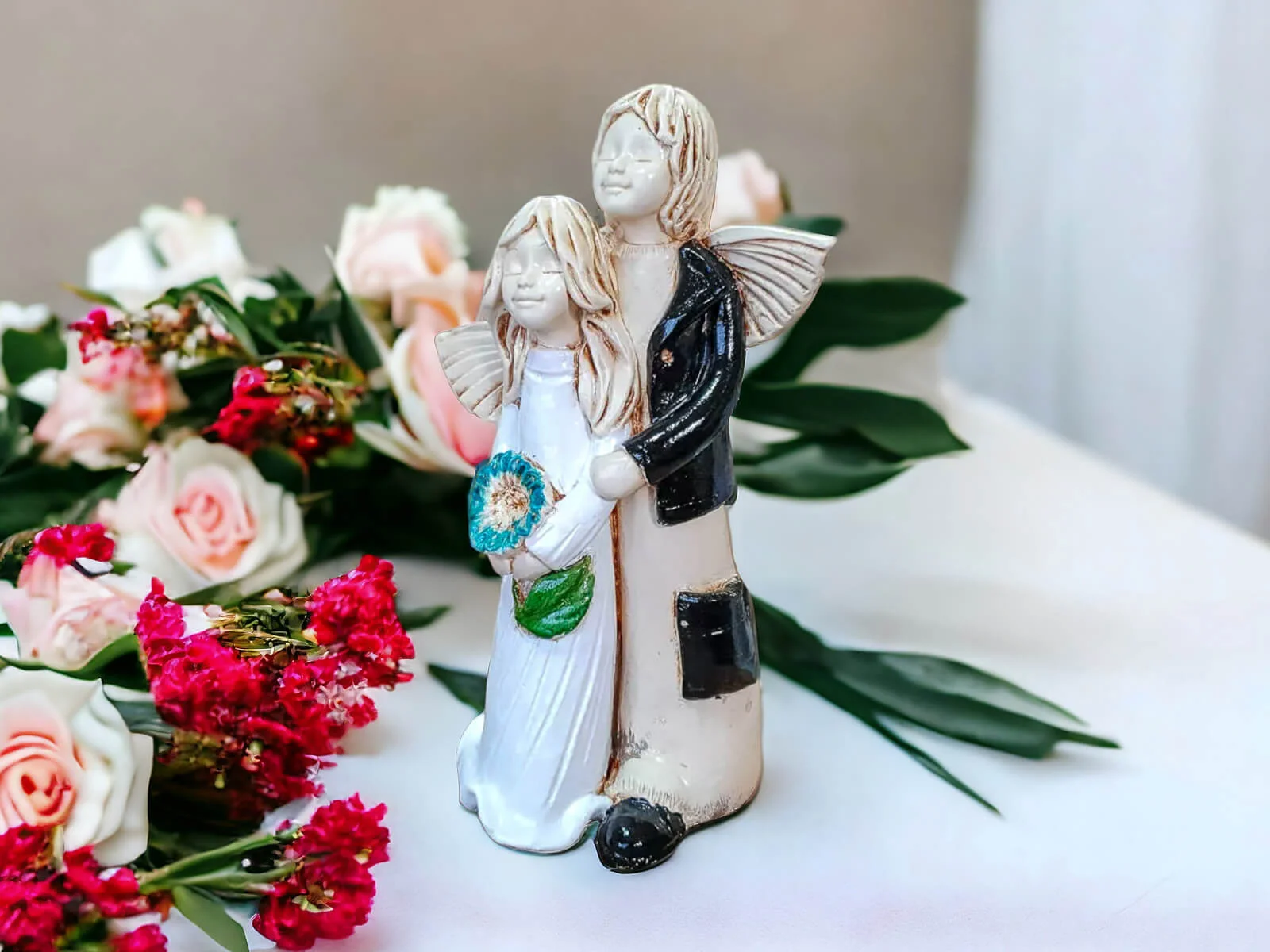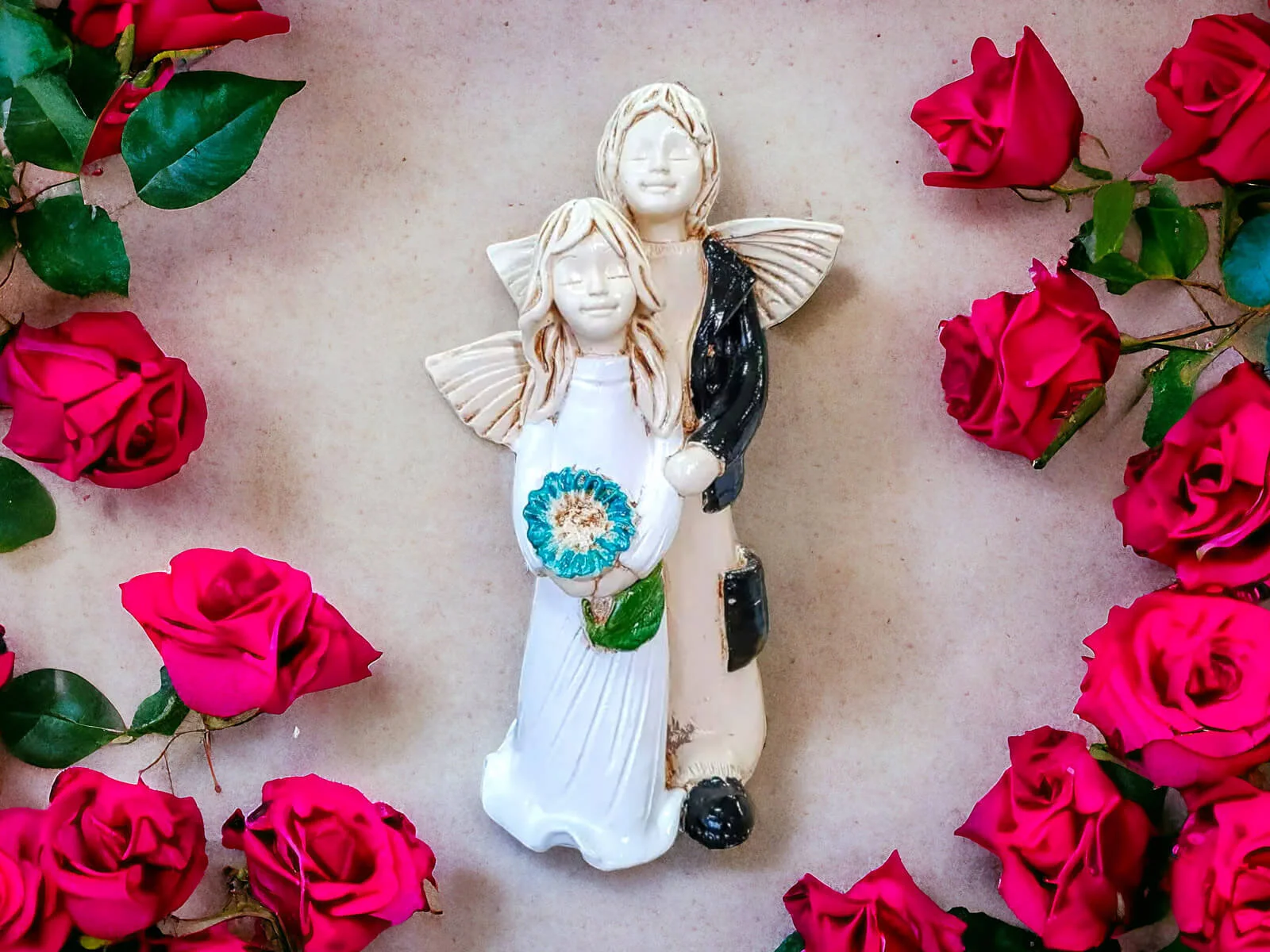 Allen & Alice to ręcznie wykonana figurka dwóch aniołów, które obejmują się czule, okazując sobie miłość i bliskość. Ich delikatne gesty symbolizują więź i harmonię, która istnieje między nimi. Ta urocza scena sprawia, że są one doskonałym prezentem na wiele okazji, takich jak I Komunia Święta, prezent ślubny dla pary młodej, rocznica ślubu lub inne wyjątkowe wydarzenia.