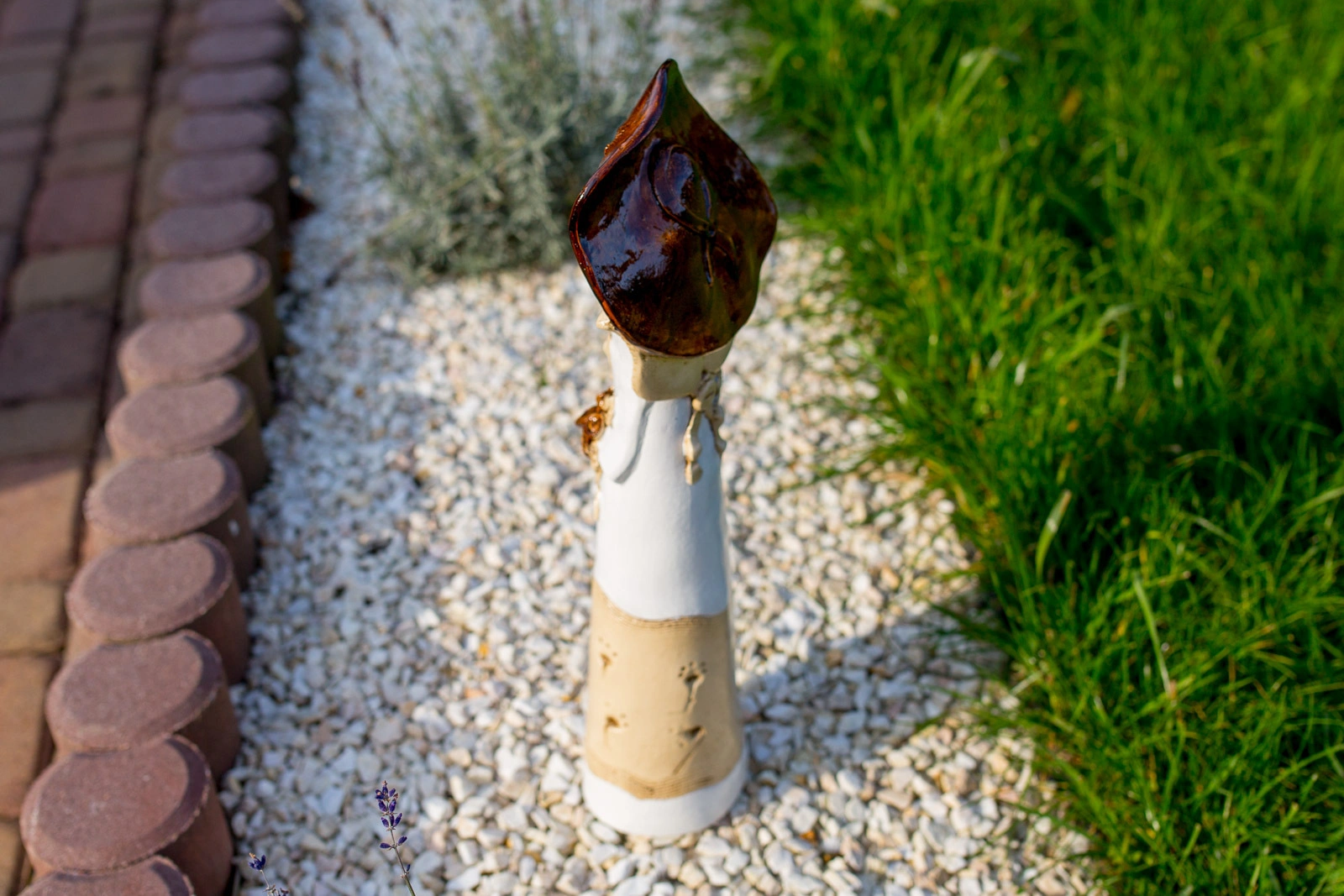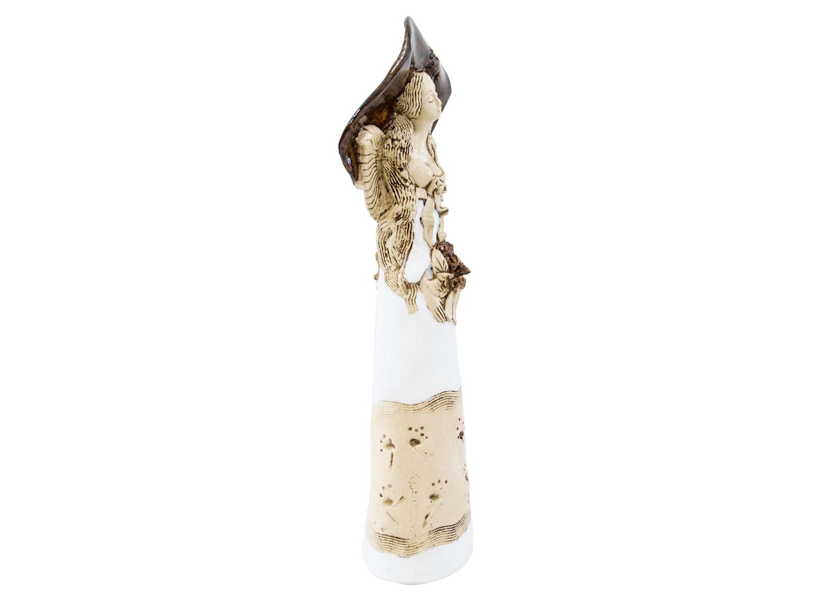 Anioł Mabel ma postać kobiety w ogromnym kapeluszu, która trzyma w dłoniach kosz kwiatów. Pięknie dobrana gama barw czyni ją wyjątkową na tle innych figurek. Może stanowić niezwykły akcent wystroju ogrodu lub wnętrza, w zależności od osobistych preferencji posiadacza. Świetnie sprawdza się również jako prezent ślubny, walentynkowy bądź na dzień matki.