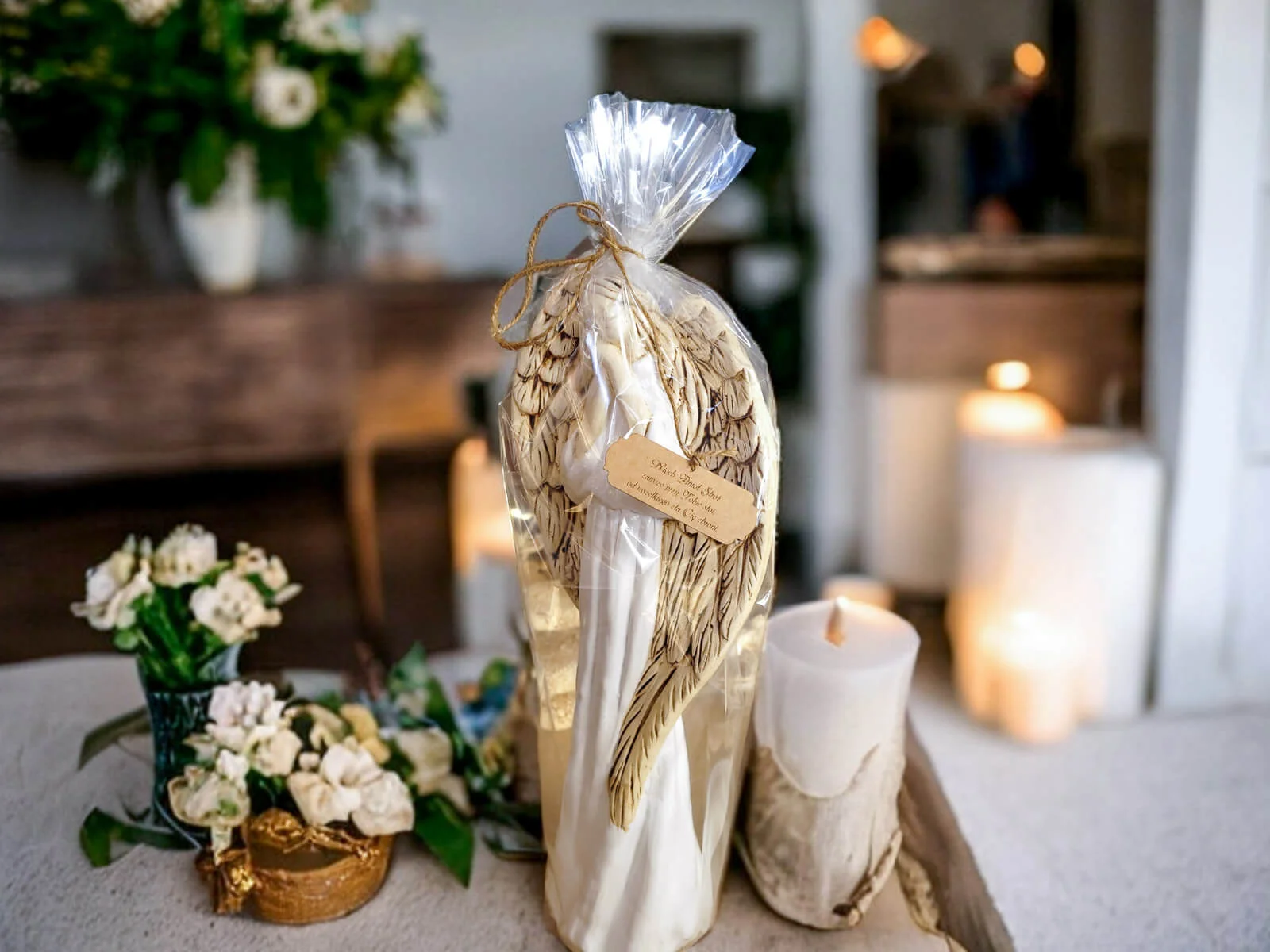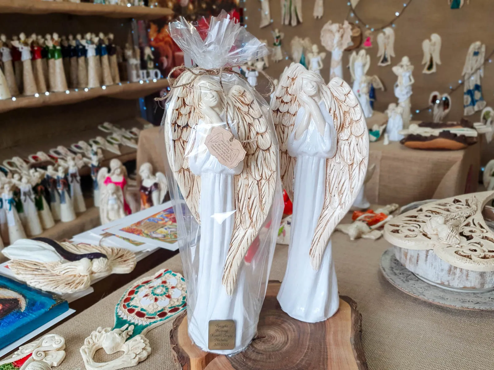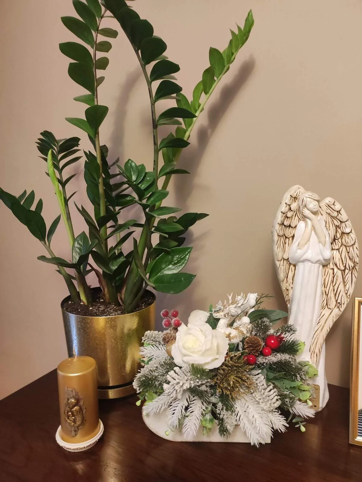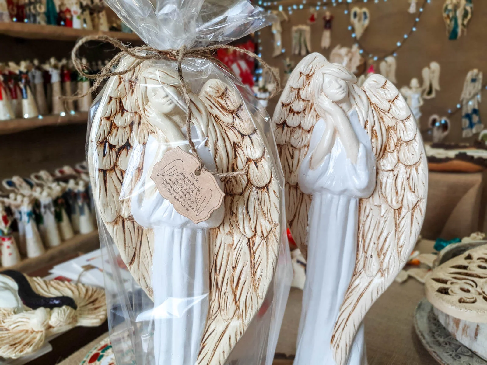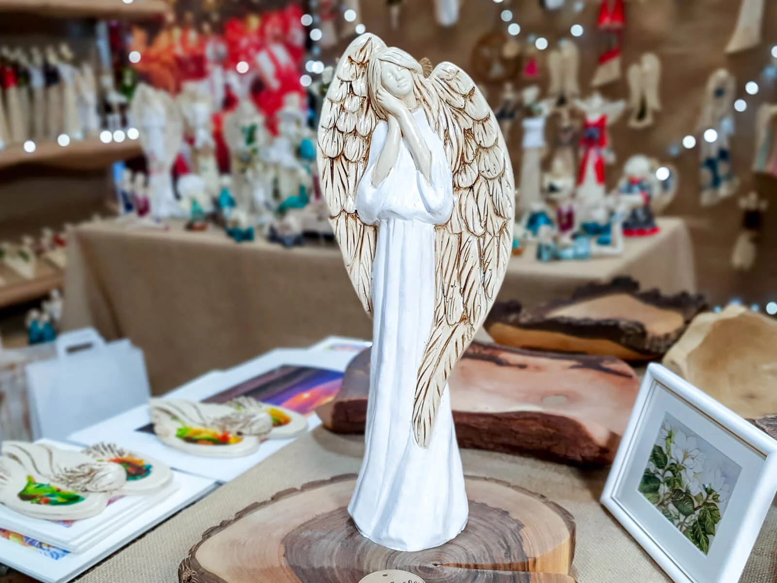 Anioł Gabriel to ręcznie wykonana gipsowa figurka w pięknych odcieniach bieli i beżu. Anioł ma cudowne, rozłożyste skrzydła i przybiera postać o złożonych dłoniach przy twarzy, na której maluje się spokój i melancholia. Idealnie sprawdzi się na prezent ślubny czy komunijny. Może efektownie ozdabiać zarówno wnętrza, jak i ogród.
