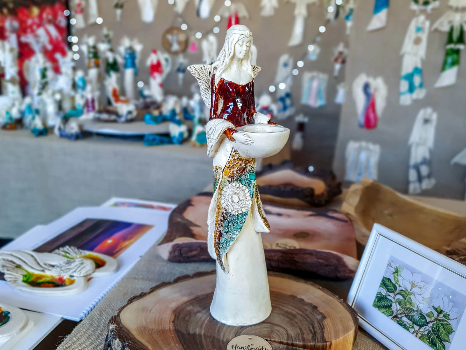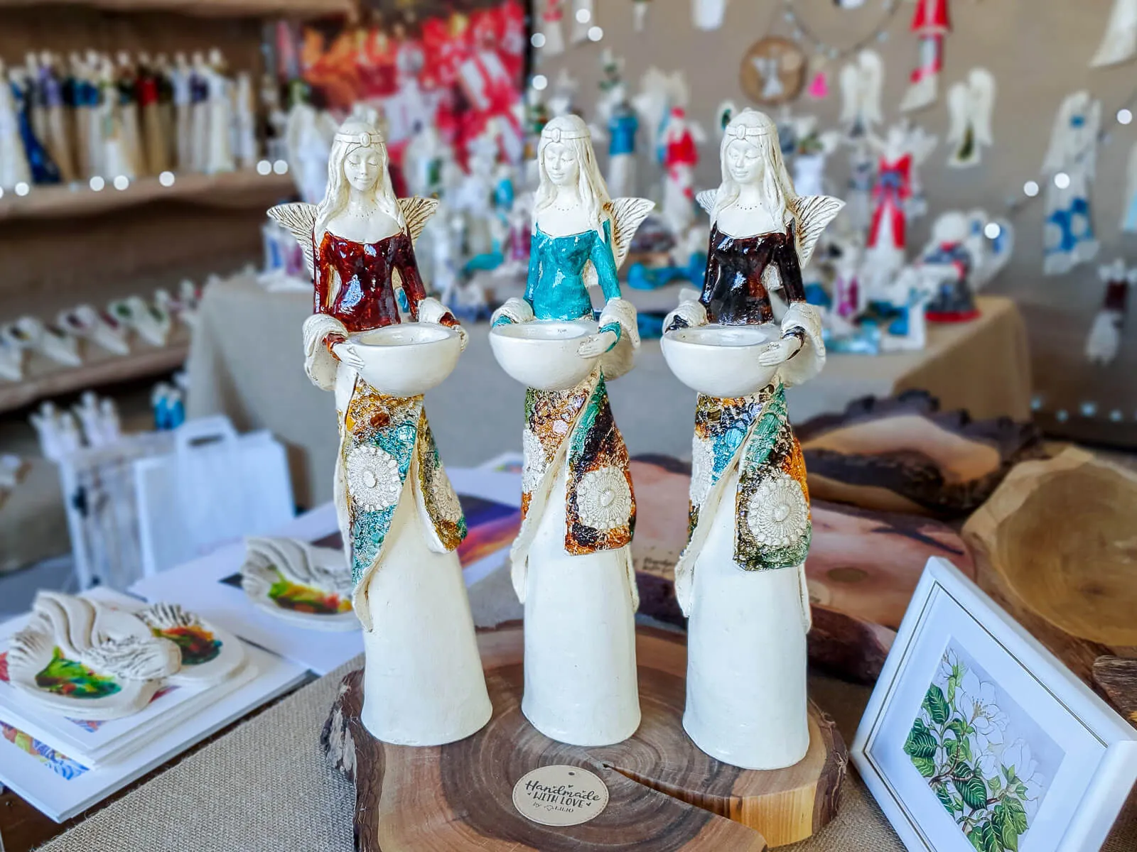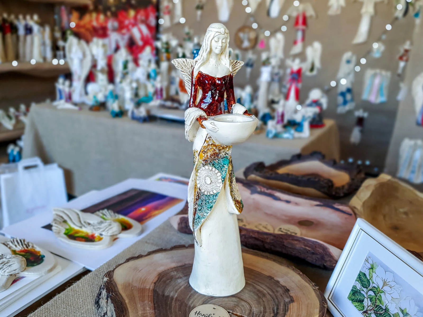 Anioł Florence w odcieniach jasnego brązu jest figurką stojącą wykonaną ręcznie z gipsu. Przedstawia kobietę w brązowo-beżowej sukni ze wzorami. Na długich, jasnych włosach ma opaskę, a na szyi naszyjnik. W dłoniach trzyma misę, do której można włożyć małą świeczkę. Na przedramionach posiada długą chustę, natomiast na plecach małe skrzydła skierowane ku górze. Może być jako ozdoba wnętrza lub ogrodu, a także prezentem.