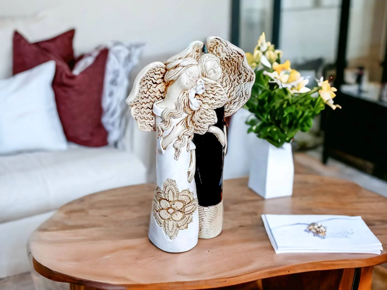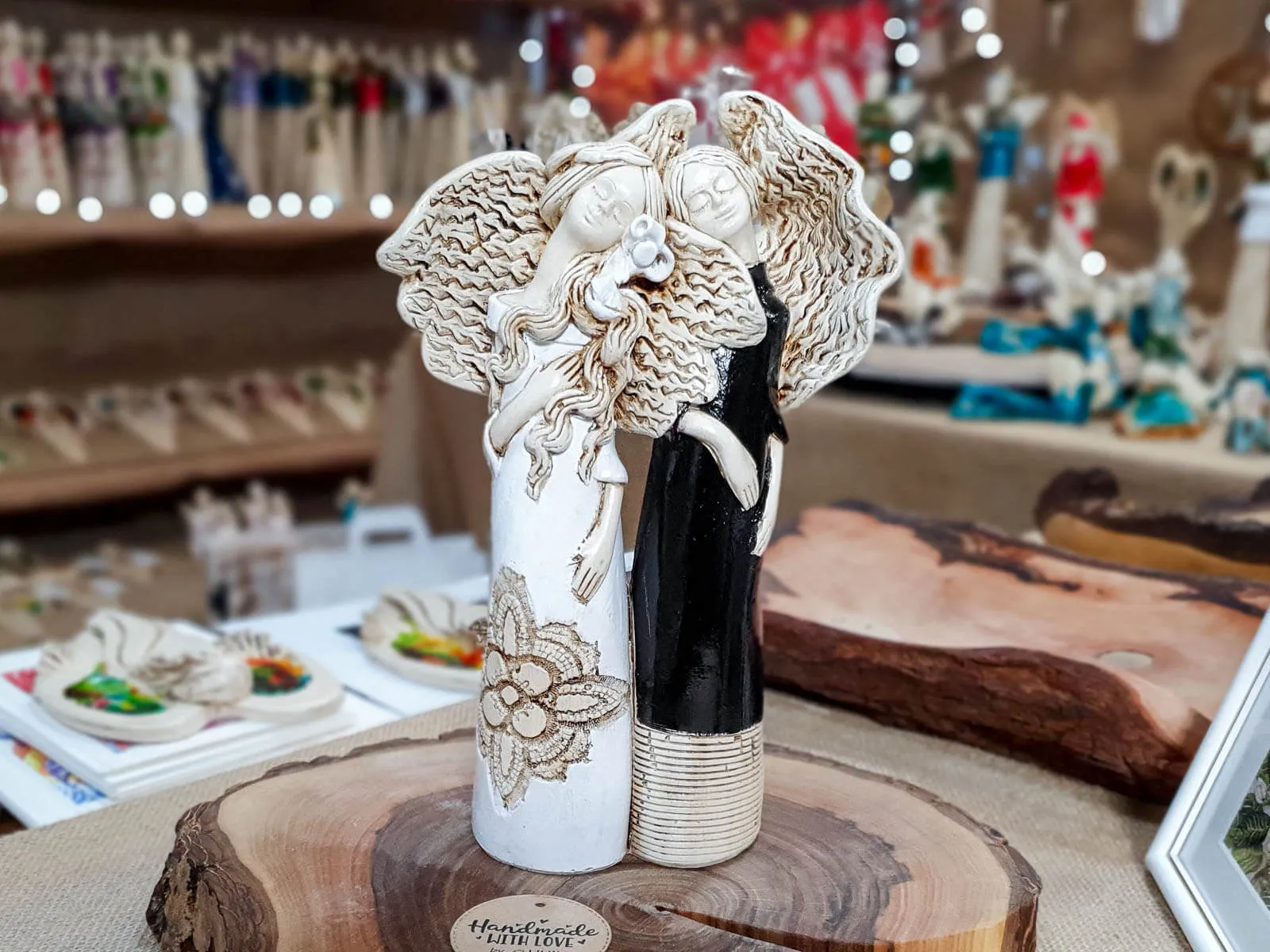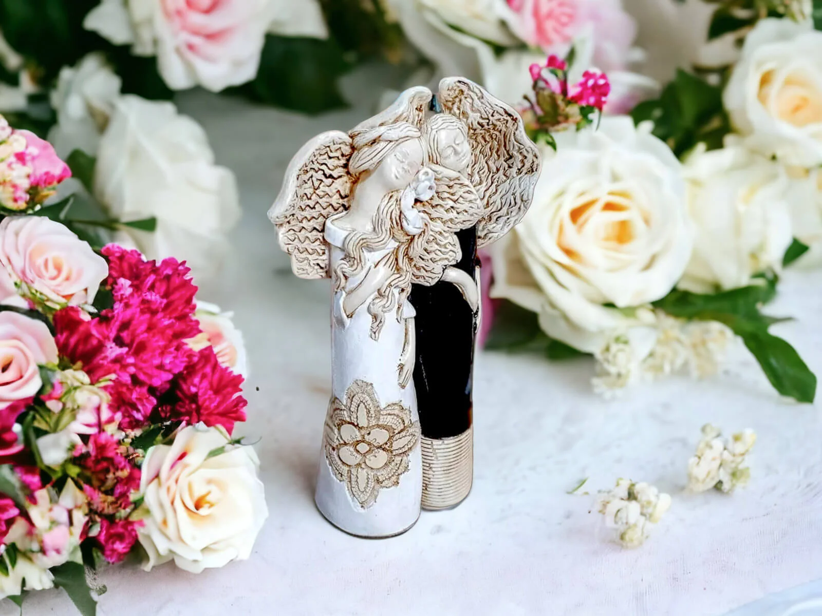 Nora i Ellie to siostry, darzące się wzajemnie ogromną miłością. Kochają spędzać razem czas i nie mogłyby żyć oddzielnie. Dlatego właśnie figurka przedstawia je razem - wtulone w siebie celebrują chwile spędzane razem. Całość ubrana jest w piękne, subtelne barwy - biel, beż z nutą czerni. Figura pięknie udekoruje salon bądź ogród.