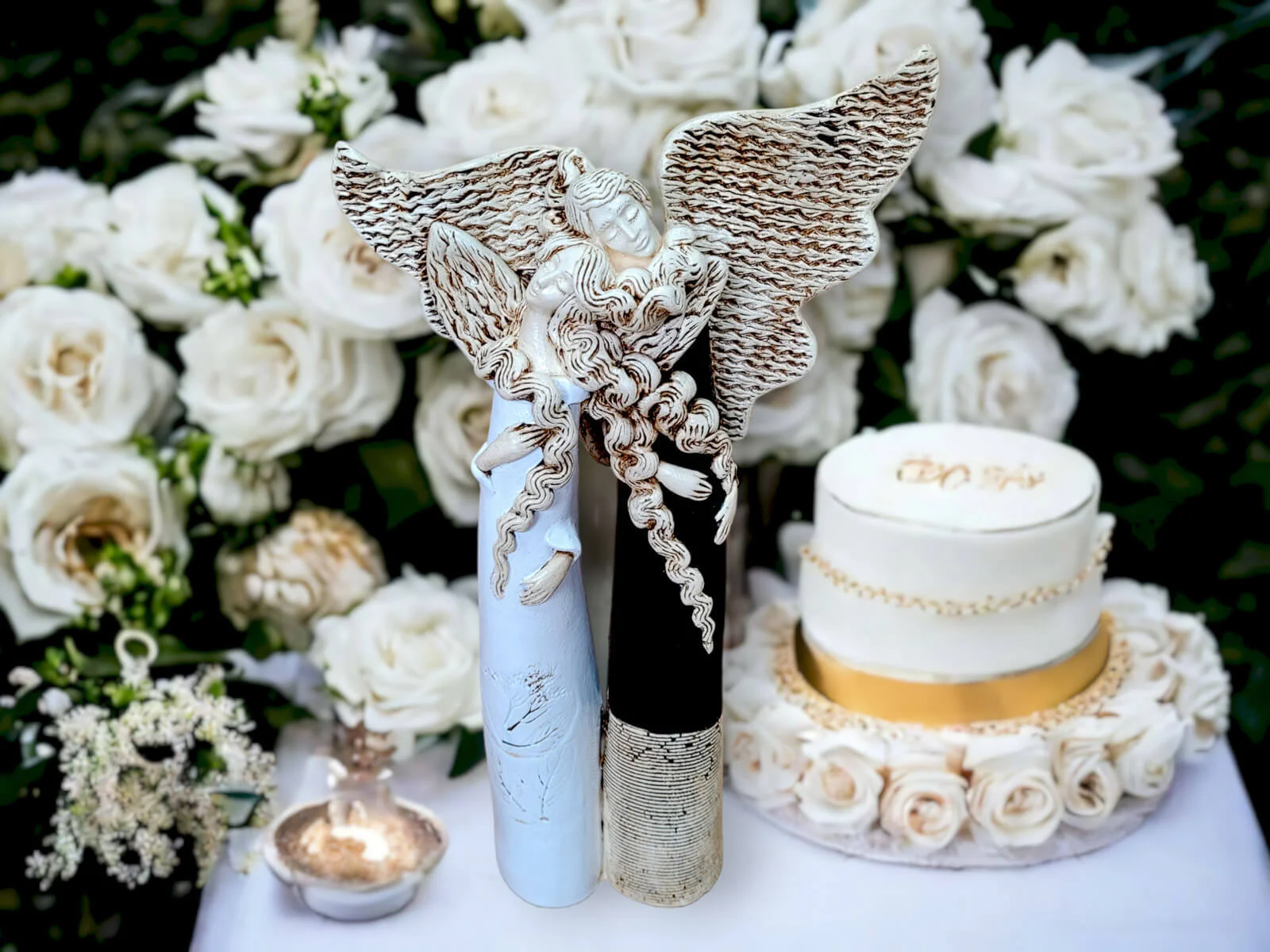 Figurka Anioł Romeo & Juliet to ręcznie wykonana figurka, które przedstawia zakochaną parę aniołów delikatnie stykających się czołami – symbol bliskości, zaufania i wiecznej miłości. Idealne jeśli szukasz prezentu, który naprawdę poruszy serce.