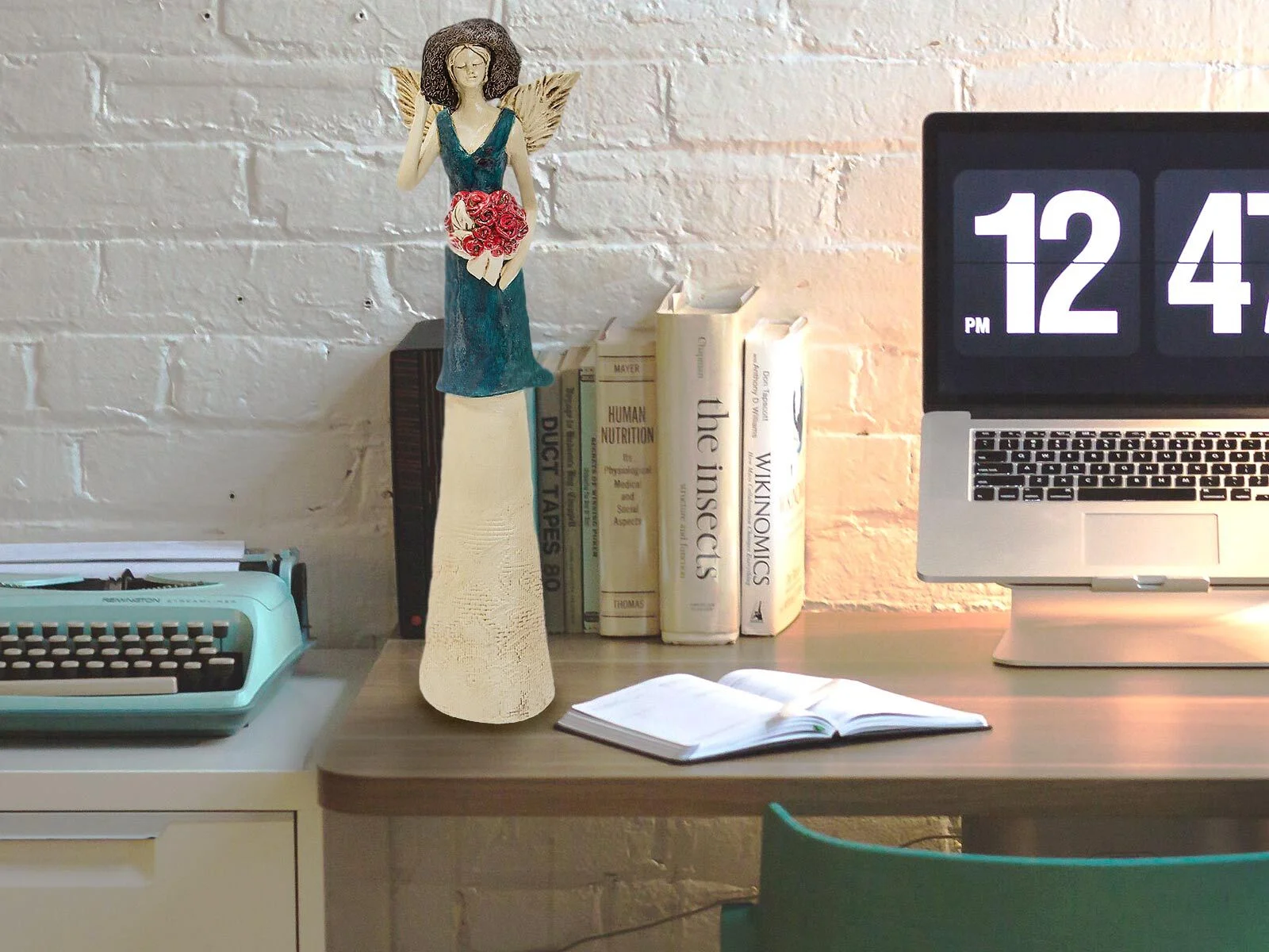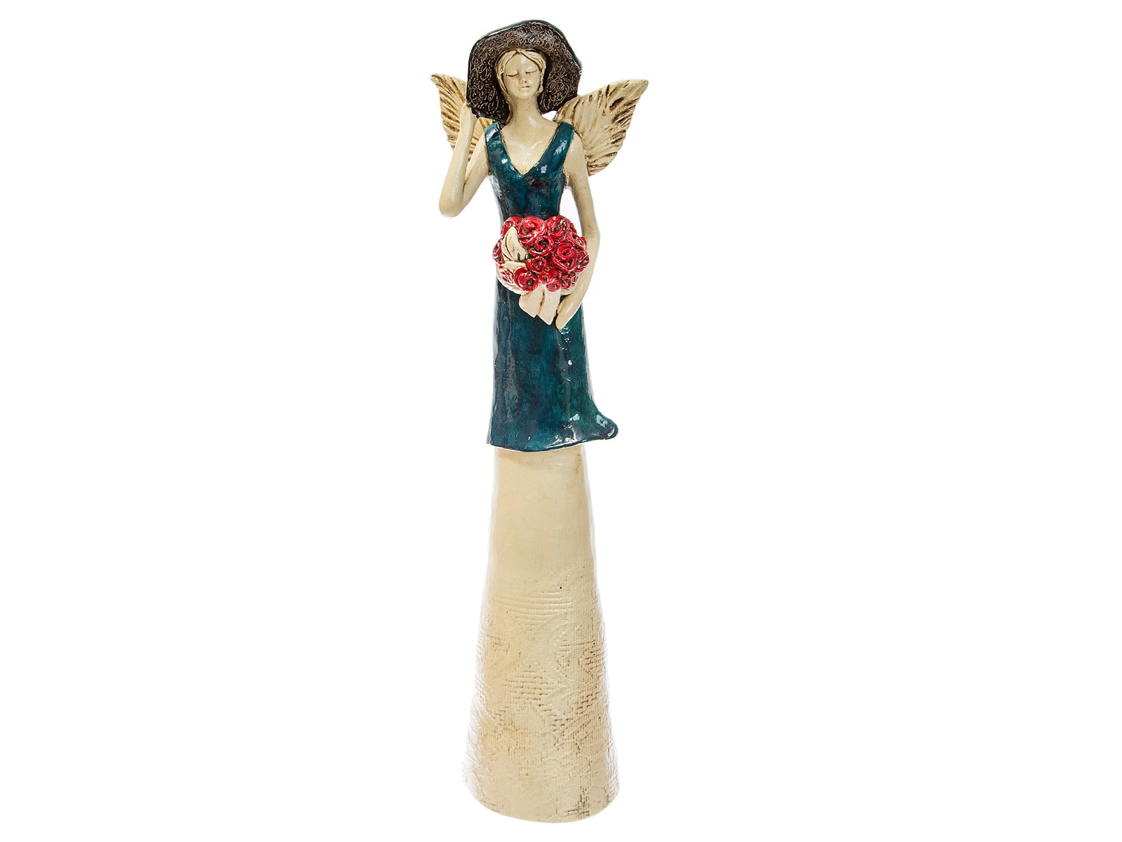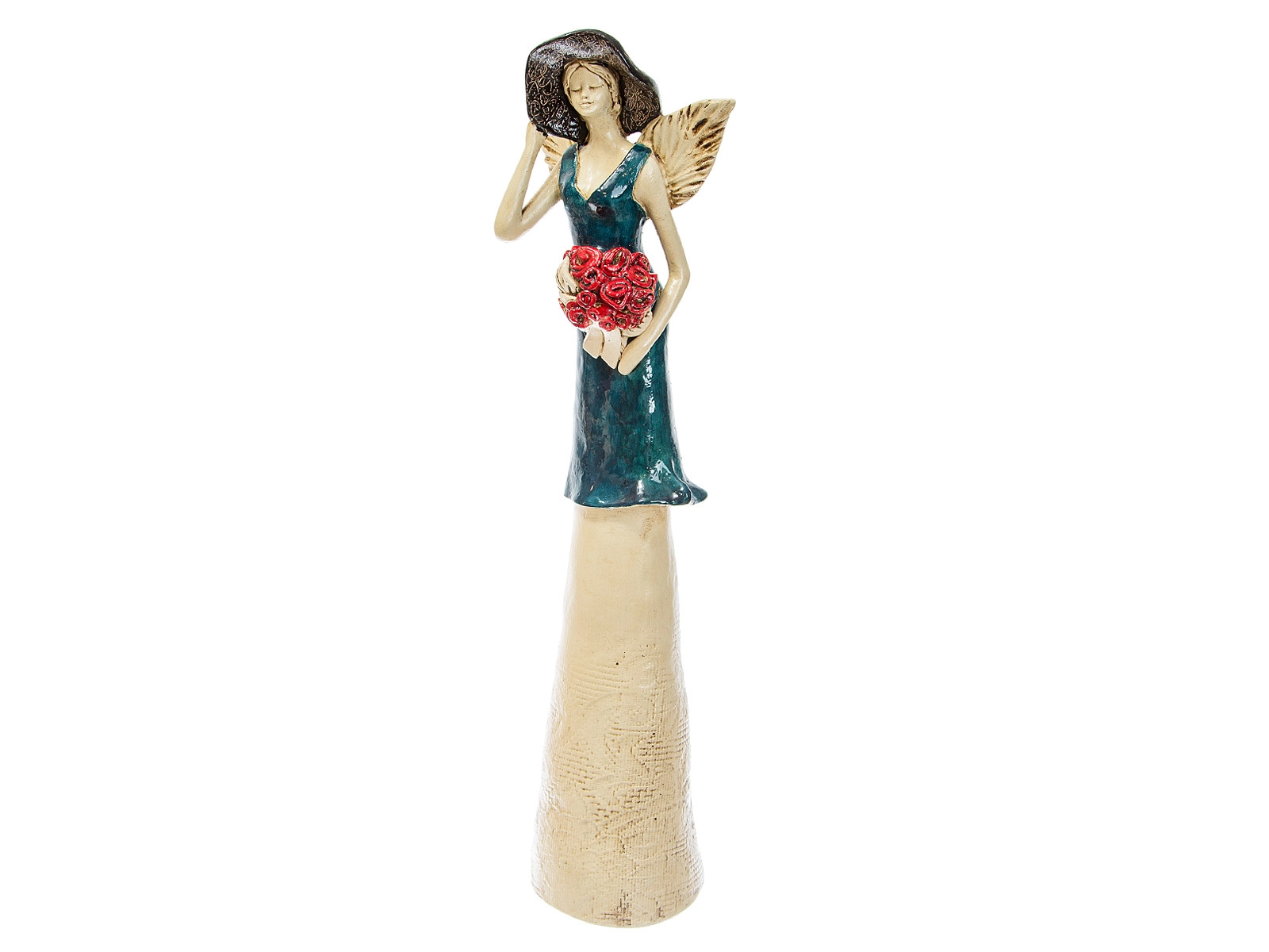 Anioł Chloe to dostojna, uskrzydlona kobieta. Na głowie ma kapelusz, na sobie piękną, długą suknię. Może się pochwalić niesamowitą gamą barw - zaczynając od niebieskiej sukni, poprzez stonowane beże i brązy, aż po intensywną czerwień kwiatów. Jest wprost idealna na prezent z okazji dnia babci bądź dziadka i inne okazje.