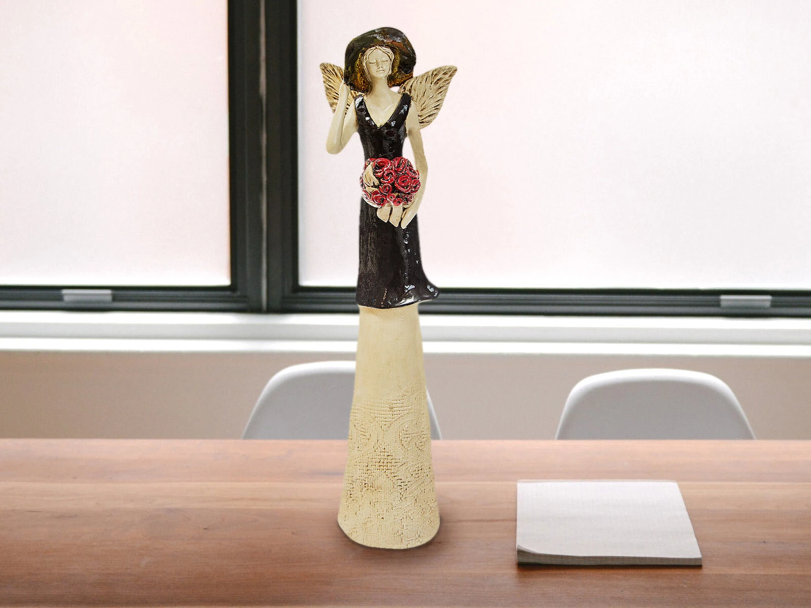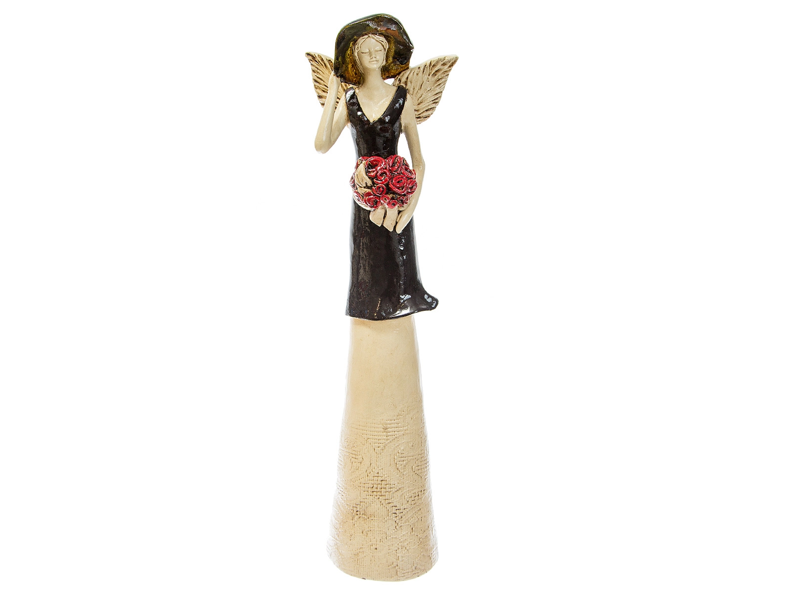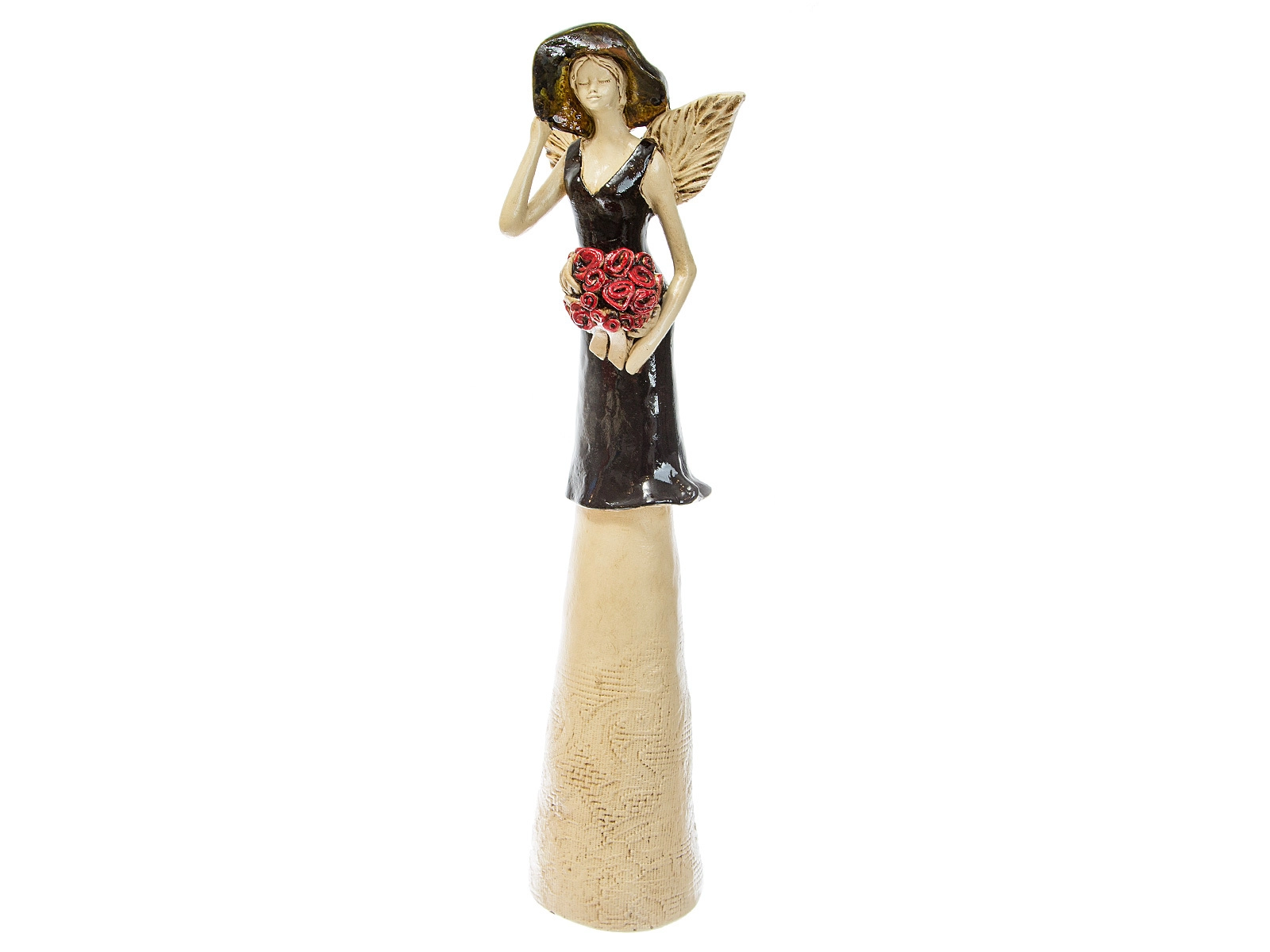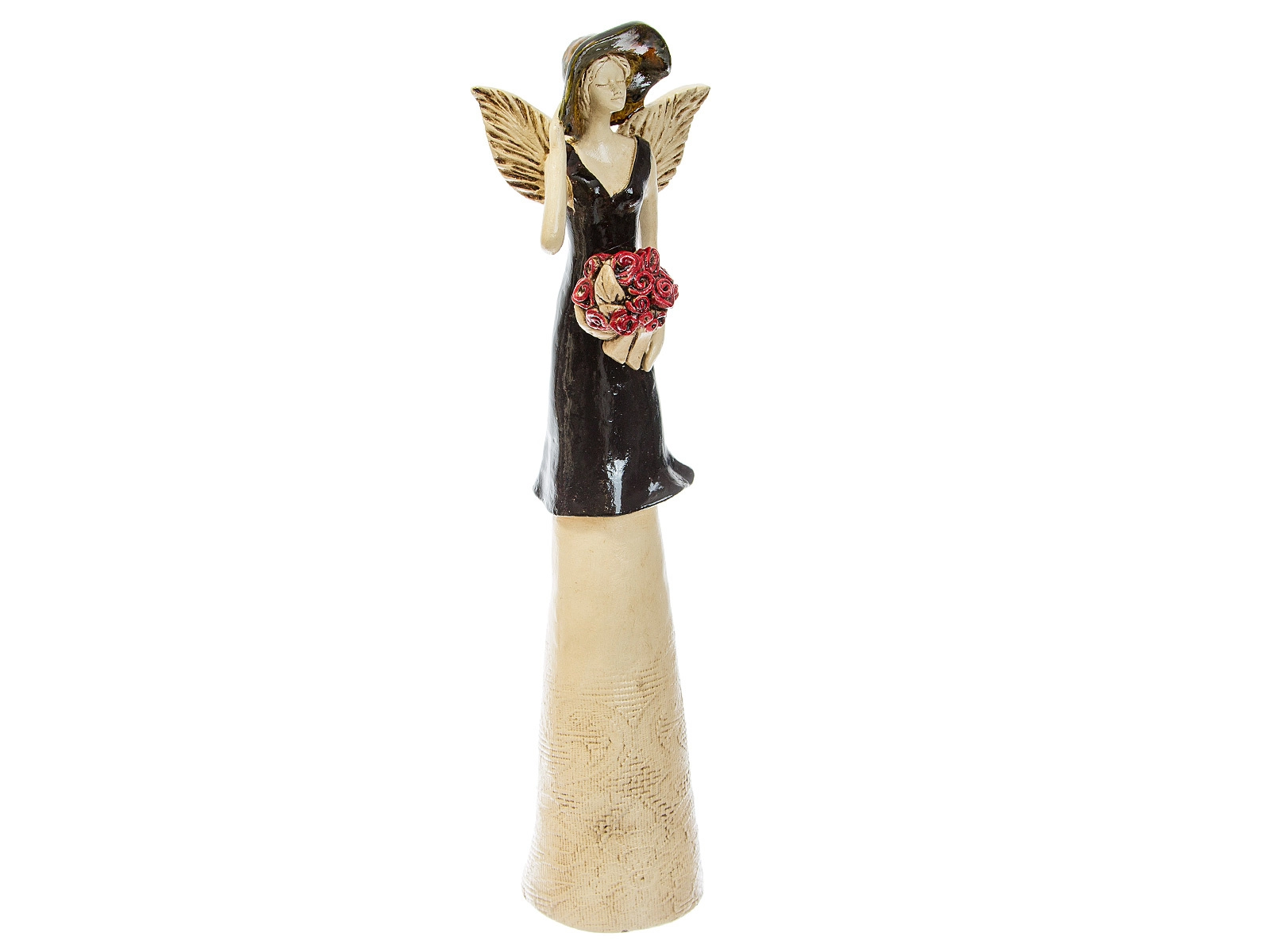 Anioł Chloe to piękna kobieta w brązowej sukience o jasnych włosach. Na głowie ma brązowy kapelusz, a z tyłu małe, beżowe skrzydła skierowane ku górze. W lewej ręce trzyma bukiet z czerwonymi różami, a prawą rękę ma położoną na skraju kapelusza. Figurka jest wykonana z gipsu ręcznej produkcji. Posiada pozycję stojącą, dzięki czemu można ją postawić w domu jak i na zewnątrz. Może być jako prezent dla kobiety lub Panny Młodej.