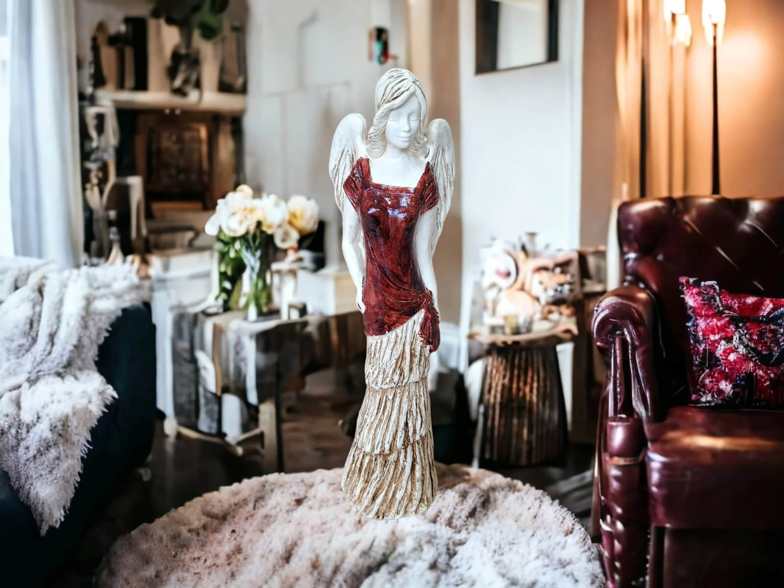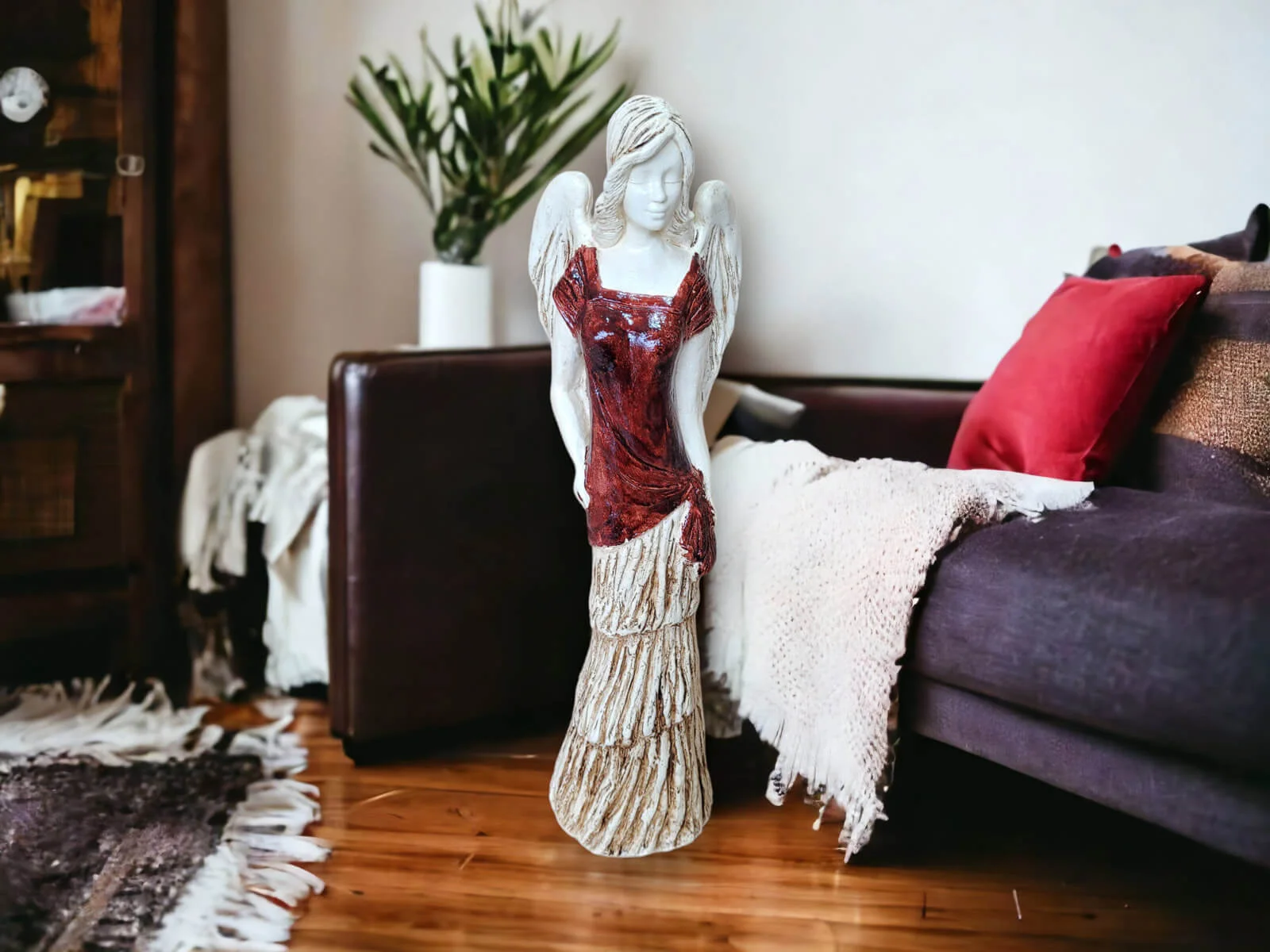 Największy i najbardziej okazały z aniołów. Victoria to prawdziwe uosobienie piękna, siły i dostojności. Jej 62 cm wysokości sprawia, że jest widoczna nawet w dużym salonie, skutecznie odciągając uwagę od innych dekoracji. Trudno odgadnąć co znajduje się w jej wnętrzu. Jej imię pochodzi z języka łacińskiego i oznacza zwycięstwo. Jest ona imienniczką rzymskiej bogini zwycięstwa i chwały. Z każdej sytuacji wychodzi obronną ręką. Jest pracowita i uparta w dążeniu do postawionych sobie celów. Mocno stąpa po ziemi. Anioł pięknie pozuje eksponując swoją długą, brązowo-beżową suknię. Budzi zachwyt wśród wszystkich gapiów. Świetnie sprawdzi się jako prezent na rocznice ślubu dla kobiet. Może efektywnie zdobić każde wnętrze.