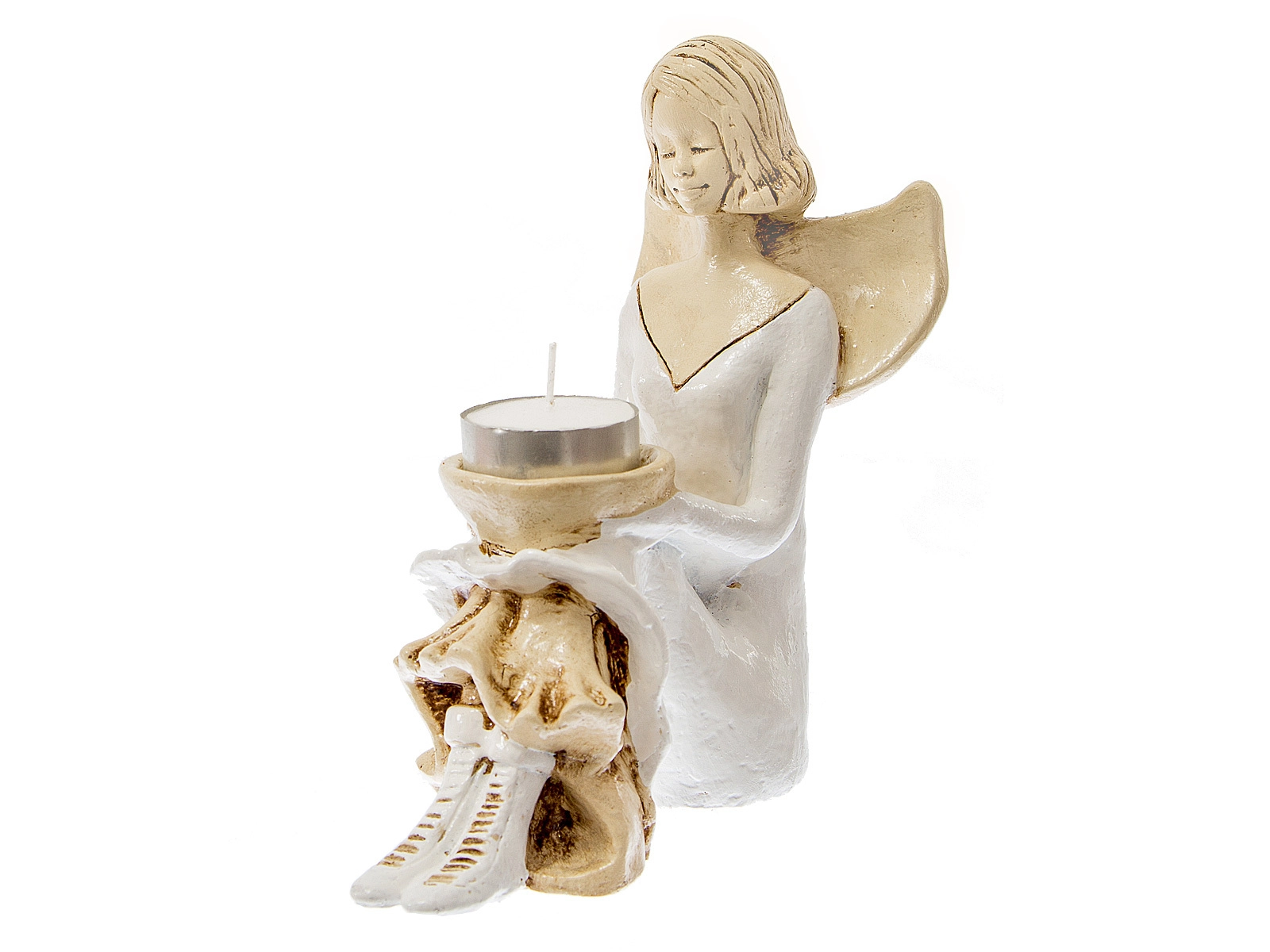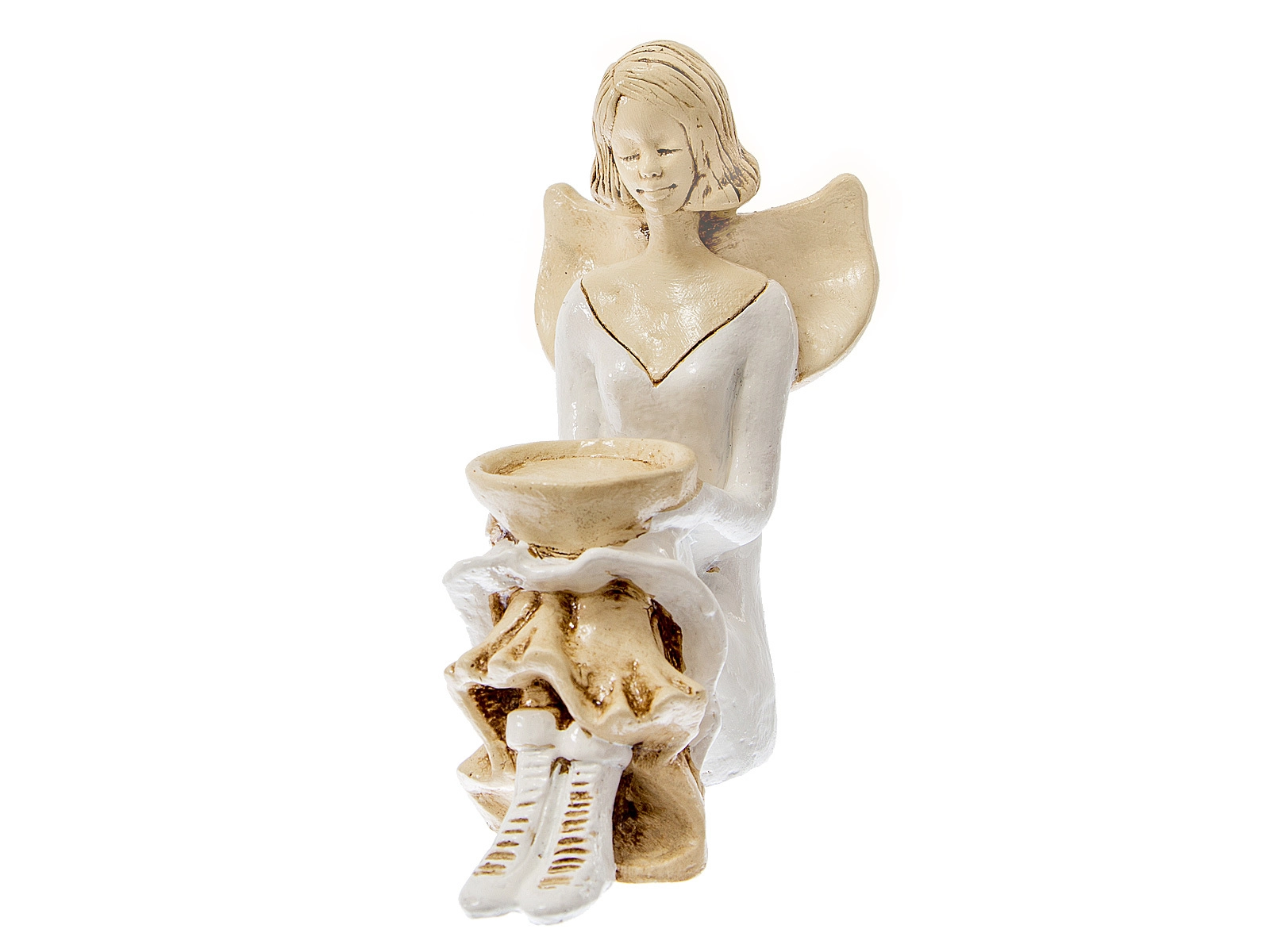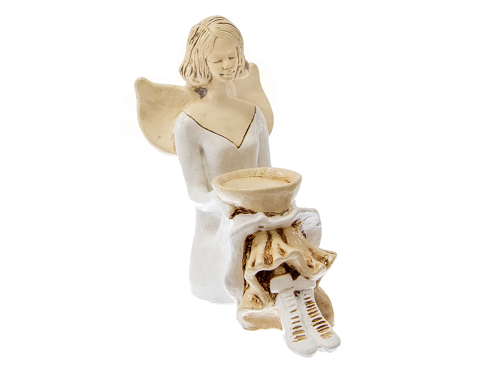 Aniołek Marion jest wykonany z gipsu ręcznej produkcji. Prezentuje dziewczynkę w białej sukience. Ma ona także białe buciki. Włosy sięgają jej za ucho, a z tyłu na plecach posiada małe skrzydła skierowane ku górze. Jest w pozycji siedzącej, a na kolanach trzyma misę, do której można włożyć świeczkę. Dekoracja należy do rodzaju dekoracji stojących, dzięki czemu można ją gdziekolwiek postawić. Idealnie nadaje się jako ozdoba wnętrza lub na prezent np. dla małej dziewczynki, na I Komunię Świętą lub na ślub.