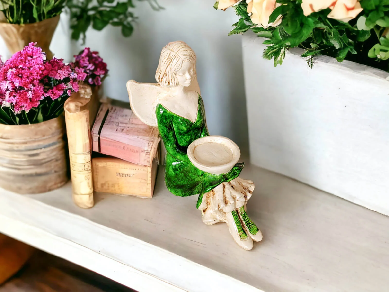 Aniołek Marion to ręcznie wykonana figurka. Marion jest kobietą pracowitą. Chce być najlepszą w swoim fachu jakim jest garncarstwo. Dzięki swojej pracy dąży do pomnażania zysków. Jest ubrana w zieloną suknię. Pięknie eksponuje swoje skromne skrzydła. Idealna na prezent dla mamy i babci. Świetnie sprawdzi się w każdym wnętrzu.