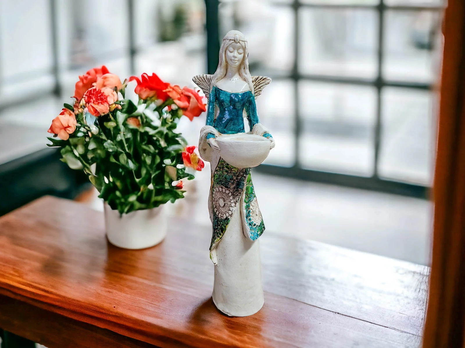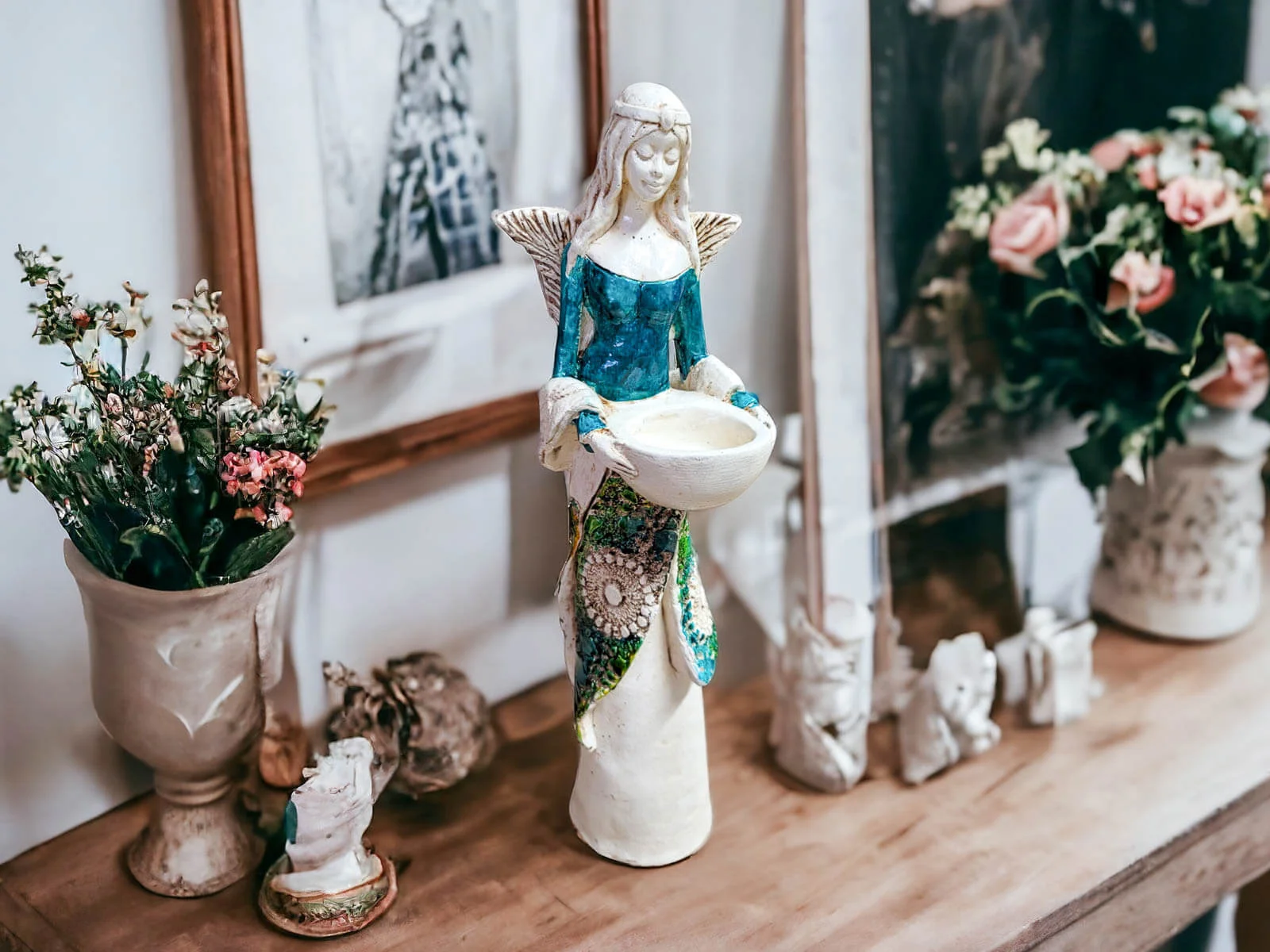 Anioł Florence to ręcznie wykonana figurka. Florence słynie z mądrości. Swoją wiedzę wykorzystuje w lecznictwie. Jest znachorką, służy pomocą wszystkim mieszkańcom w wiosce. Co wieczór wybiera się do lasu po świeże zioła, które zbiera do swojej magicznej misy. Z ziół wykonuje lecznicze maści i lekarstwa. Idealnie nadaje się na prezent dla kobiet. Świetnie sprawdzi się jako ozdoba w każdym wnętrzu.