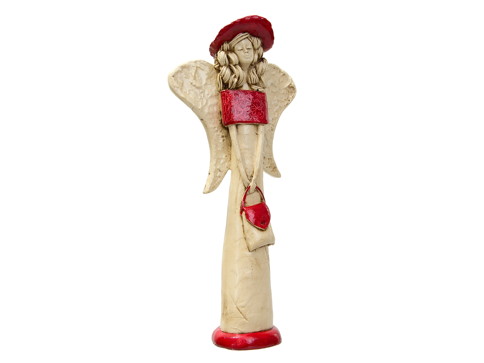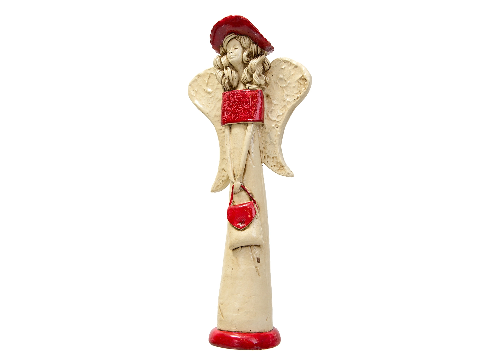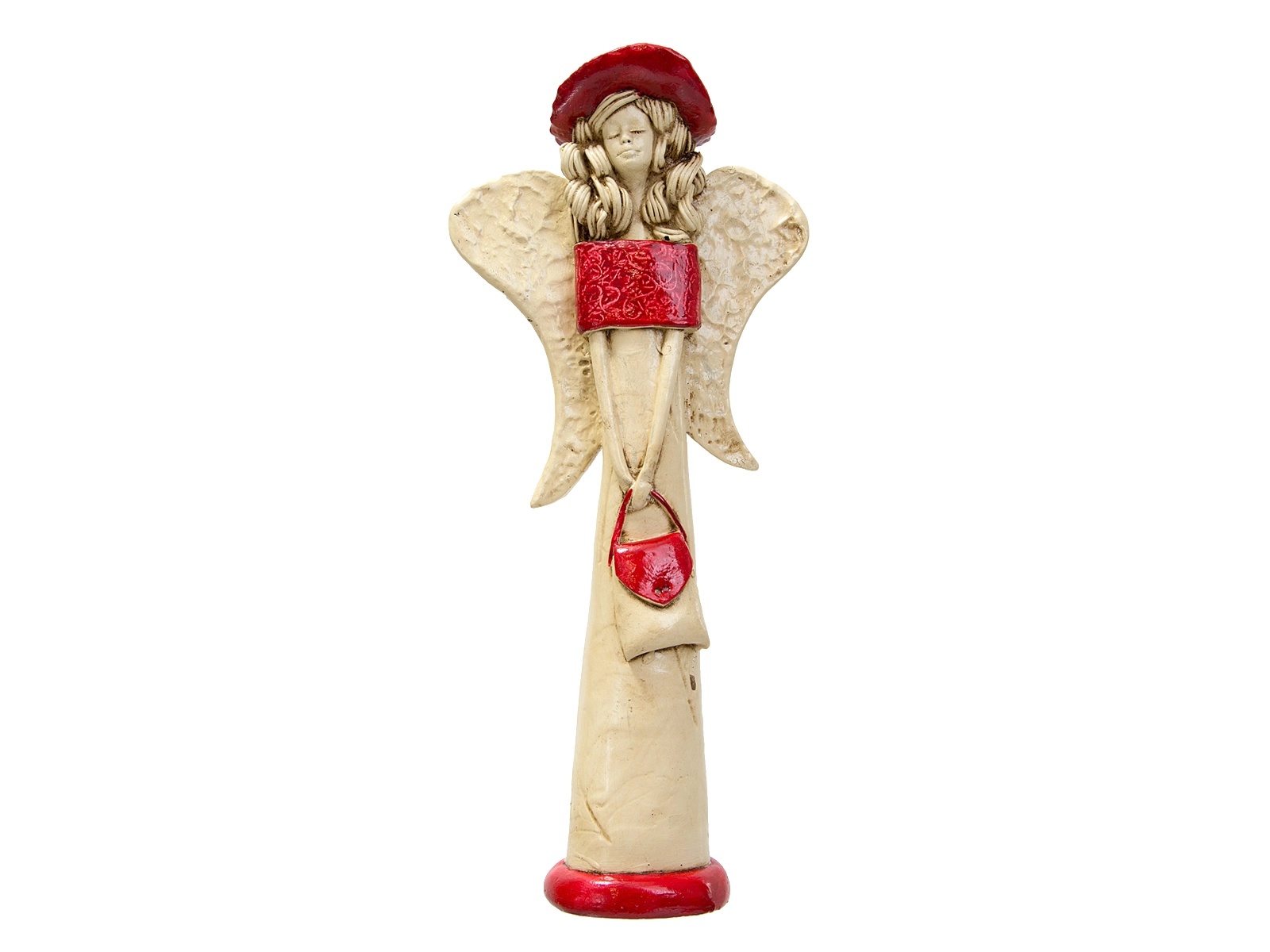 Anioł Coco to ręcznie wykonana figurka w kształcie filigranowej dziewczynki. Ma cudowne rozłożyste skrzydła. Jej beżowy ubiór podkreślają czerwone akcenty. Figurka Coco idealnie nadaje się na prezent dla dziewczynki jako pamiątka komunijna. Anioł może pięknie prezentować się jako ozdoba wnętrz.