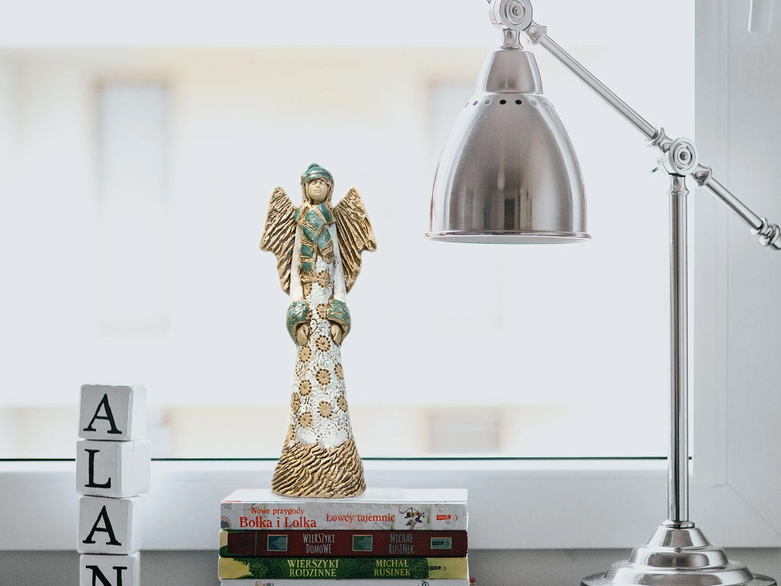 Ona uwielbia zimę. Gdy mróz szczypie w nos, gdy śnieg i lód. Abdiel ubiera swój ciepły wełniany płaszcz, szal, czapkę i idzie na spacer wśród ośnieżonych pustych dróg i pól. Potem zasiada w bujanym fotelu z gorącą owocową herbatą z odrobiną rumu i szydełkuje albo robi na drutach. A klientek ma mnóstwo w tym czasie. Dzierga wszystko od pledów przez swetry po rękawiczki. Słucha jazzu, ogląda filmy z Fred’em Astair’em. Anioł Abdiel ma bardzo gorące serce, więc nawet w bardzo zimną zimę ogrzeje każde miejsce. Nie obiecujemy, że odkręci grzejnik, albo rozpali w kominku, ale pięknie będzie się prezentować nawet na lodowatym parapecie. Przypomni o zaległych rodzinnych odwiedzinach i zmniejszy tęsknotę za nimi. Swoją przytulnością roztopi każde, nawet te zamrożone relacje.