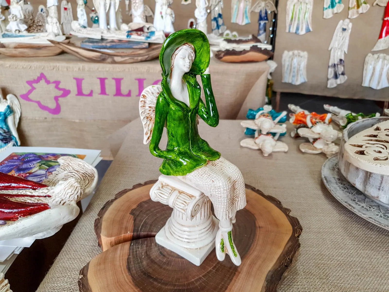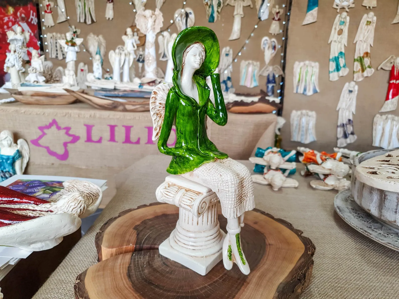 Anioł sprzedawany jest bez podstawki widocznej na zdjęciach.
