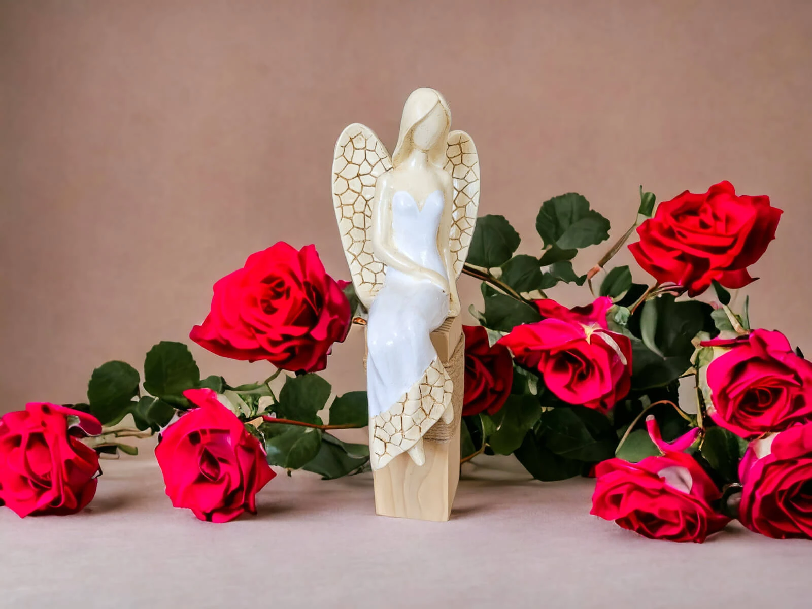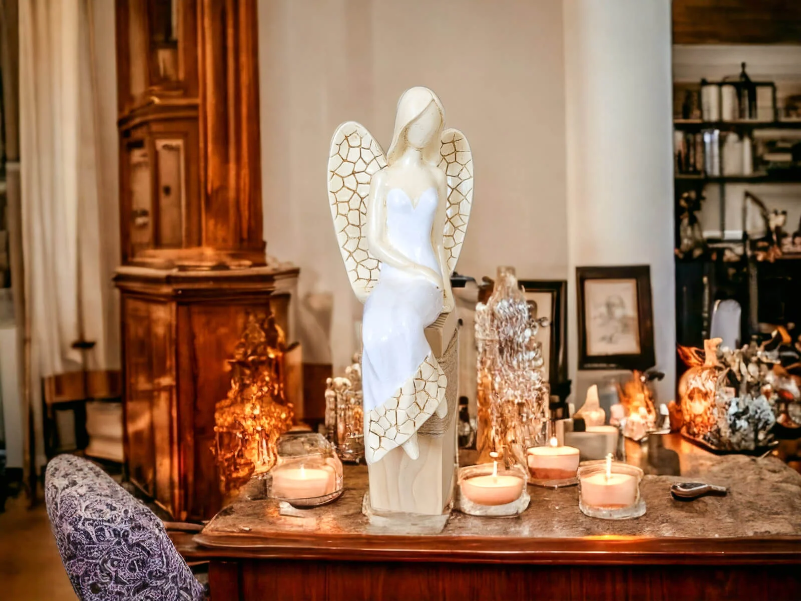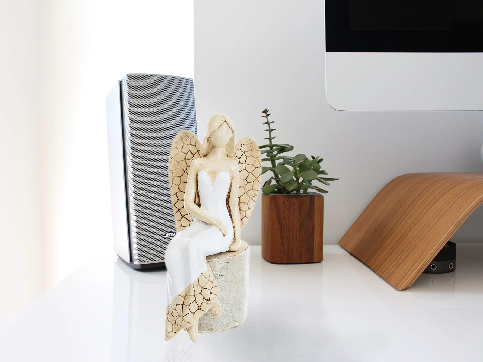 Anioł Emily - biały siedzący - 22 x 9 cm figurka dekoracyjna gipsowa +