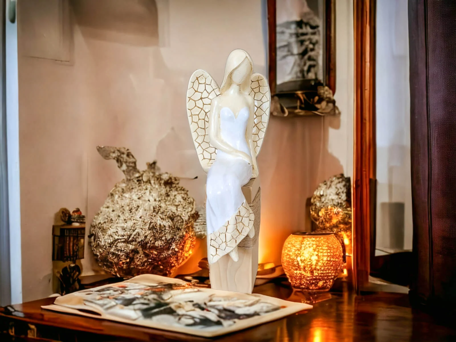 Anioł Emily - biały siedzący - 22 x 9 cm figurka dekoracyjna gipsowa