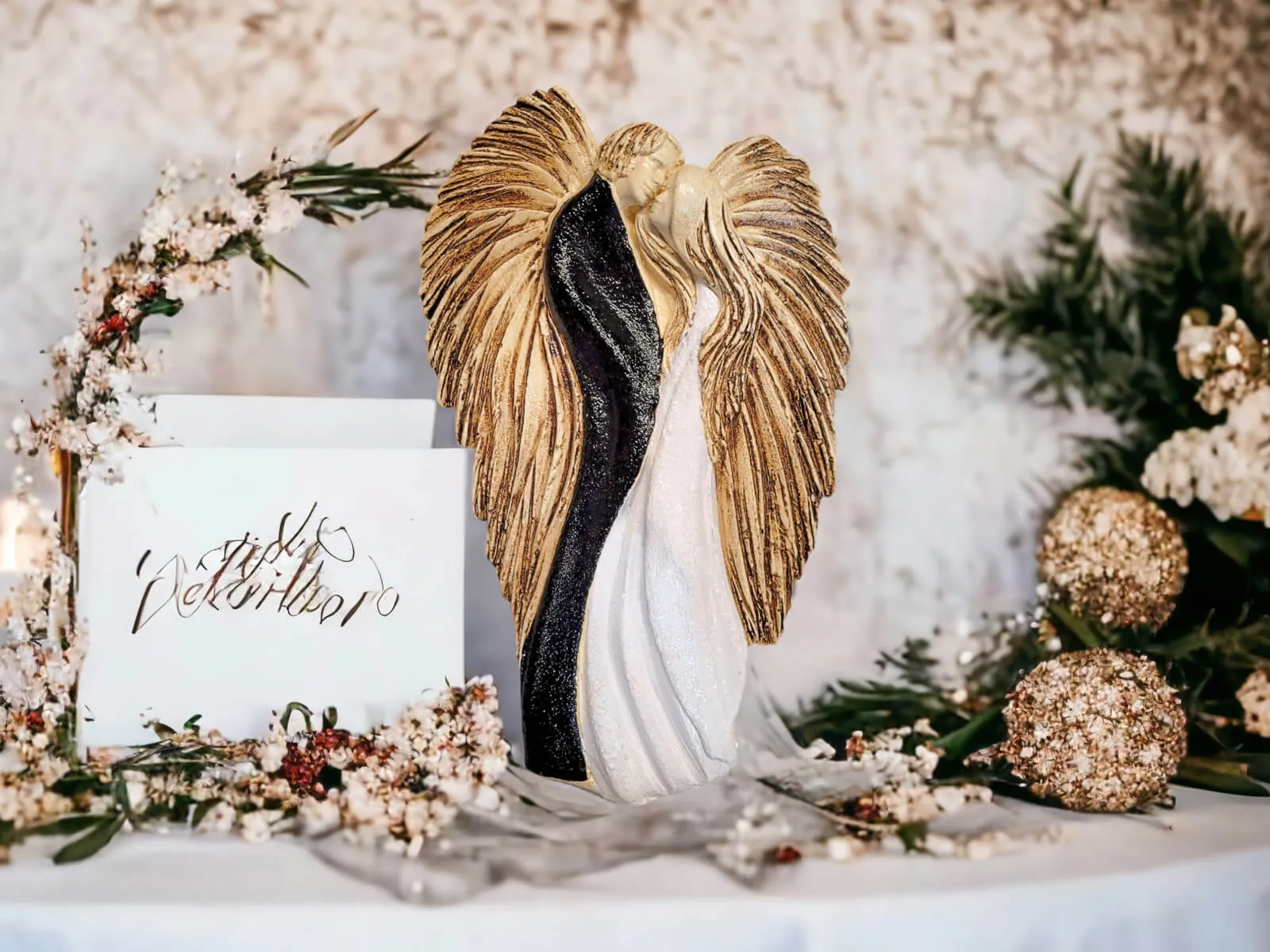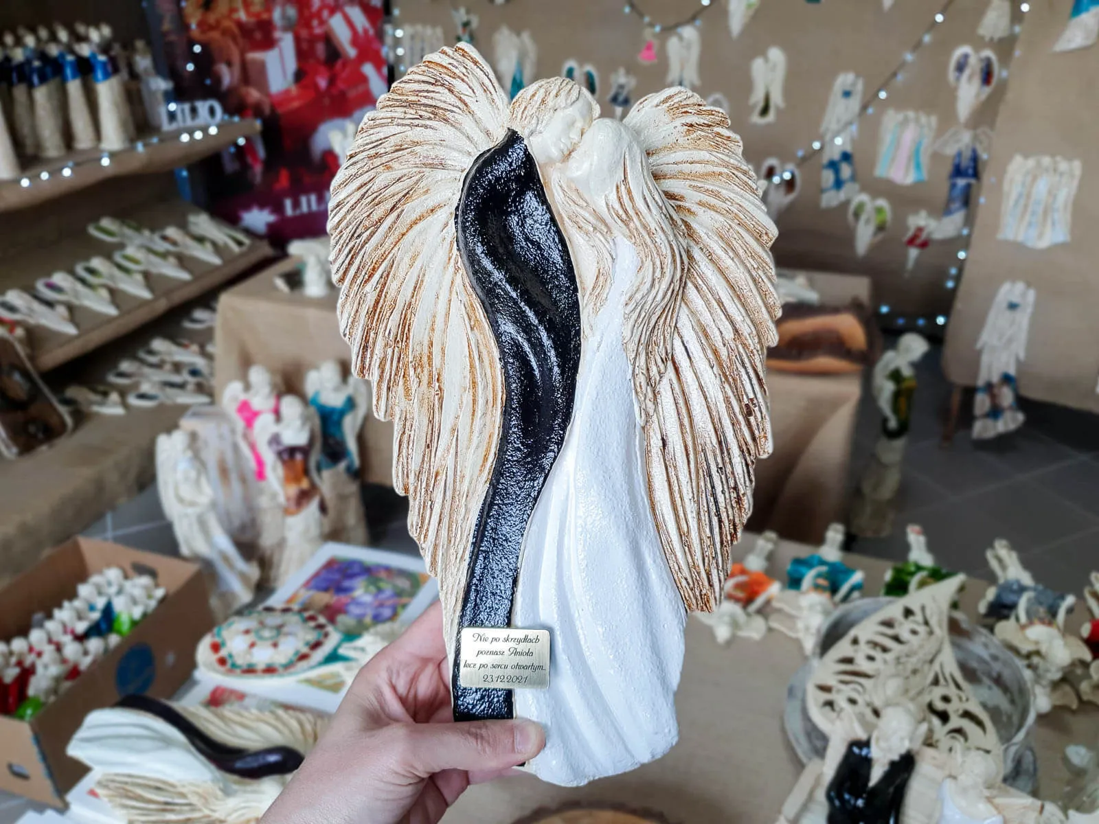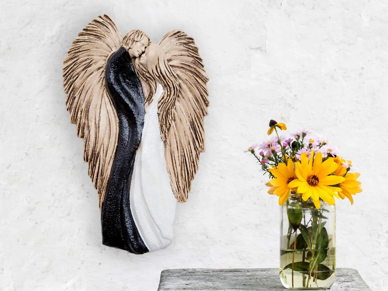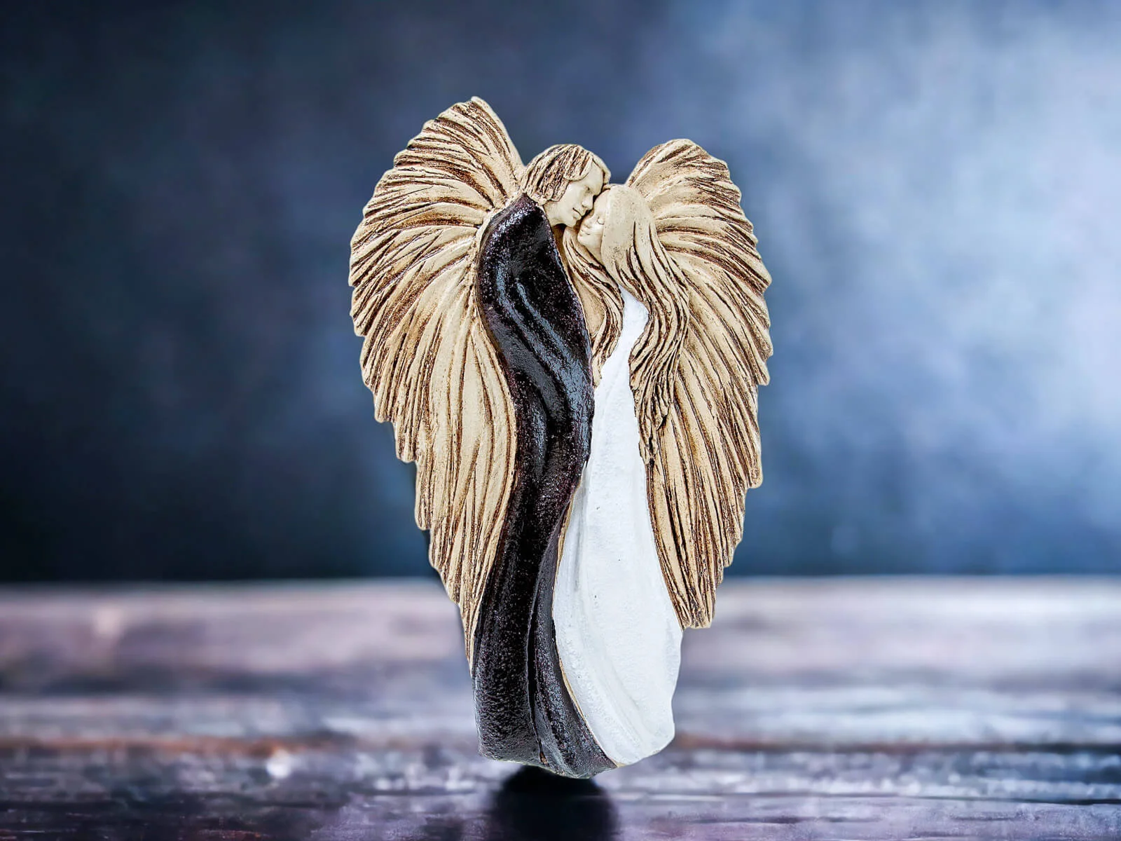 Anioły zostały starannie wykonane z gipsu, a następnie ręcznie malowane, co nadaje im niepowtarzalny charakter. Ich połączenie symbolizuje jedność, równowagę i wzajemne dopełnianie się - idealny przekaz dla zakochanych par.