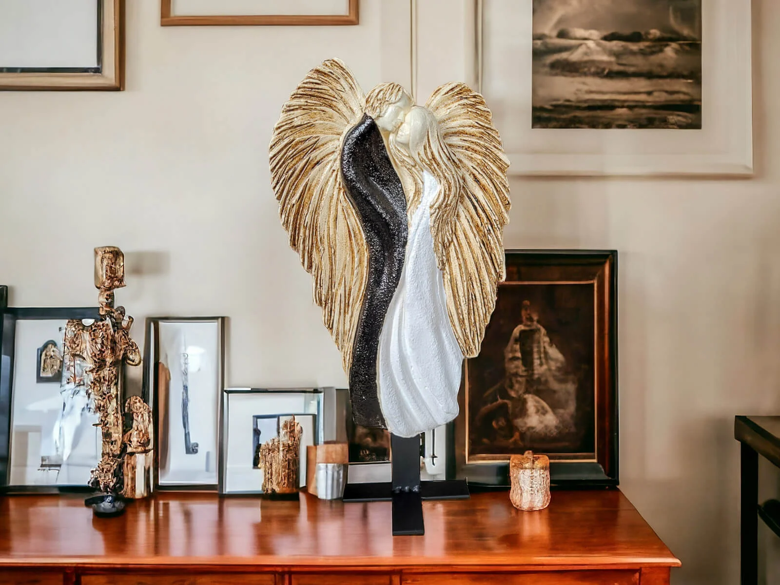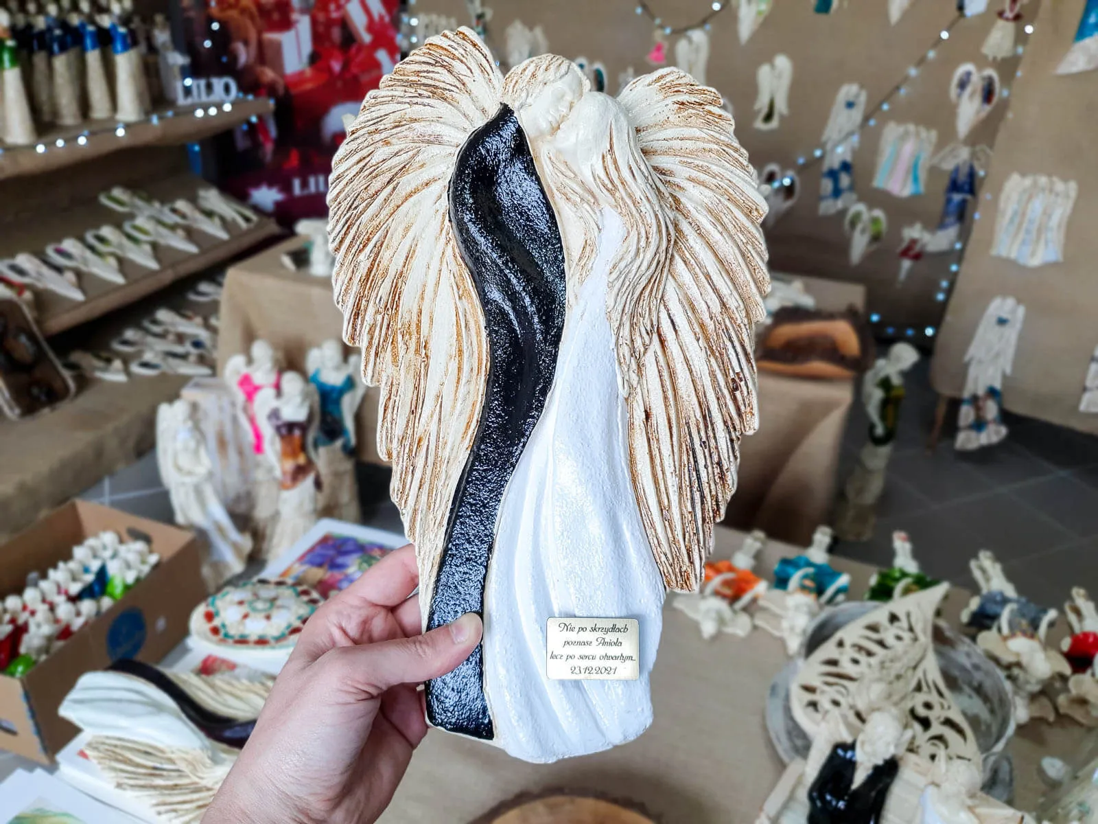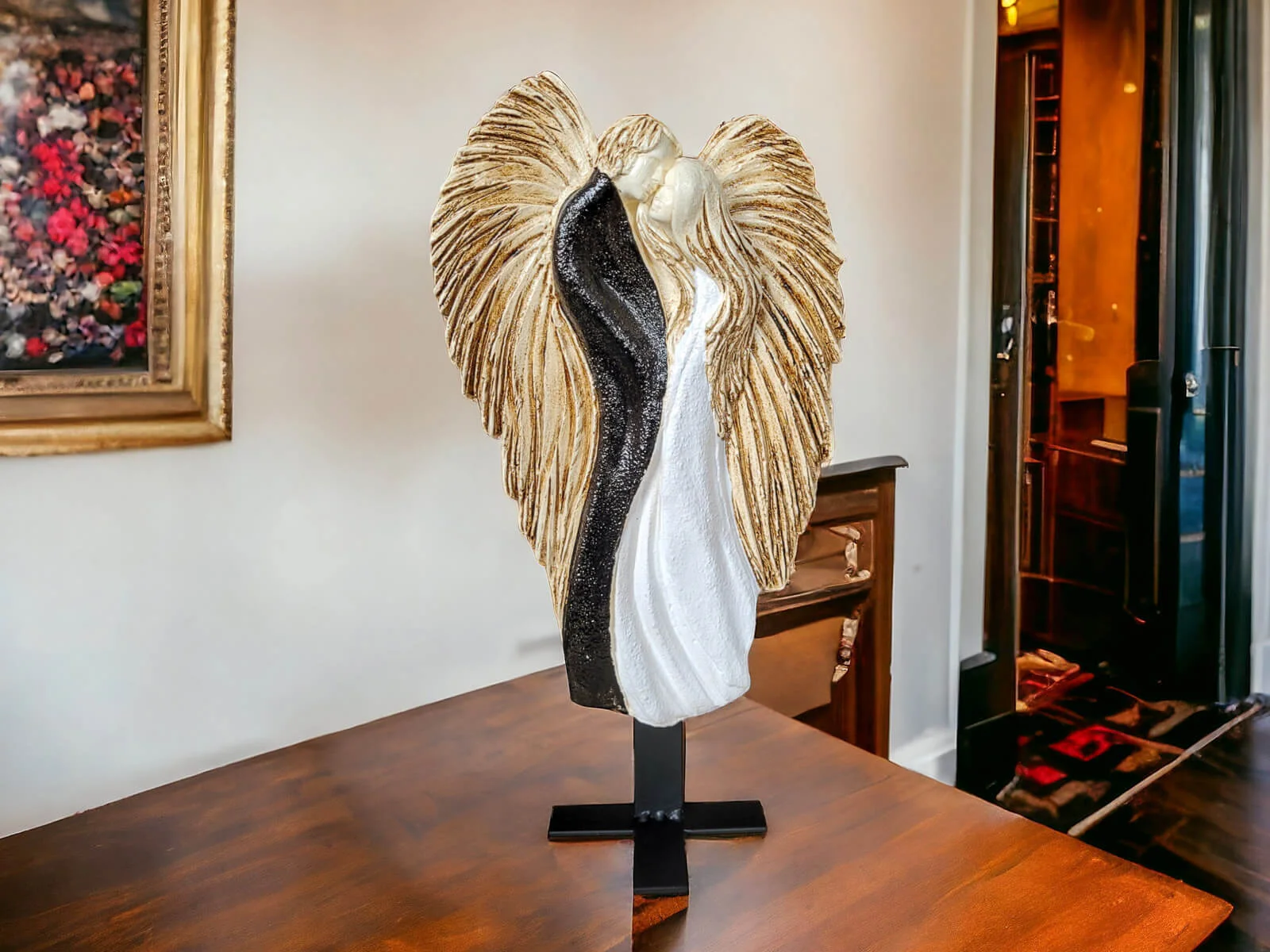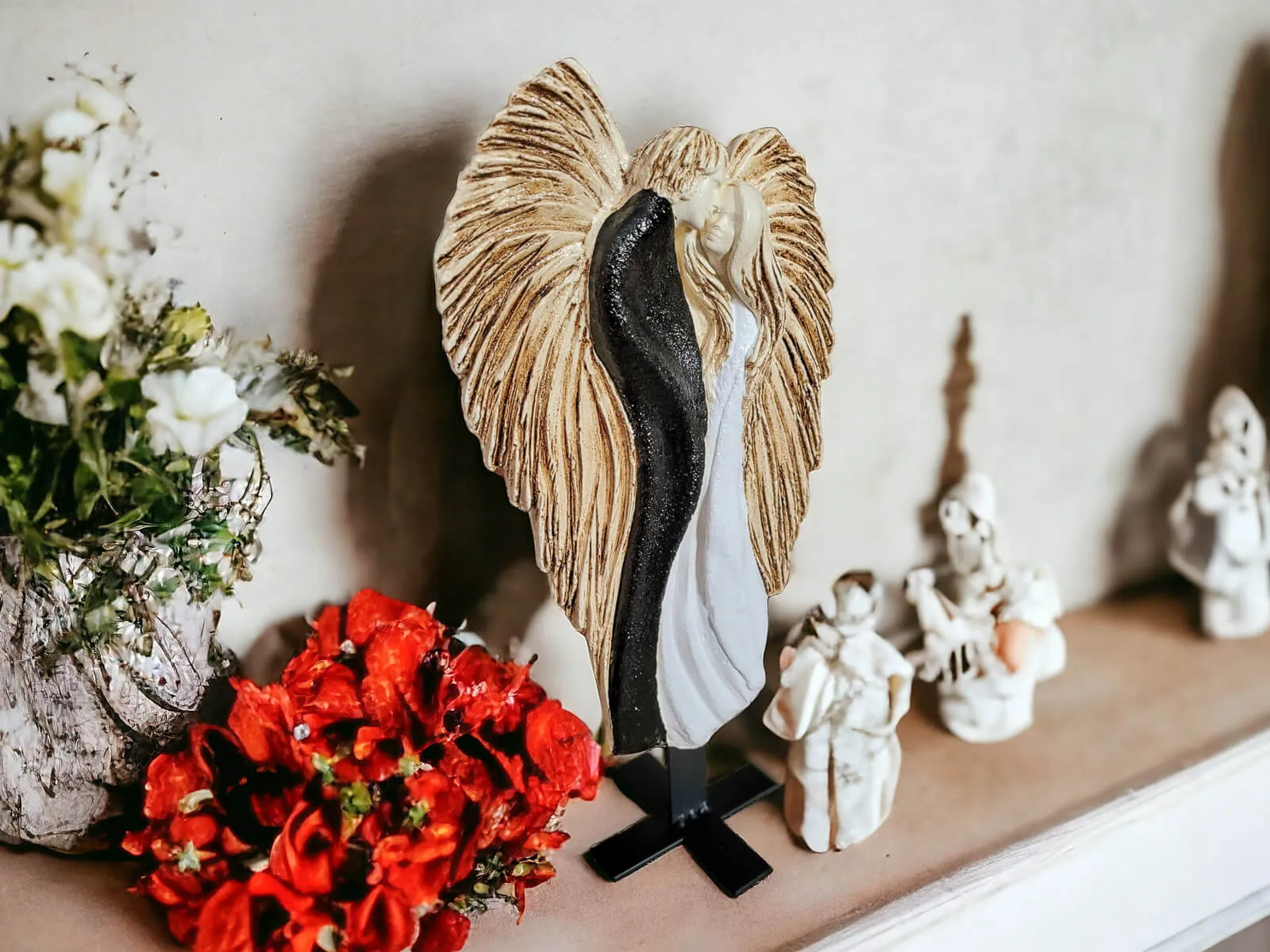 Anioły zostały starannie wykonane z gipsu, a następnie ręcznie malowane, co nadaje im niepowtarzalny charakter. Ich połączenie symbolizuje jedność, równowagę i wzajemne dopełnianie się - idealny przekaz dla zakochanych par.