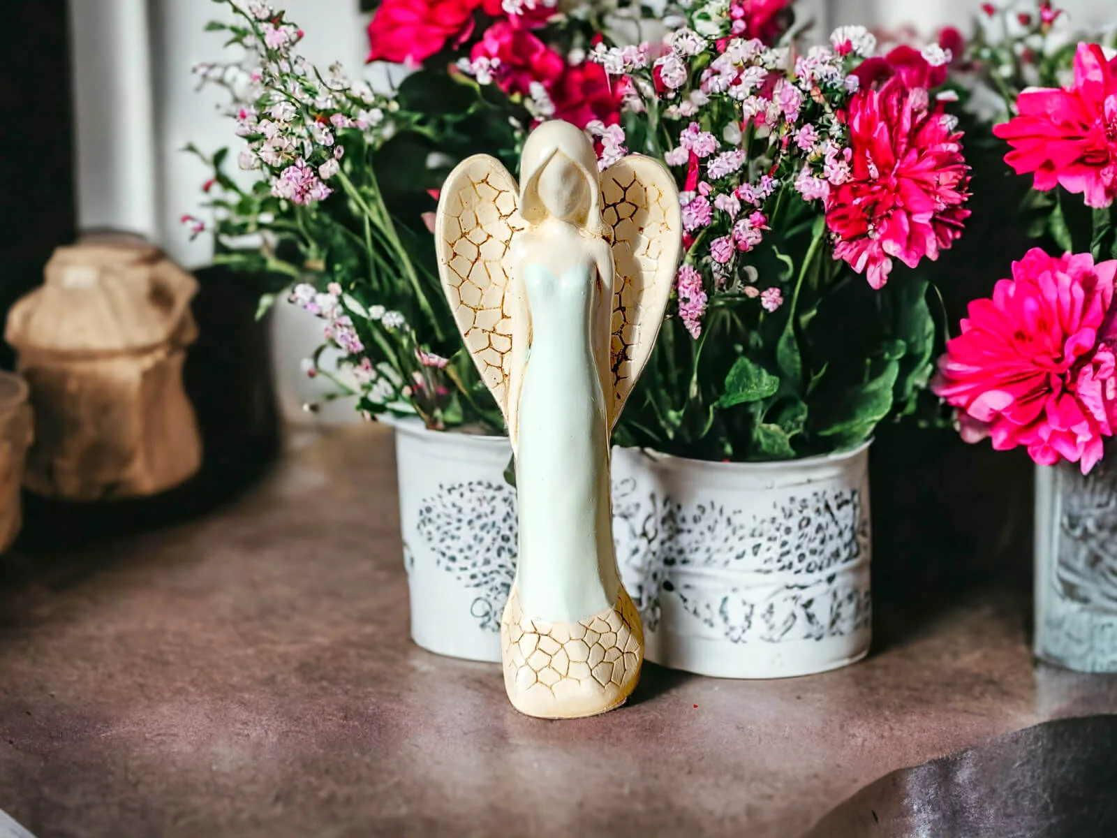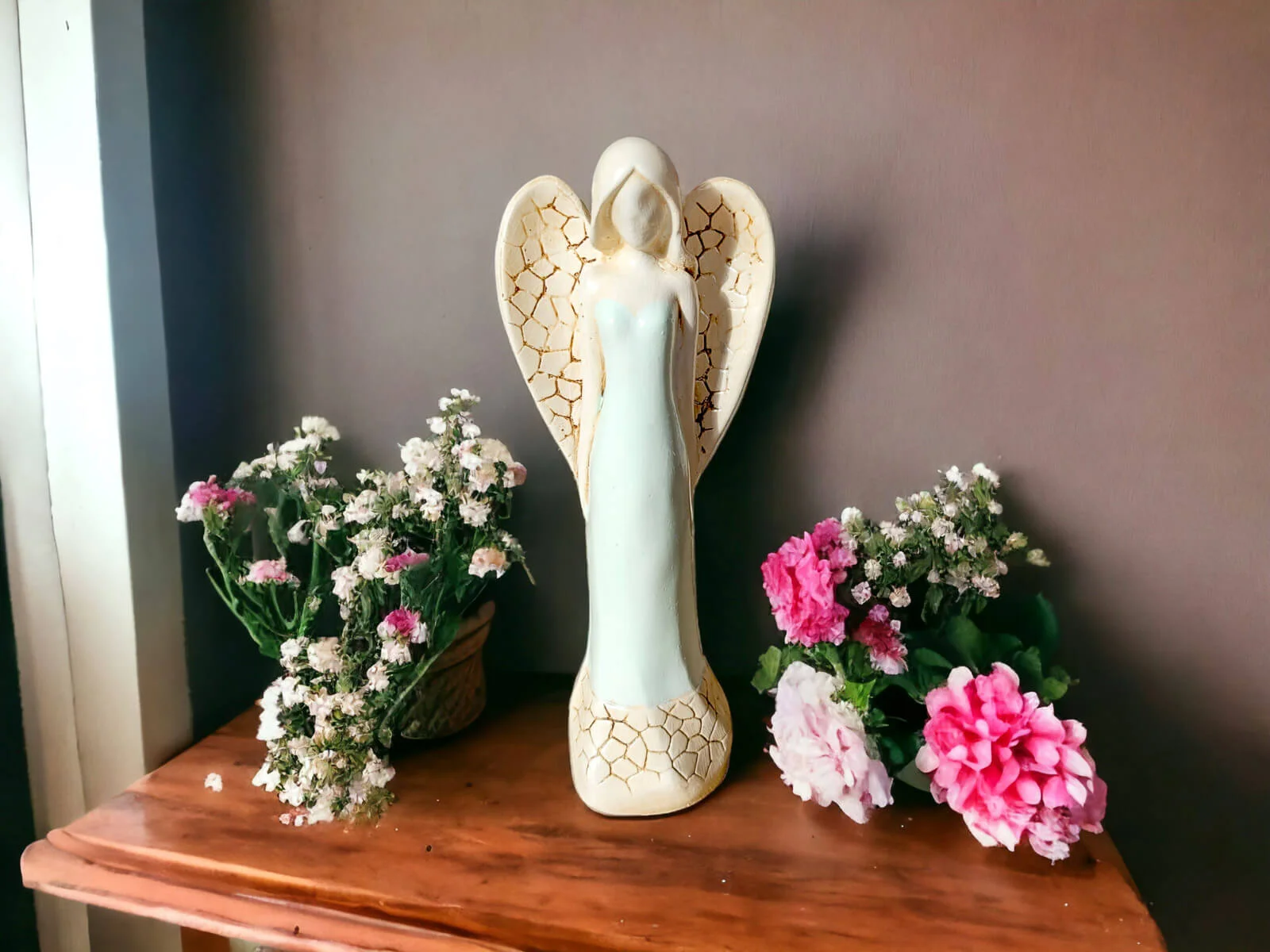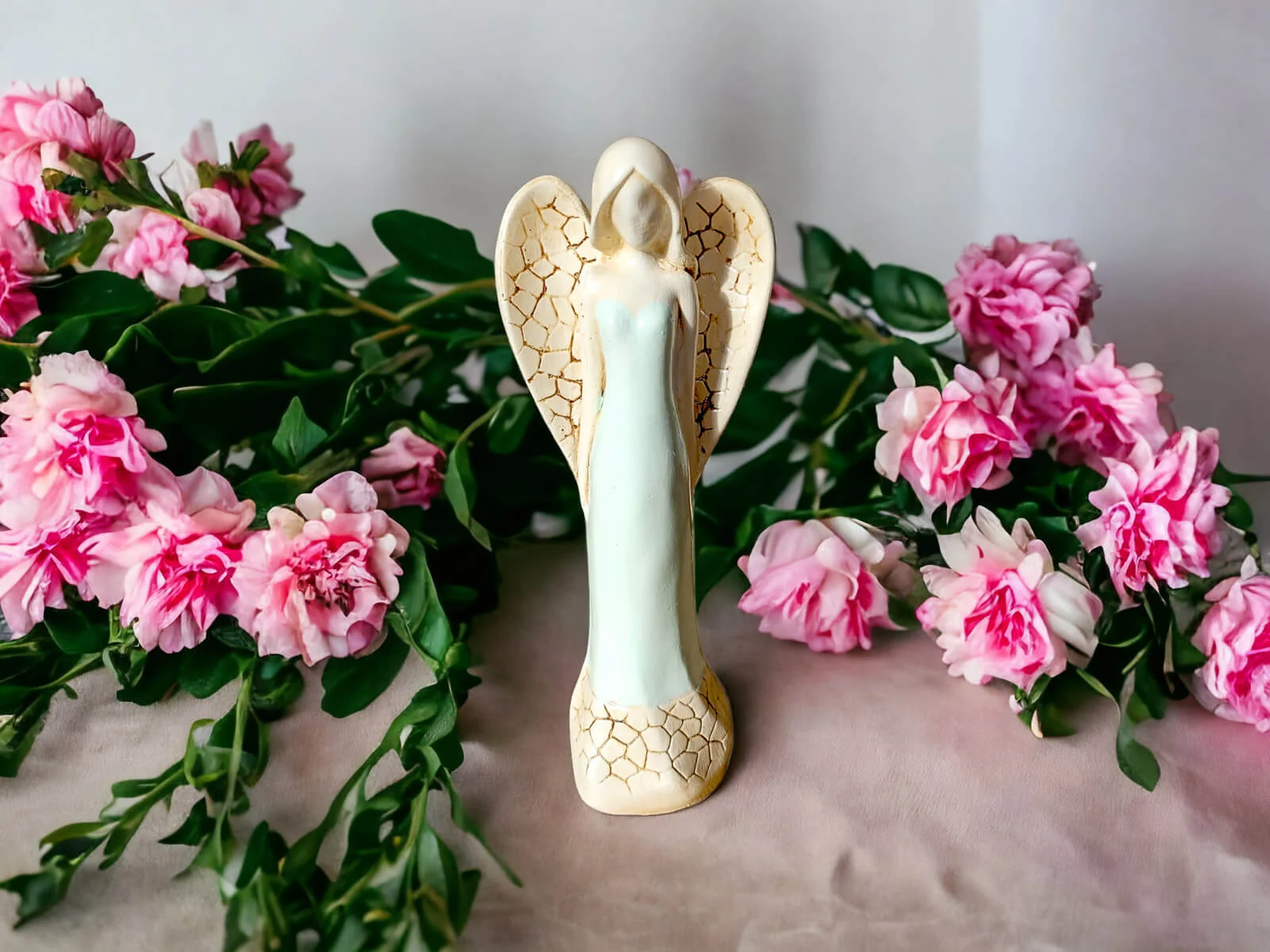 Anioł Emily to ręcznie wykonana figurka. Emily jest młodą, delikatną kobietą. Jest ubrana w długą, miętową suknie. Przygotowuje się do ceremonii ślubnej. Czeka na swojego księcia z bajki. Ma piękne, duże skrzydła. Ułożone są w kształcie serca. Robi piorunujące wrażenie na gościach weselnych, zachwyca swoją urodą wszystkich. Nadaje się na prezent dla kobiet. Pięknie będzie zdobić domowe wnętrze.