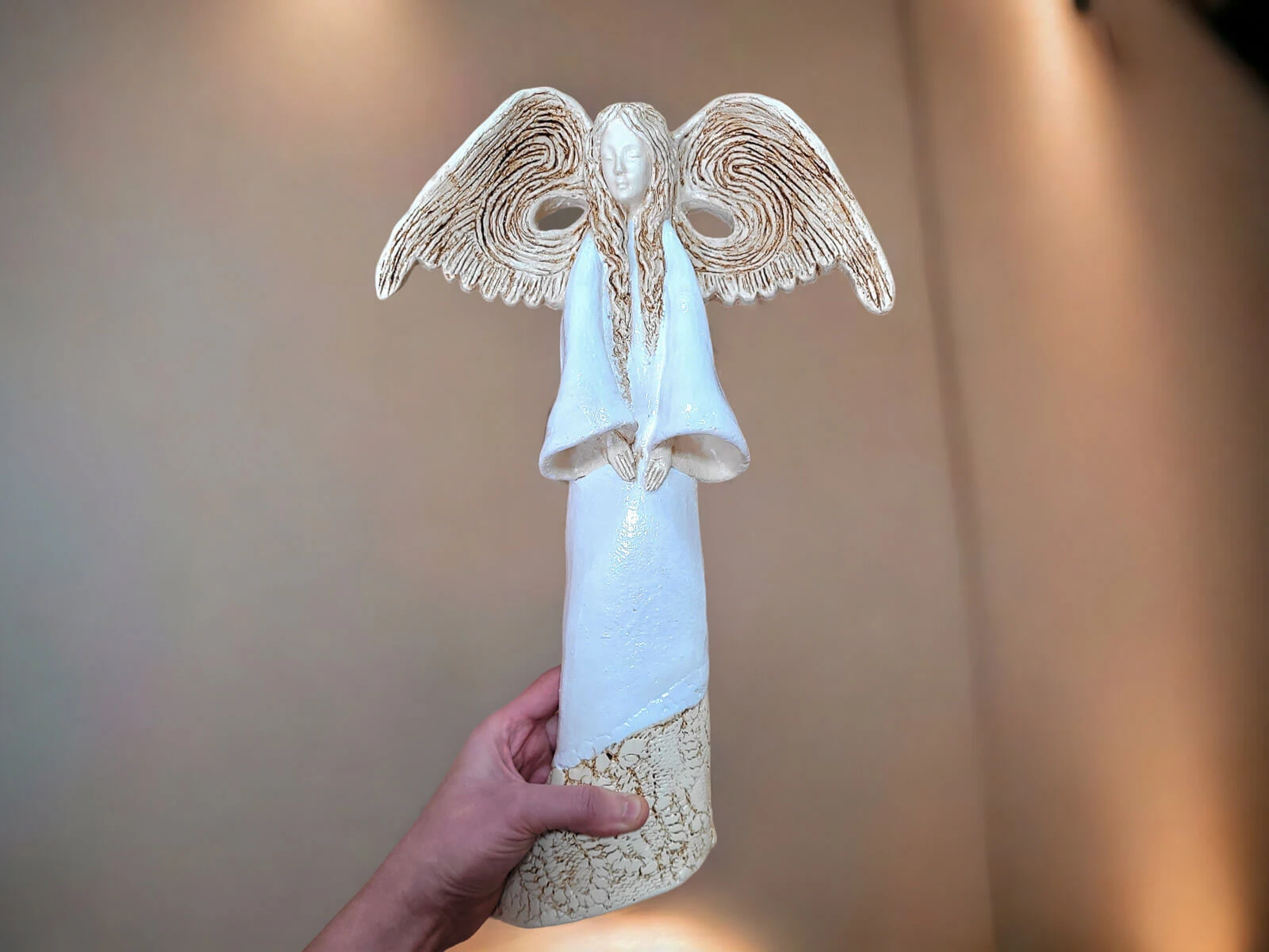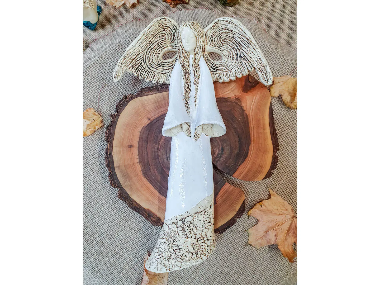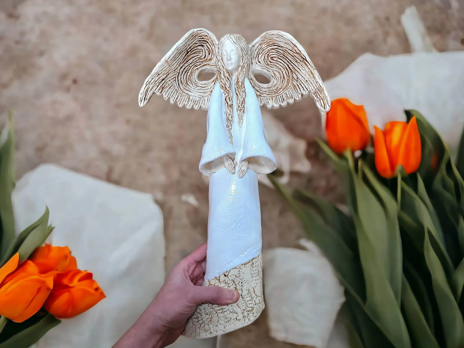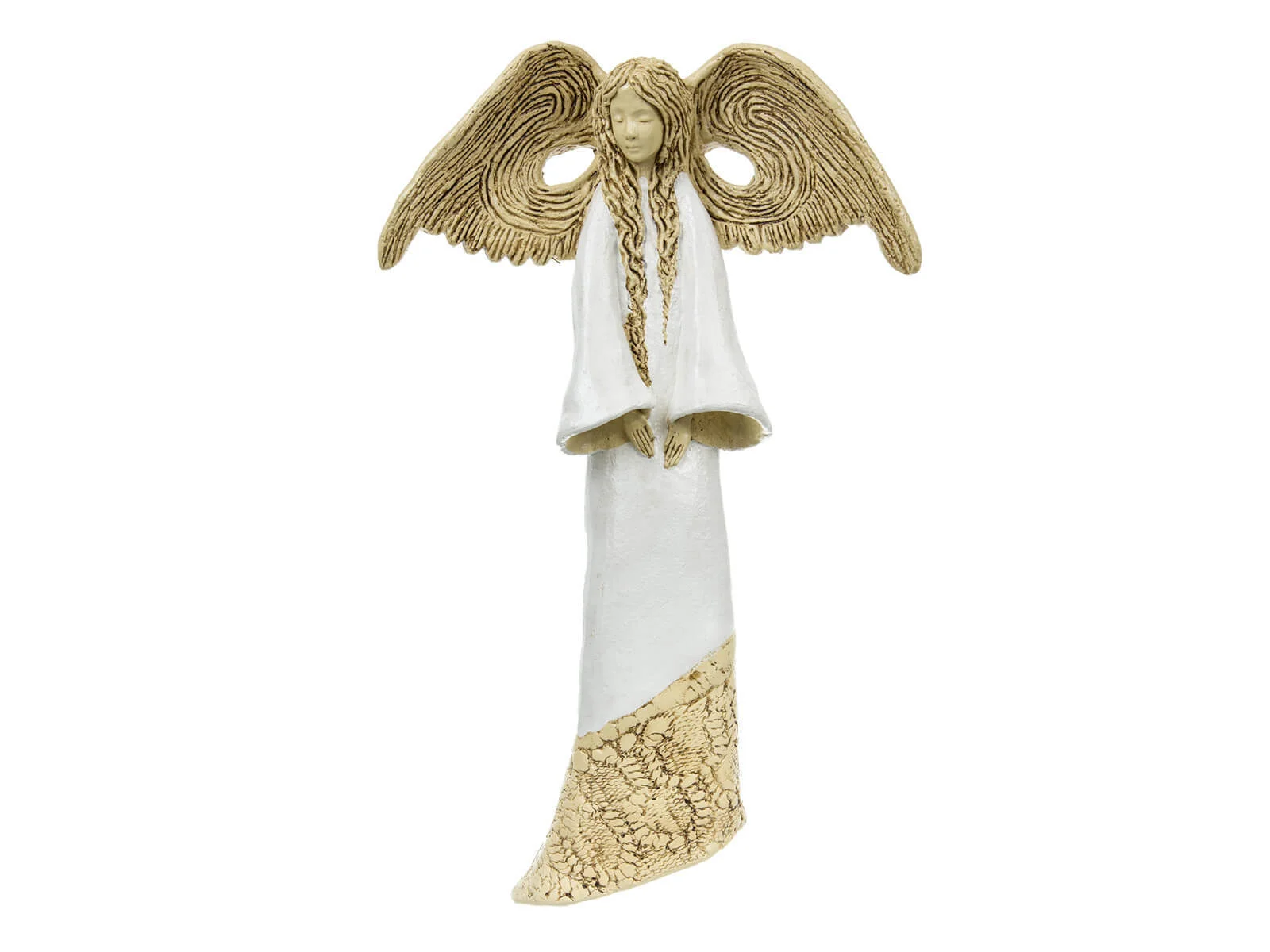 Osoby o imieniu Clara odznaczają się sympatycznym sposobem bycia, ale też dużym temperamentem. Taki właśnie jest biały Anioł Clara - ciekawość życia nie pozwala jej długo usiedzieć na miejscu. Pragnie być obecna wszędzie, umożliwiają jej to duże skrzydła. Clara jest również bardzo uczuciowa. Pragnie sympatii i potrafi ją odwzajemnić. Figurka będzie się pięknie prezentować jako element wystroju, ale również może być podarowana w prezencie na urodziny, rocznicę ślubu, I Komunię czy chrzciny.