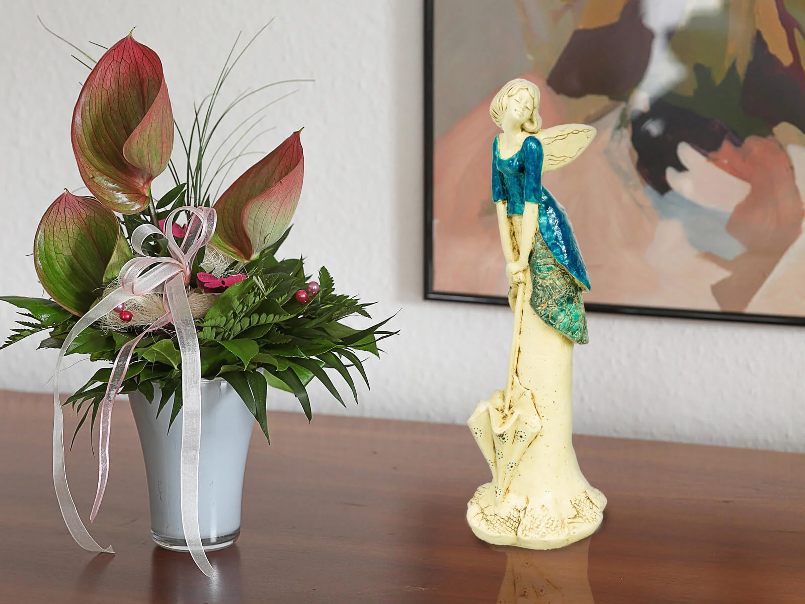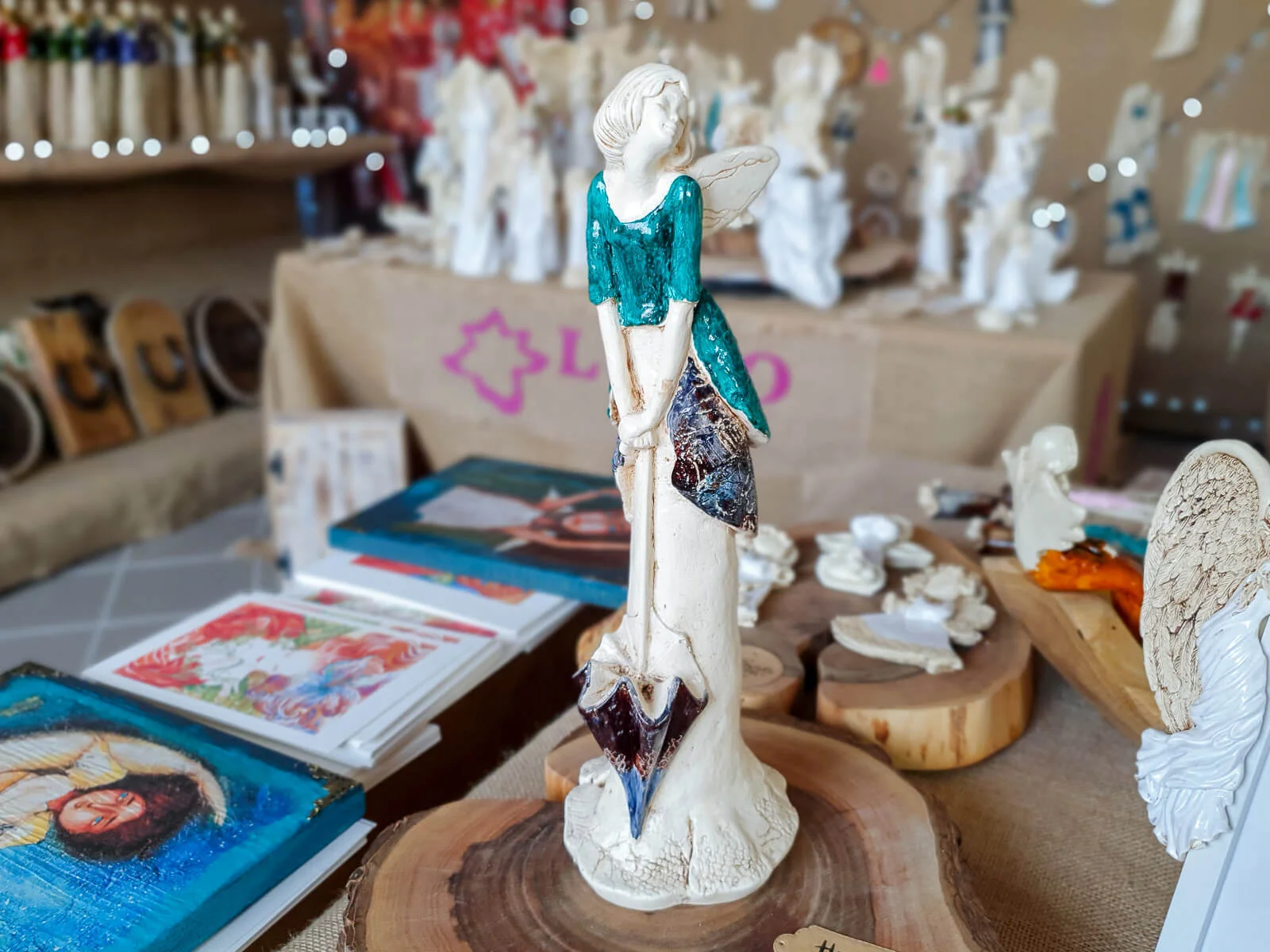 Dla smutasów i narzekających na pogodę ☺. Annabel to Anioł wywołujący uśmiech. Wszędzie gdzie będzie stała wniesie trochę słońca, a tym swoim parasolem odgoni złe myśli i złe dni. Znasz kogoś kto się zamartwia i walczy z pesymistycznym postrzeganiem wszystkiego wokoło? Koniecznie opowiedz mu o tym Aniele albo zamów go u nas, a my go wyślemy ☺