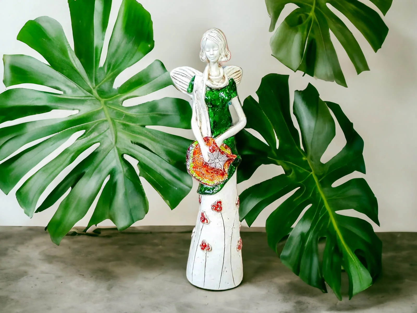 Figurka Anioła Sunday Rose w zielonej sukni to prawdziwe dzieło sztuki, które wprowadzi do Twojego domu nutę natury i radości. Ta urocza figurka o wysokości 32 cm emanuje harmonią i wyjątkowym urokiem, zachwycając detalicznym wykonaniem.
