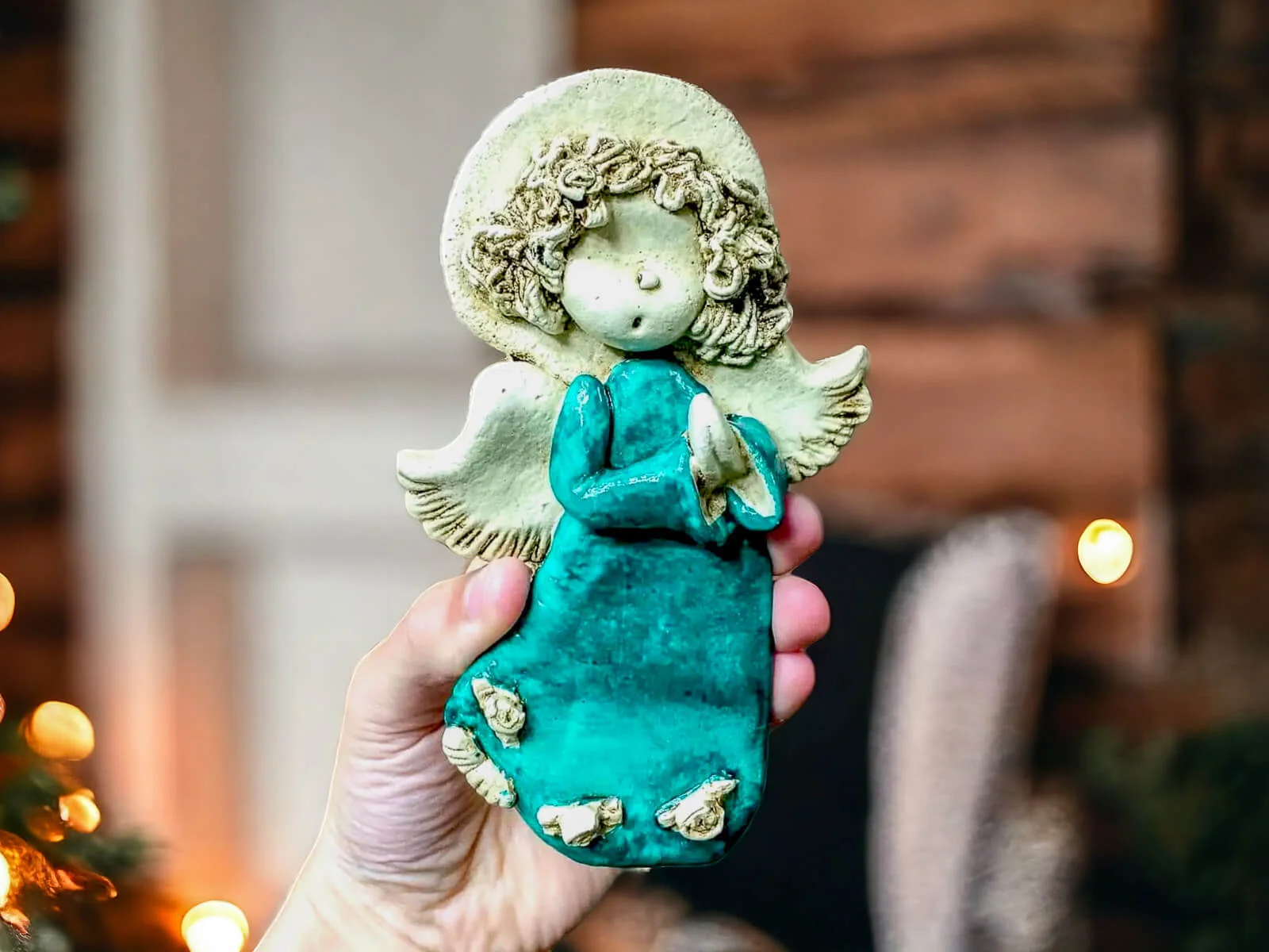Śliczna figurka dekoracyjna aniołka Marzyciela w kolorze turkusu. Lilionek jest młodym chłopcem, który żyje marzeniami. Zawsze jest w błogim nastroju oraz cieszy się z życia. Zawsze jest zamyślony i patrzy przez różowe okulary. Jest ubrany w turkusową szatę. Kolor turkusowy jest symbolem szczęścia i powodzenia. Figurka idealnie nadaje się na prezent dla dziecka. Aniołek postawiony w każdym miejscu w domu będzie czuwał nad domownikami.