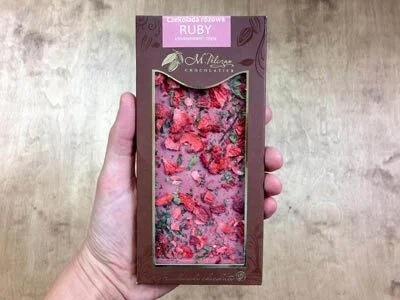 Od niedawna hitem w branży cukierniczej jest czekolada w kolorze intensywnego różu (zwana po angielsku ruby chocolate, czyli czekolada rubinowa). Po raz pierwszy uzyskana została przez firmę Collebaut, jednego z największych na świecie producentów czekolady.Co ciekawe, kolor ruby chocolate nie jest wynikiem stosowania barwników. Charakterystyczną barwę nadaje jej całkowicie naturalny puder uzyskany ze sproszkowanych nasion kakaowca. Nasiona te pochodzą z Wybrzeża Kości Słoniowej.