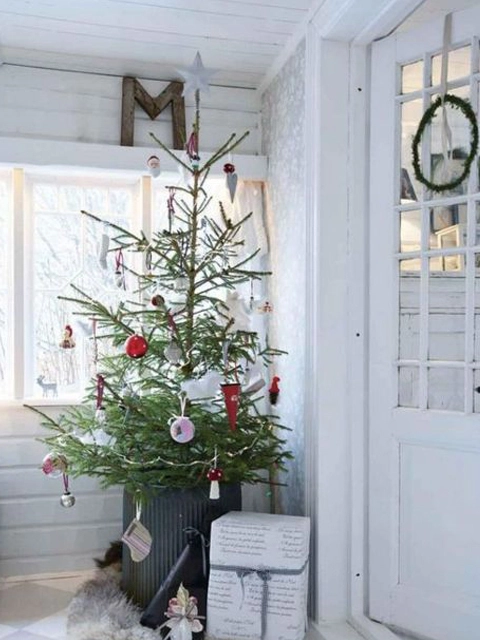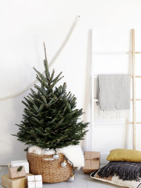 Styl skandynawski charakteryzuje się prostotą formy, umiarem i jasnością. To wygodne rozwiązania, w których dominuje biel, szarość i brąz. Choinka w skandynawskim stylu nawiązuje do natury, cechuje ją dbałość o szczegóły oraz minimalizm wprowadzający do pomieszczenia nieco przytulności. Drzewko powinno być prawdziwe, może być osadzone w wiklinowym koszu, drewnianej skrzynce lub metalowym wiadrze.