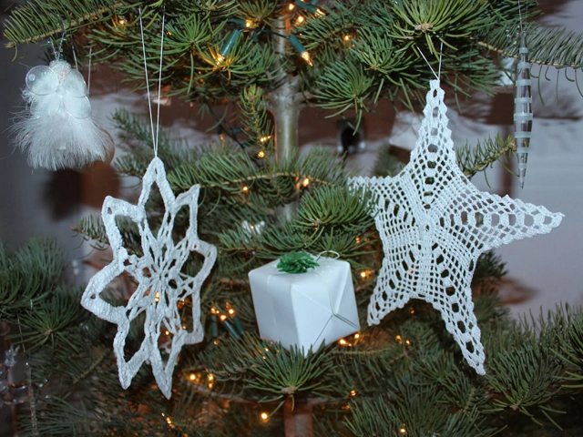 Bardzo delikatna, przepiękna i urokliwa choinka przystrojona w koronki i lampki to propozycja dla osób lubiących rękodzieło i naturalne klimaty. Świetnie sprawdzi się w tradycyjnych wnętrzach, może też być ciekawym kontrastem dla nowoczesnych wystrojów w ciemnych kolorach z białymi elementami.